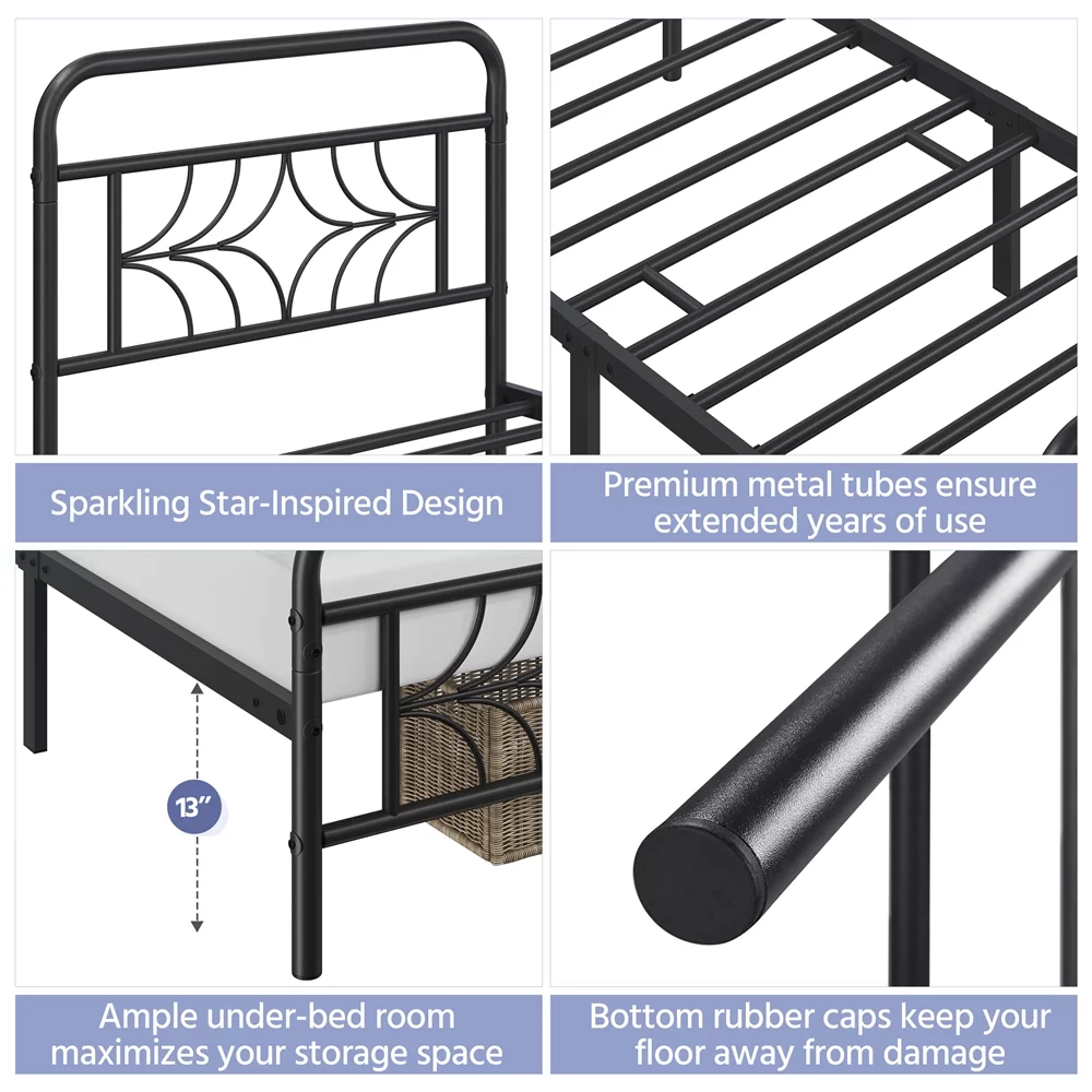 Easyfashion Astra Sparkling Star-Inspired Design Metal Bed, Twin XL, Black