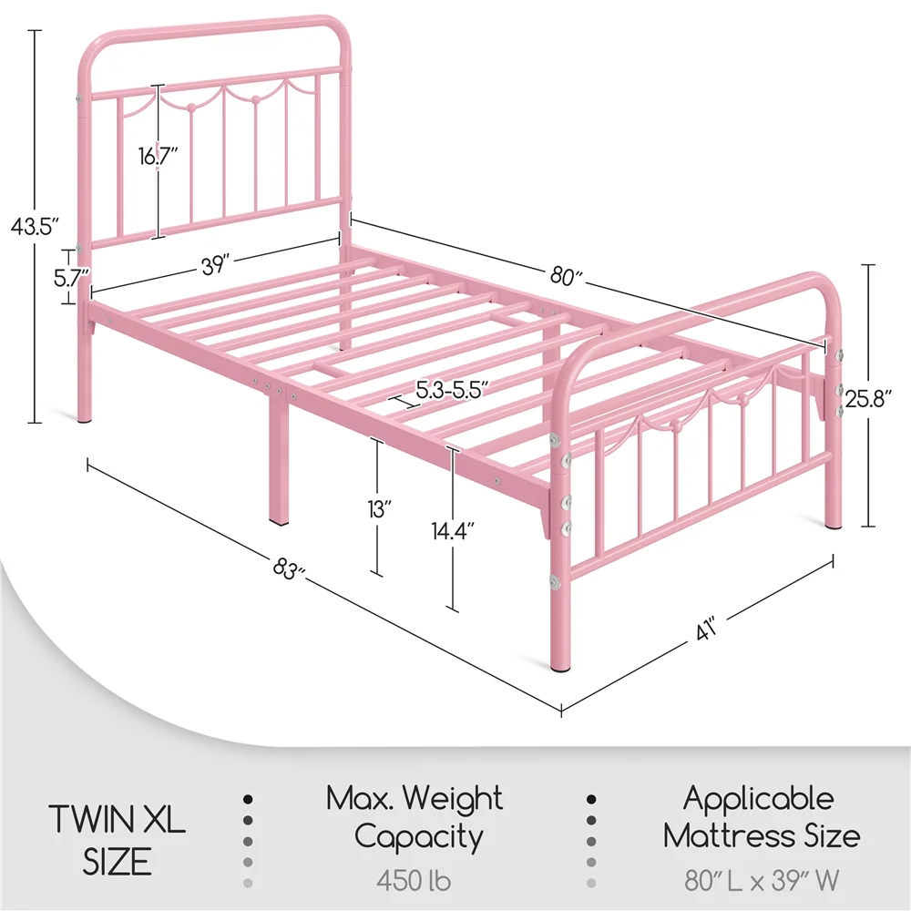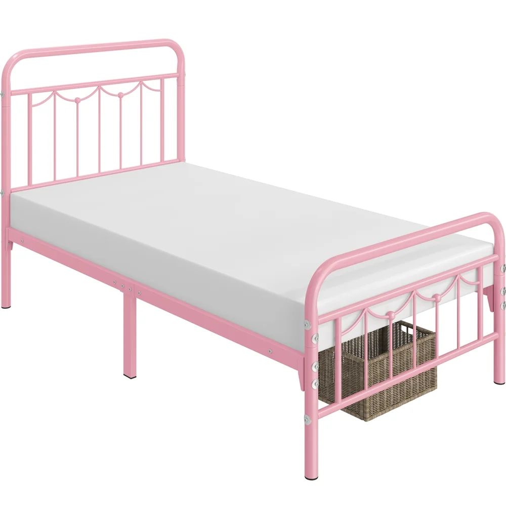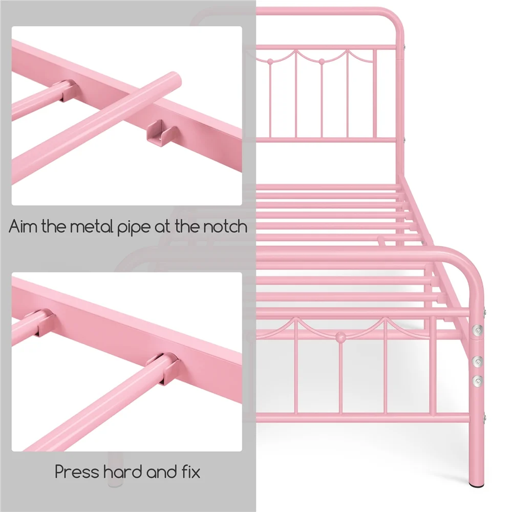 Yaheetech Metal Platform Bed Frame with Headboard and Footboard,Twin XL,Pink
