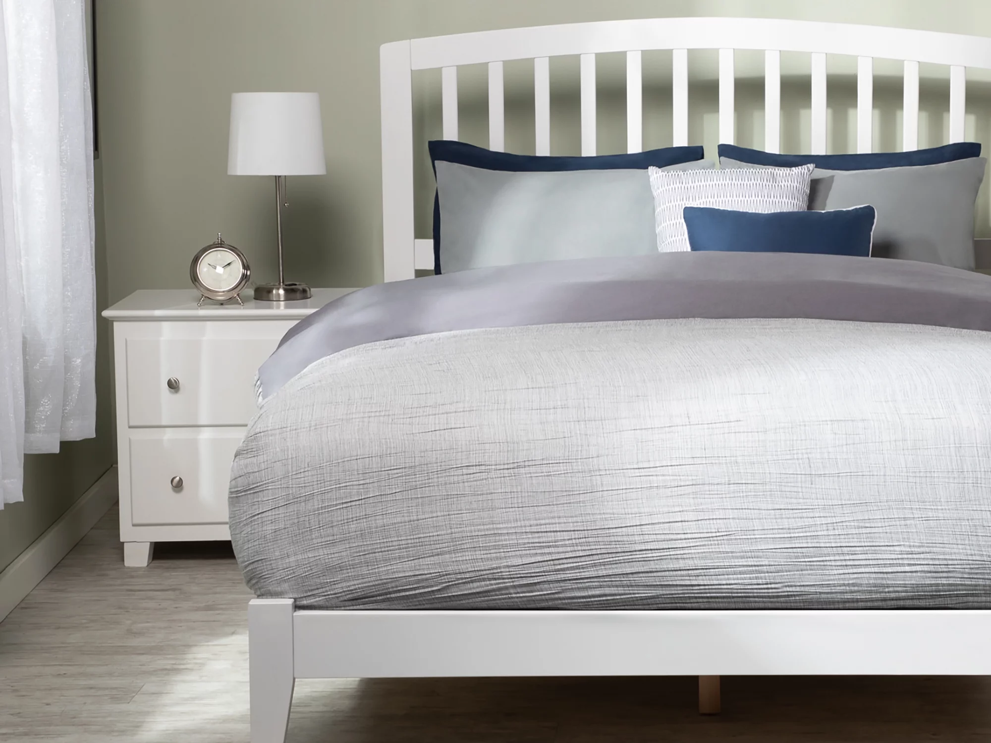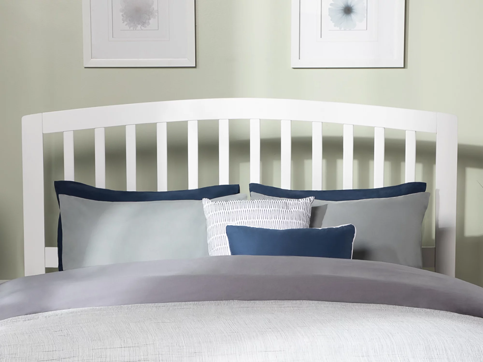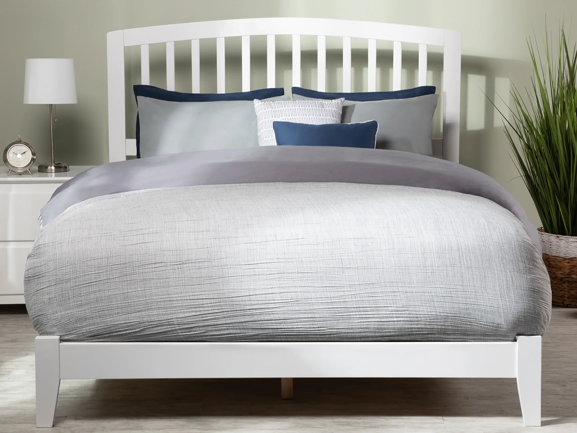 AFI Richmond Queen Low Profile Wood Platform Bed Frame with Slatted Headboard, White