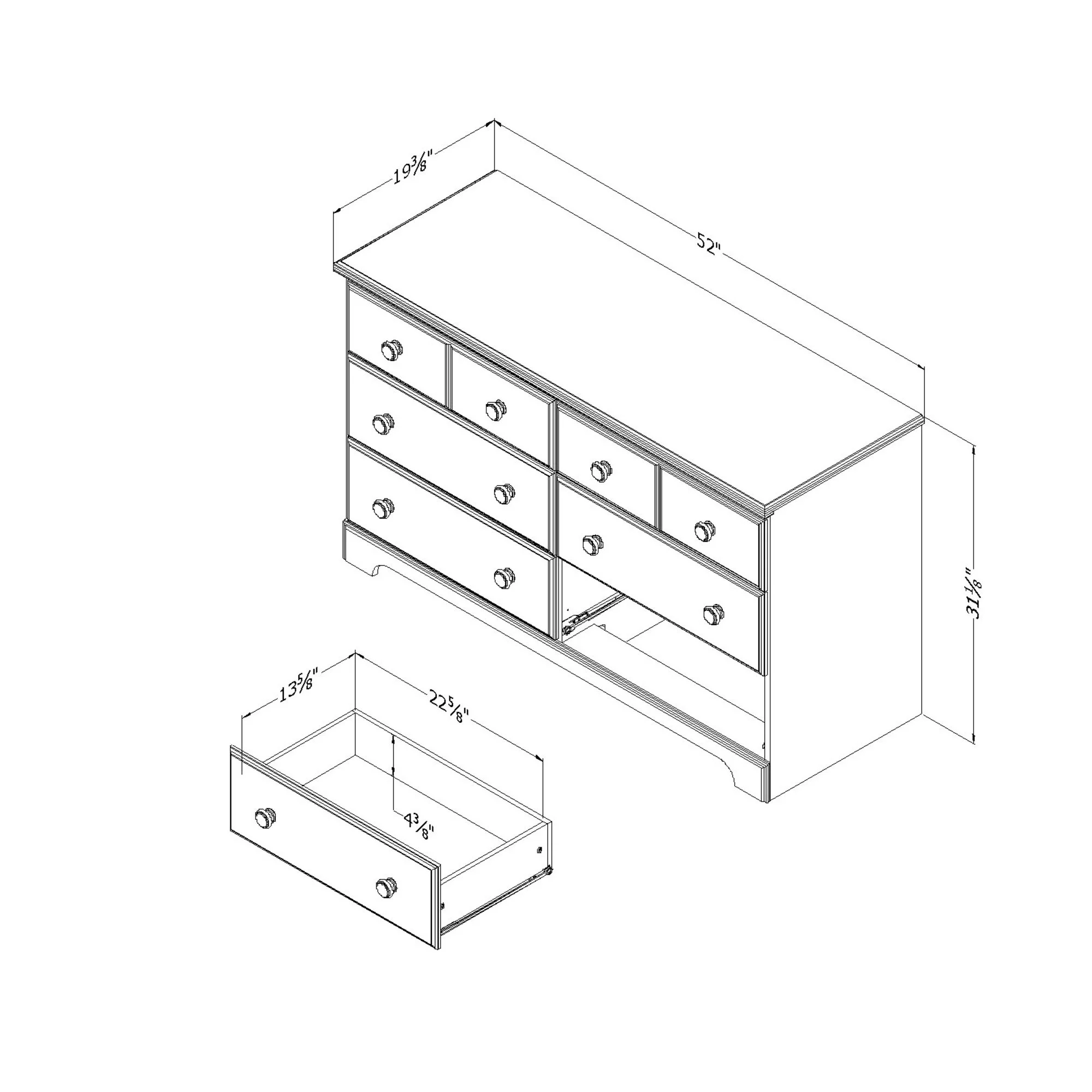 Kids Dresser for Bedroom with 5 Wide Chest of Drawers, Wood Dressers for Living Room, Nursery, Hallway,White