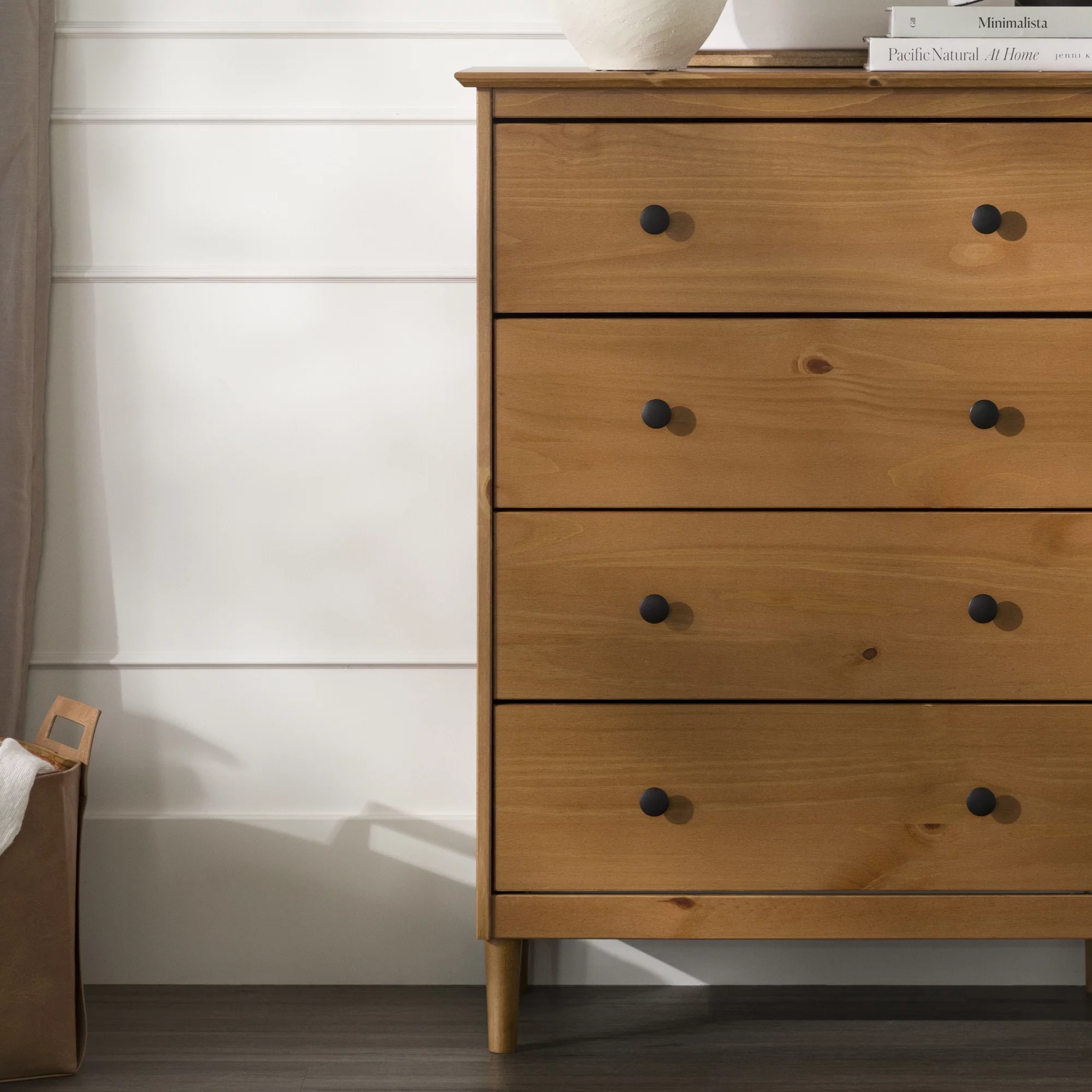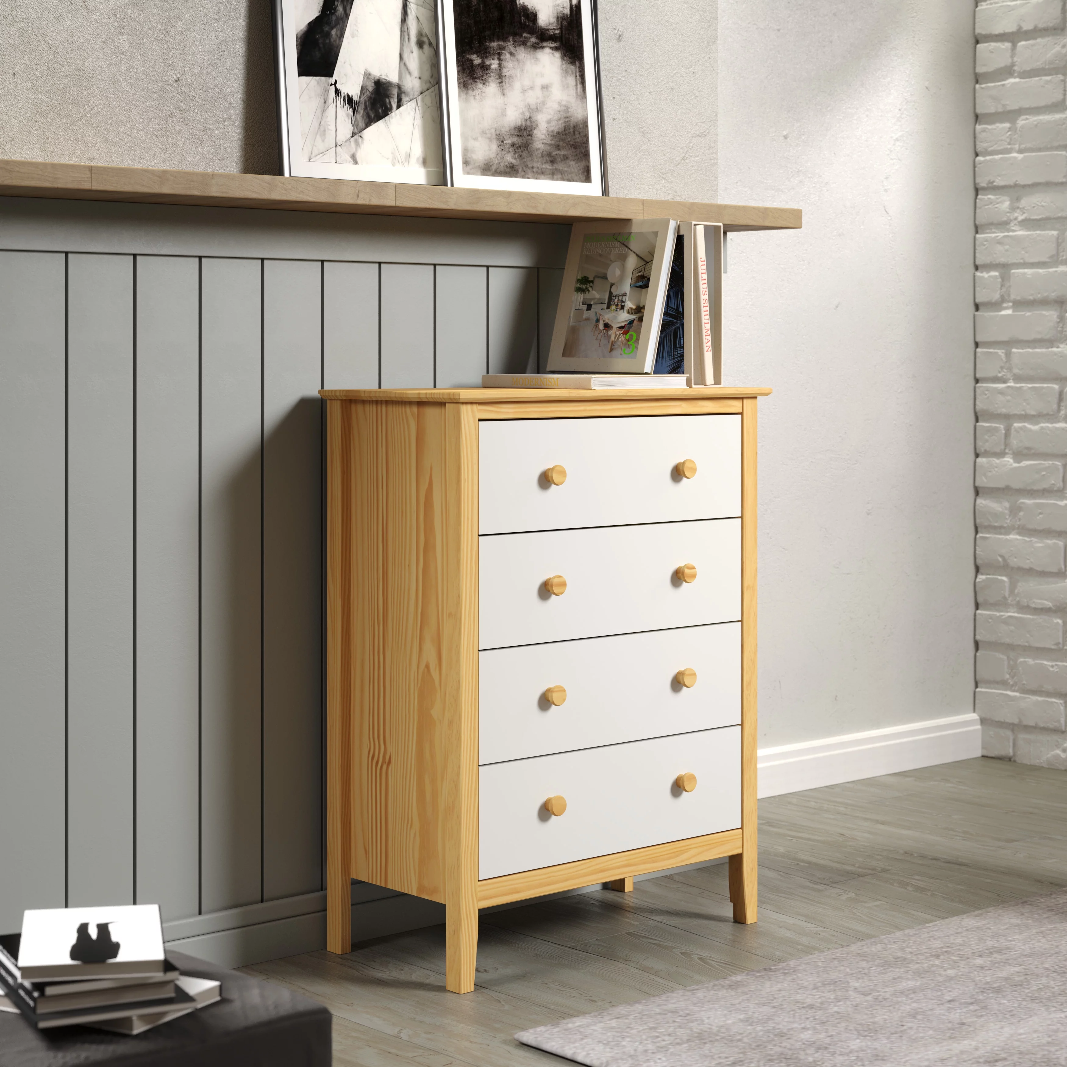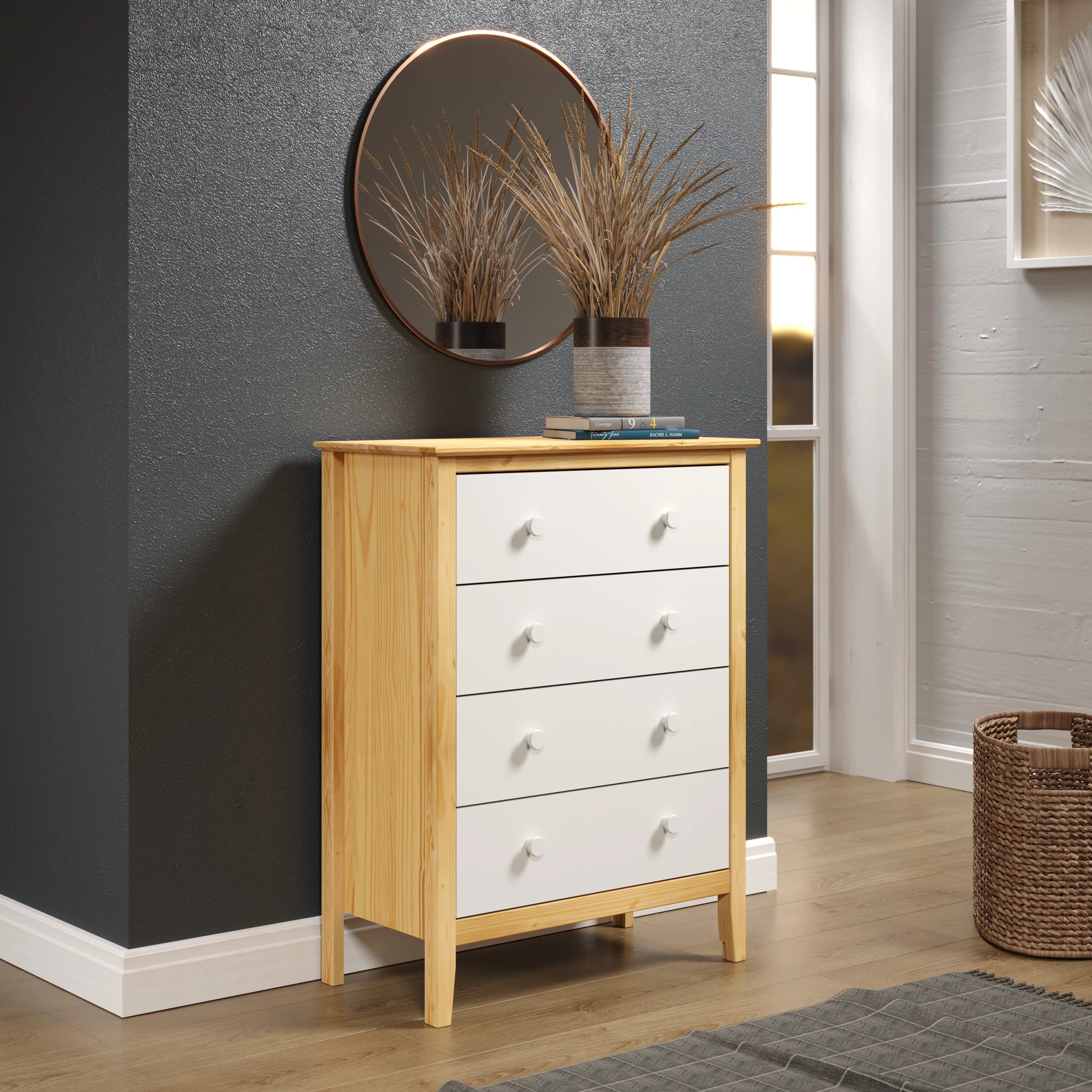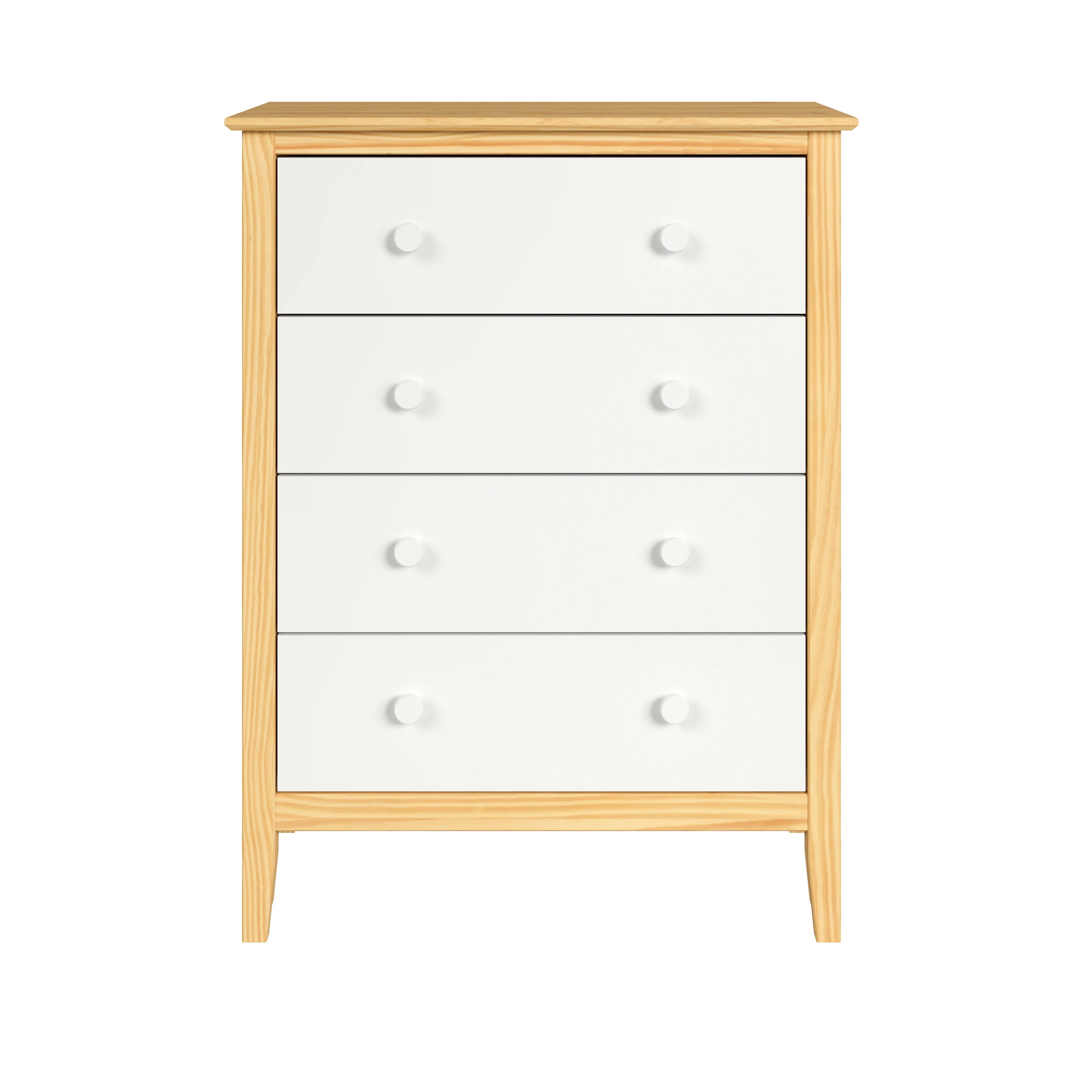 Adeptus Solid Wood Easy Pieces Four Drawer Dresser Natural White Front, White and Natural Knobs