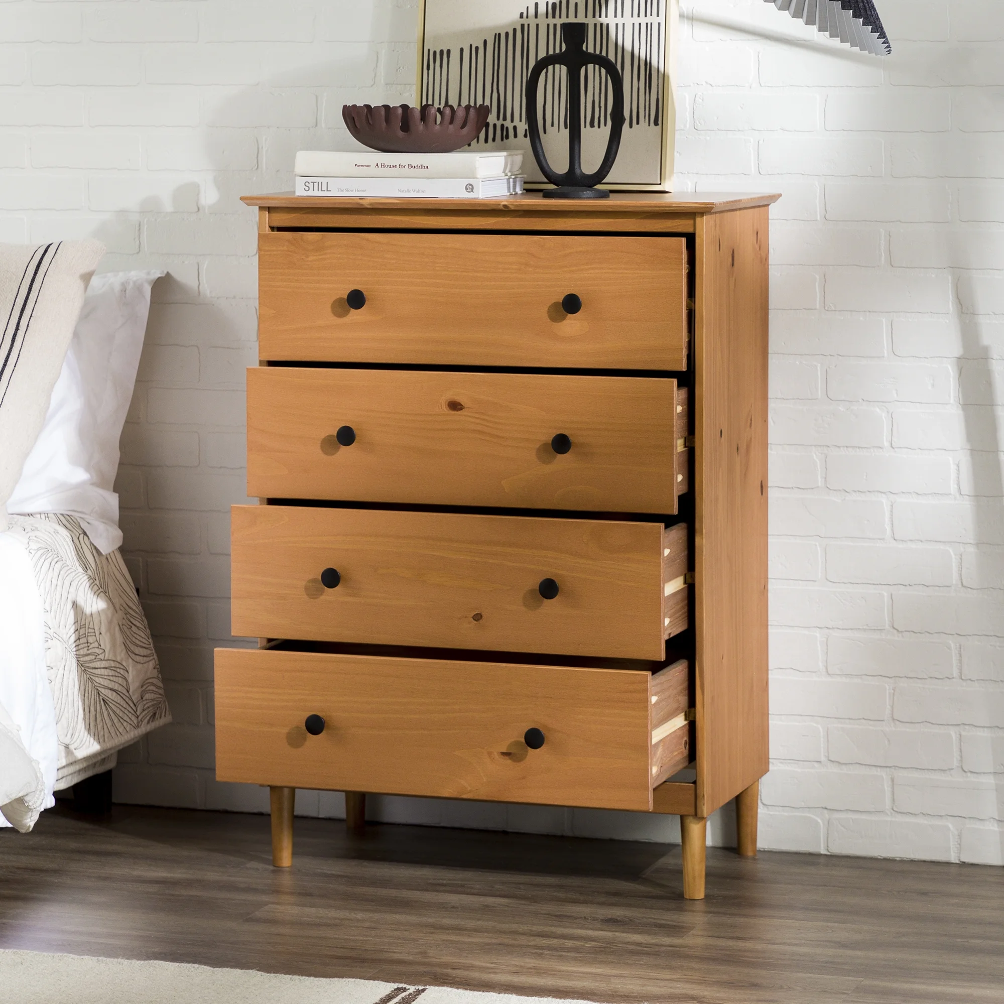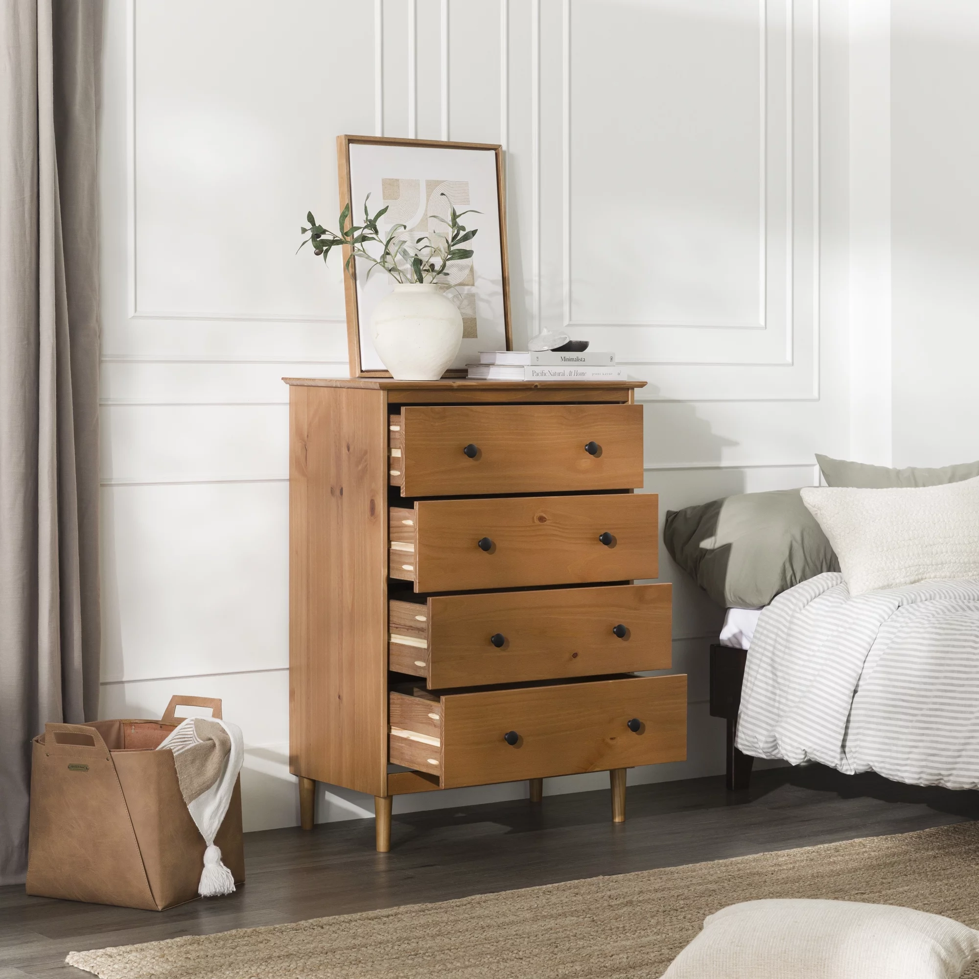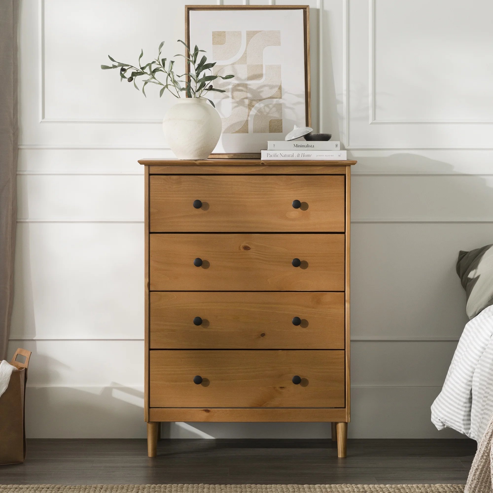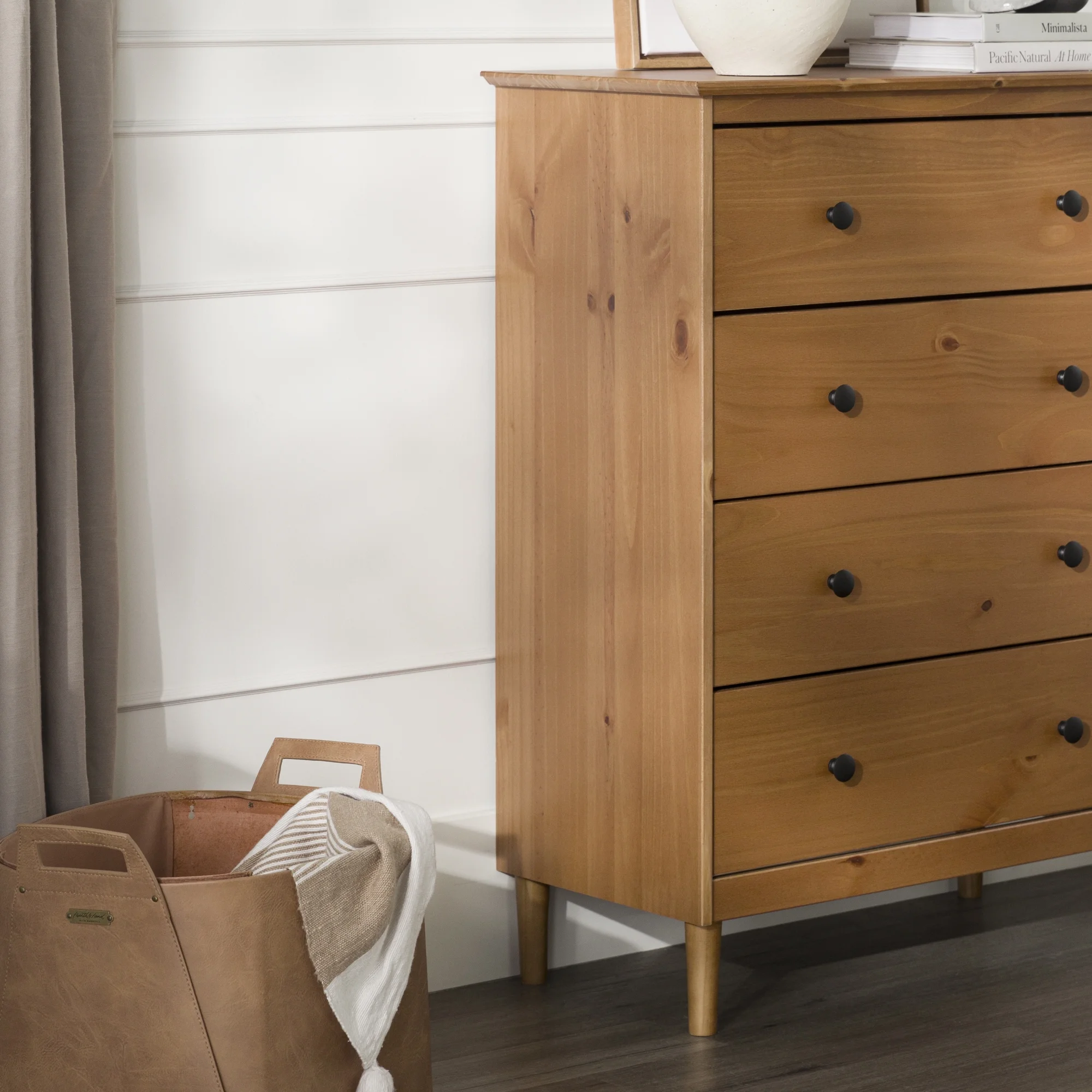 Adeptus Solid Wood Easy Pieces Four Drawer Dresser Natural White Front, White and Natural Knobs