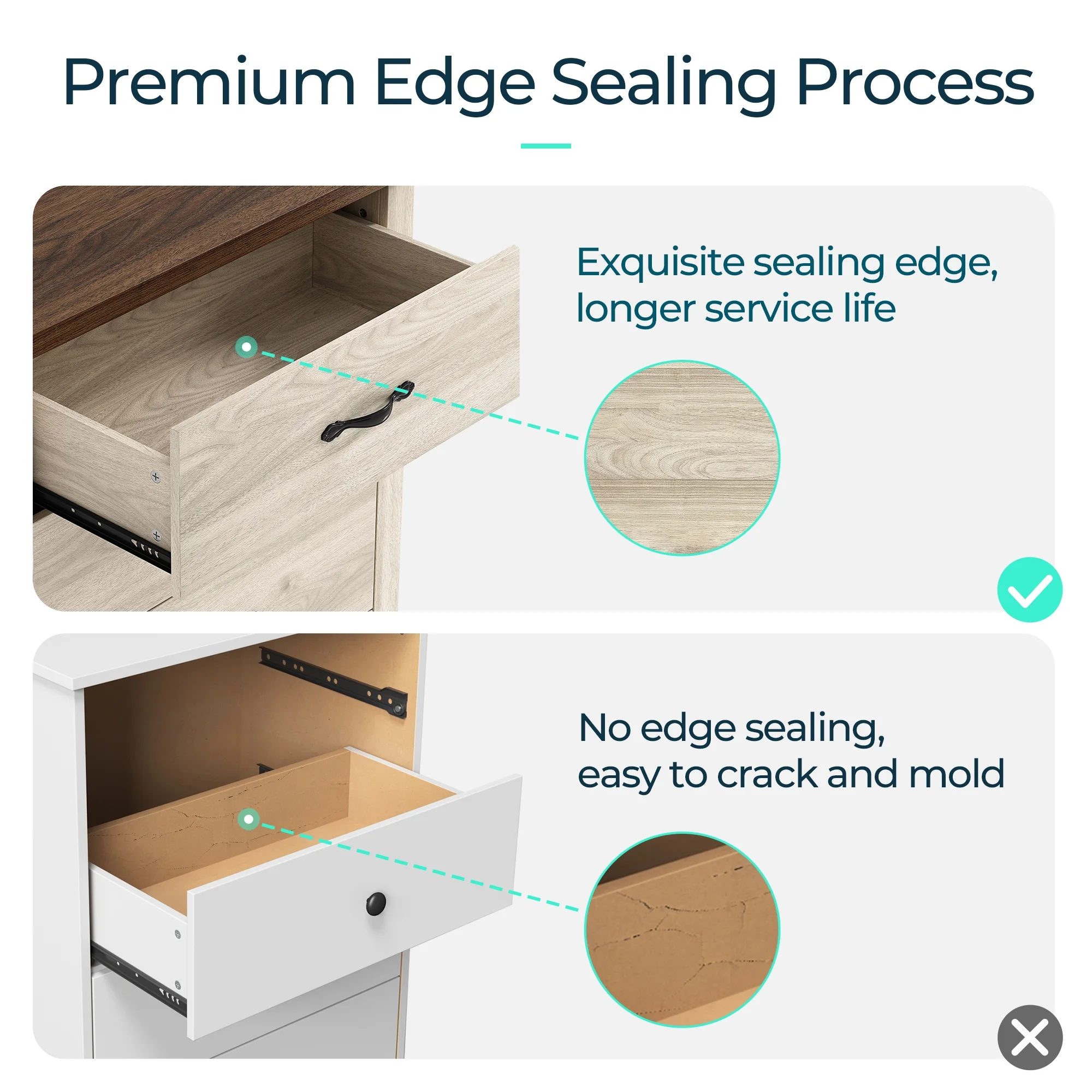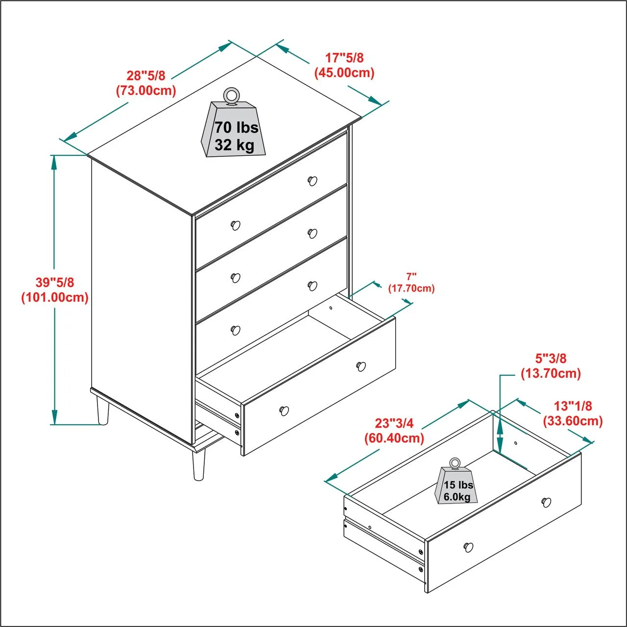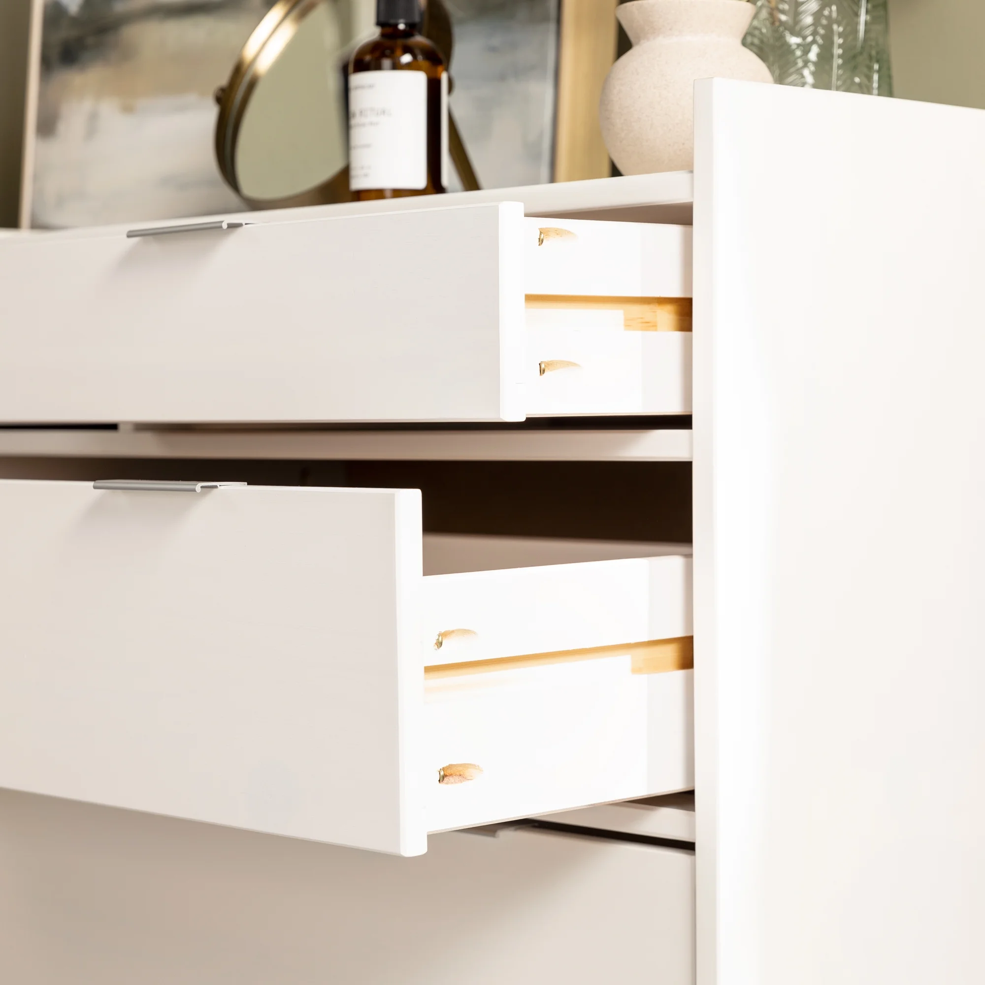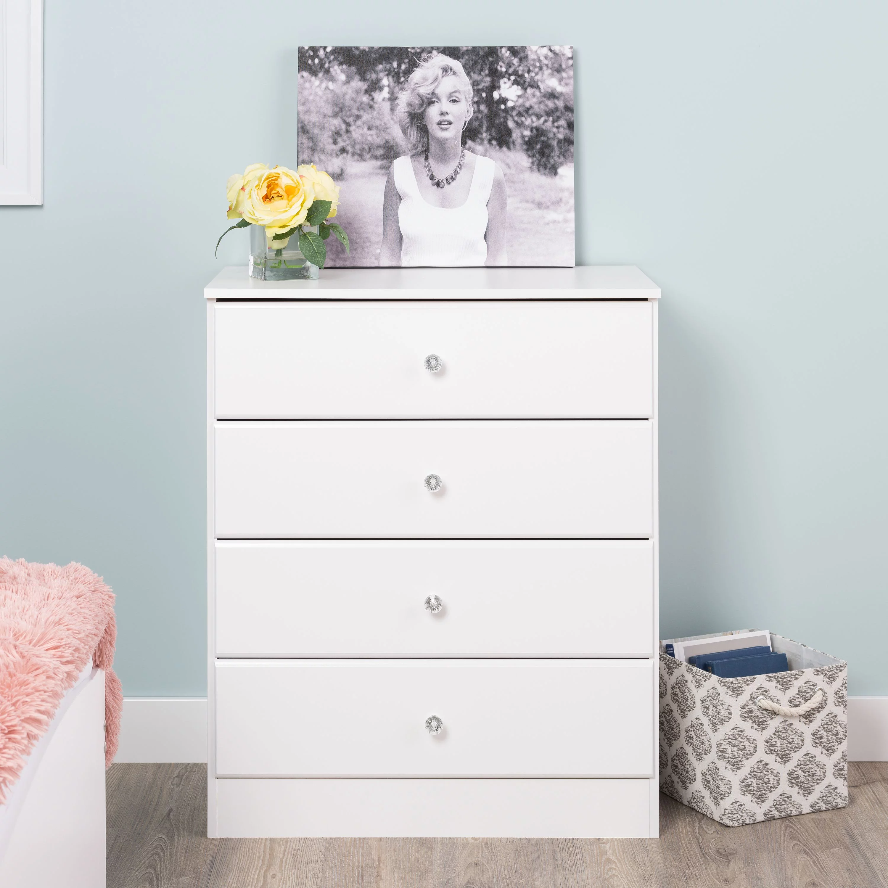 Adeptus Solid Wood Easy Pieces Four Drawer Dresser Natural White Front, White and Natural Knobs