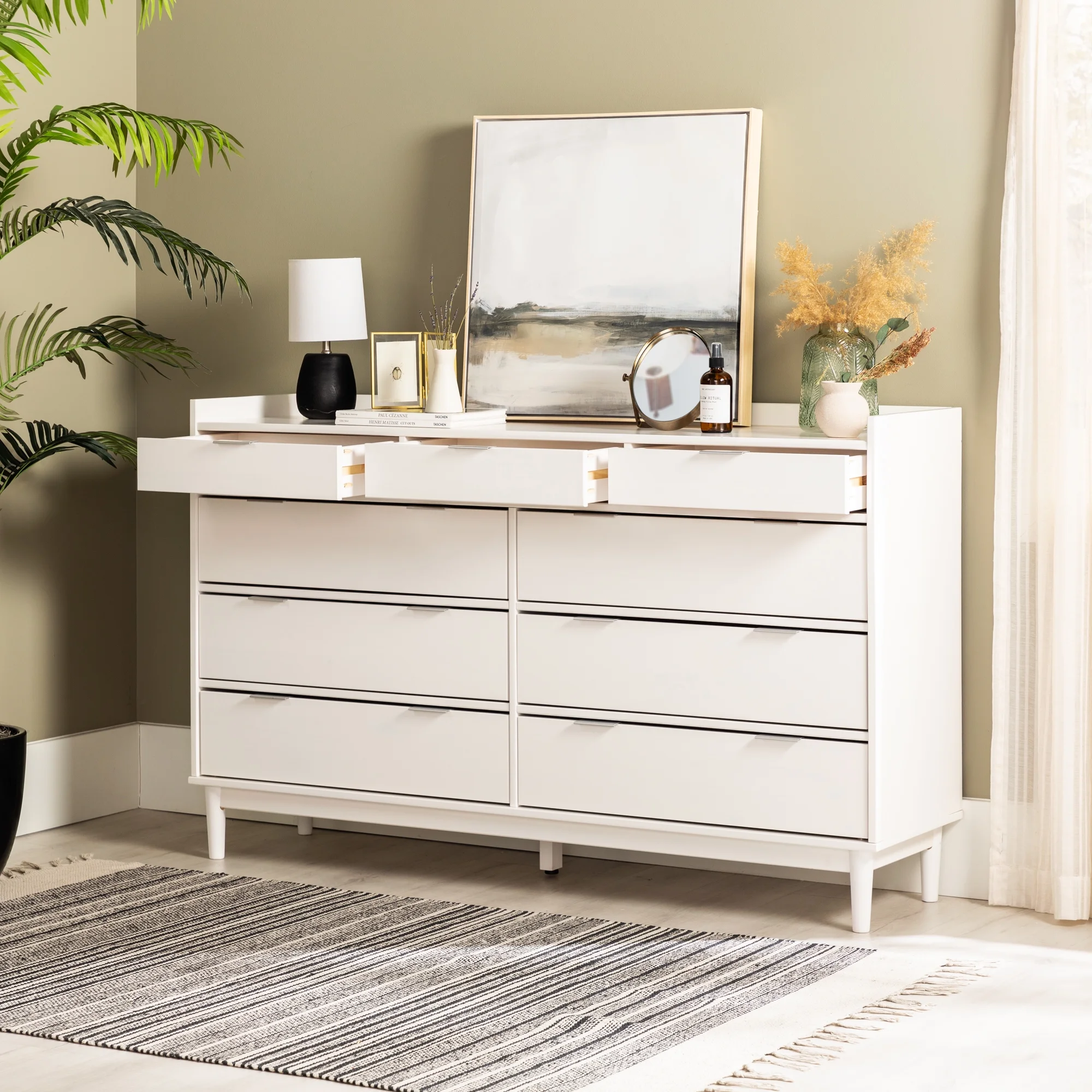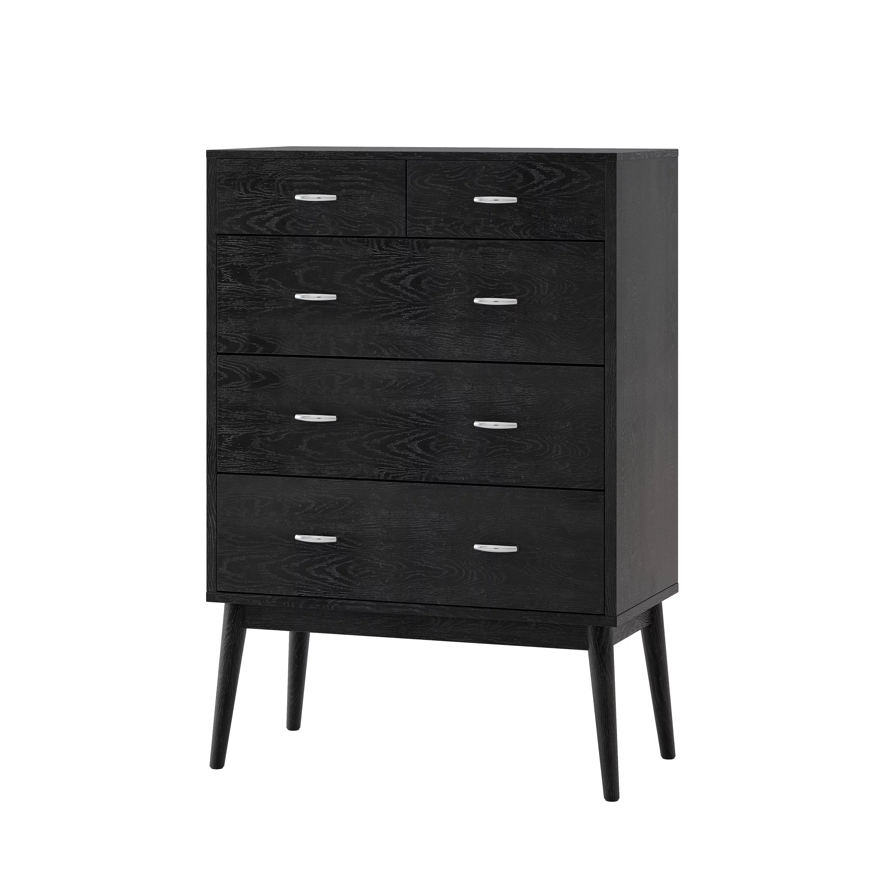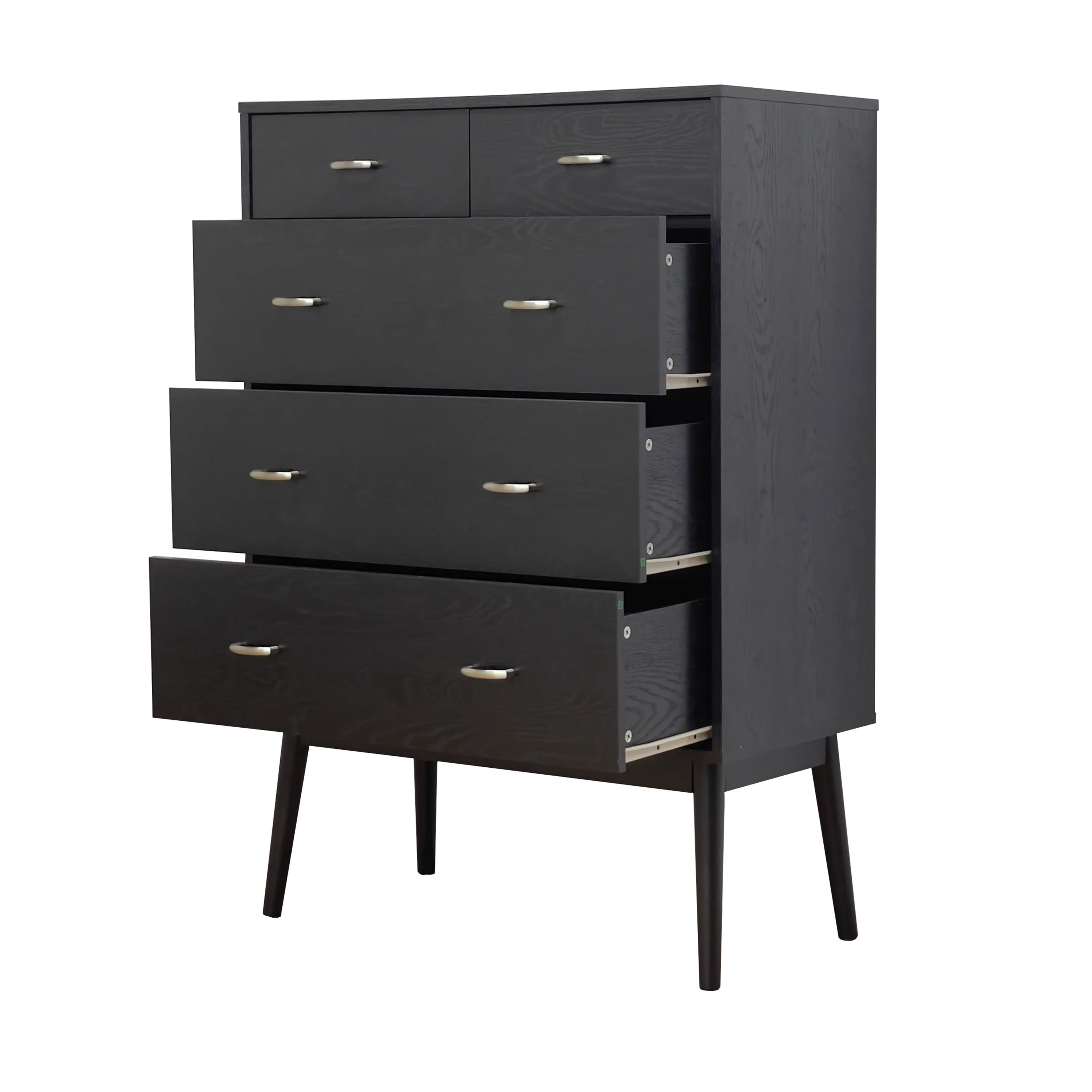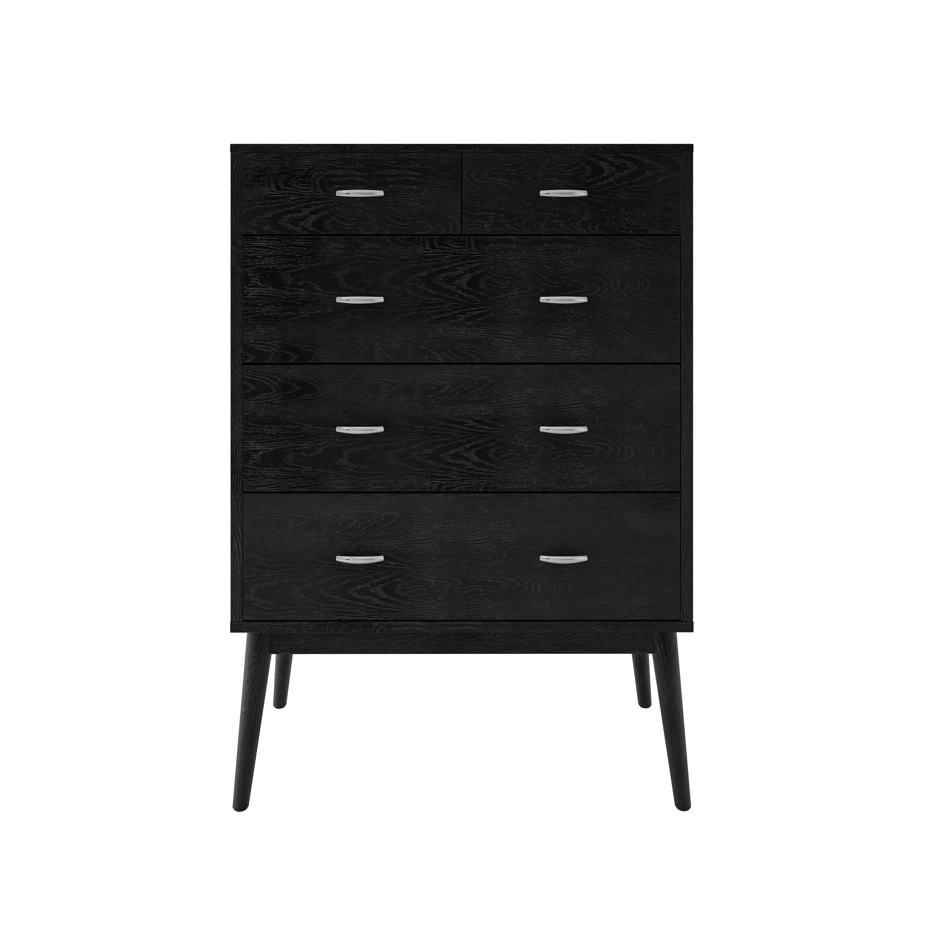 GDF Studio Wilbur Mid Century Modern Wooden 6 Drawer Double Dresser, Black