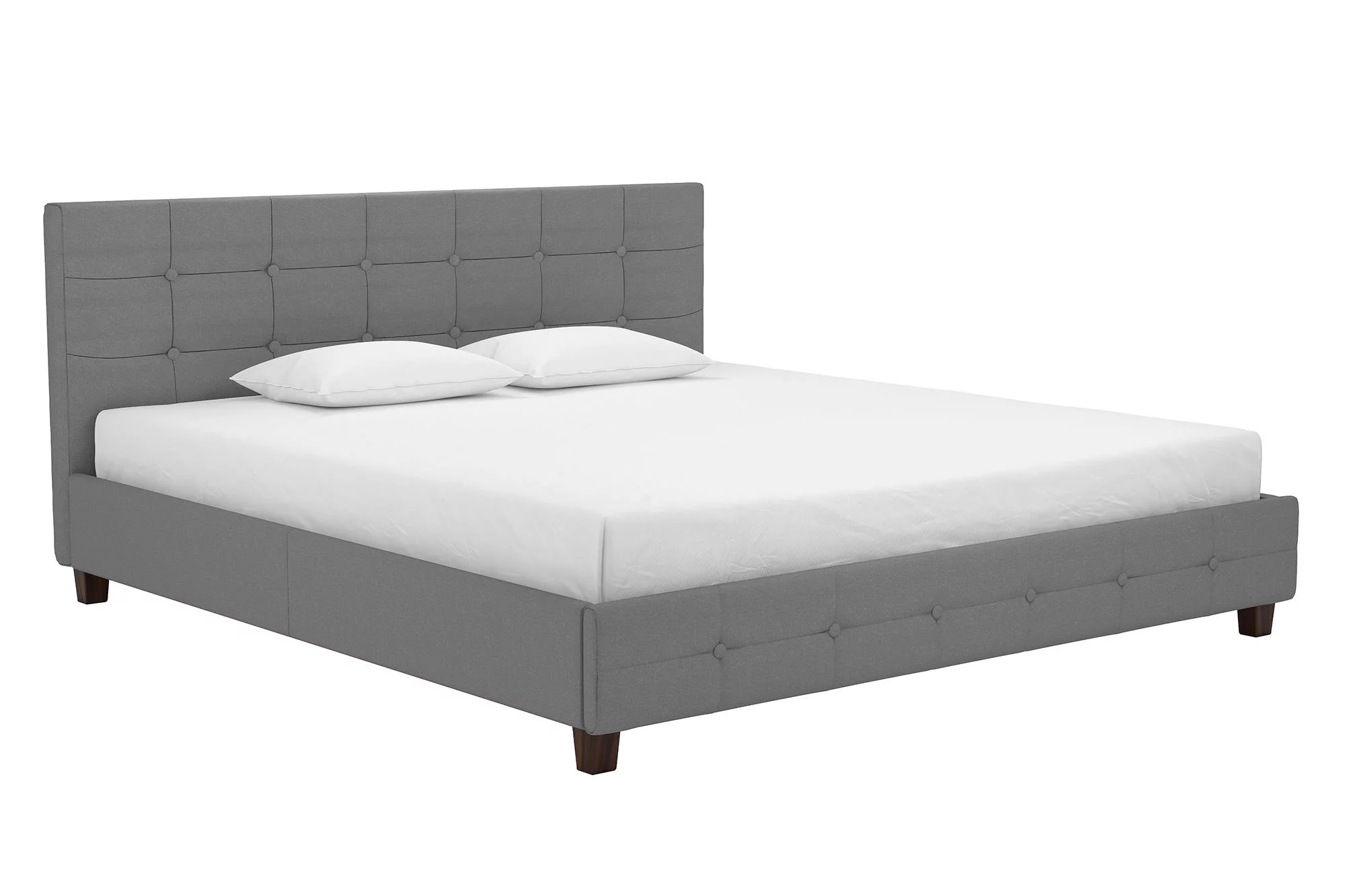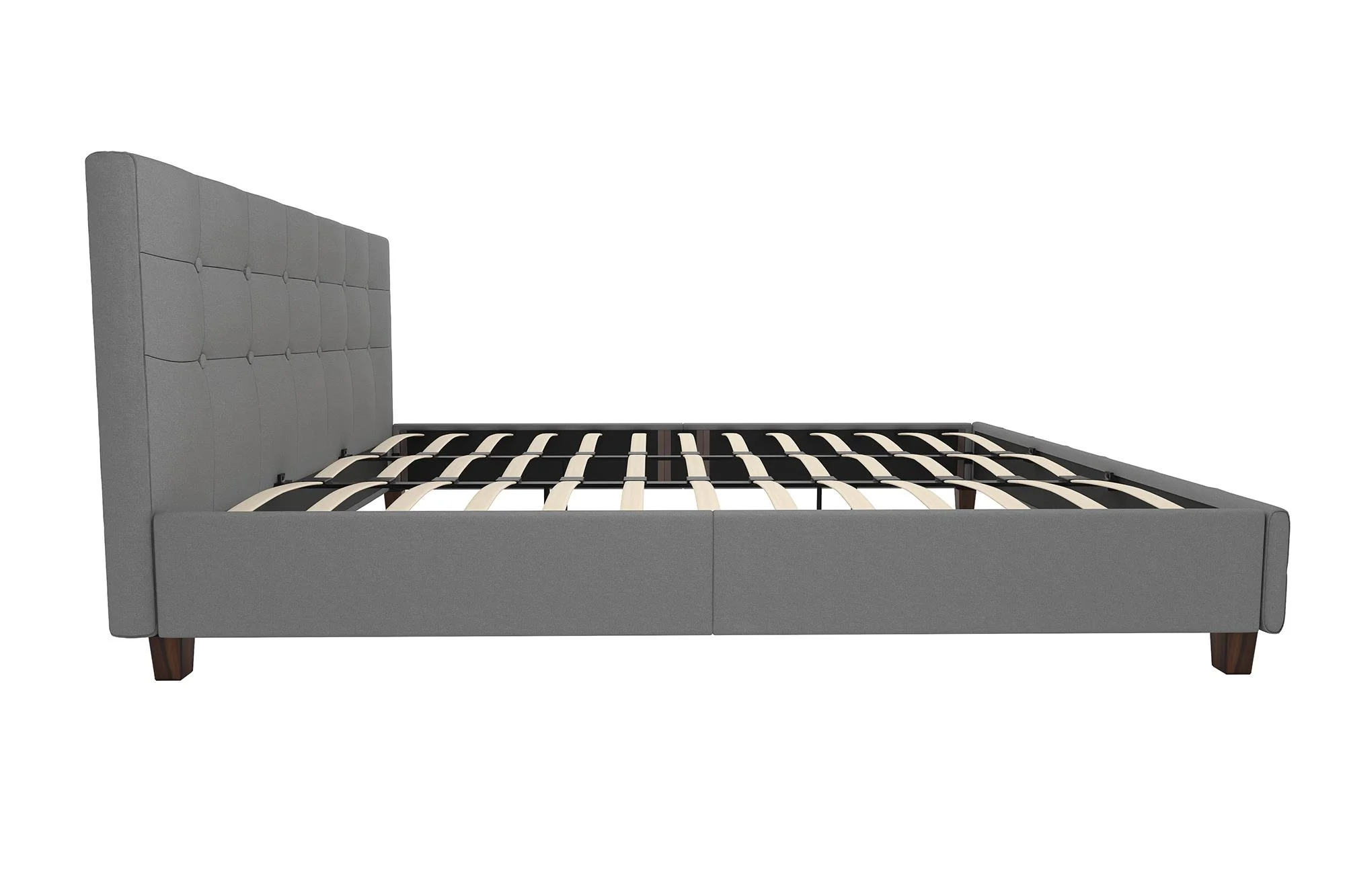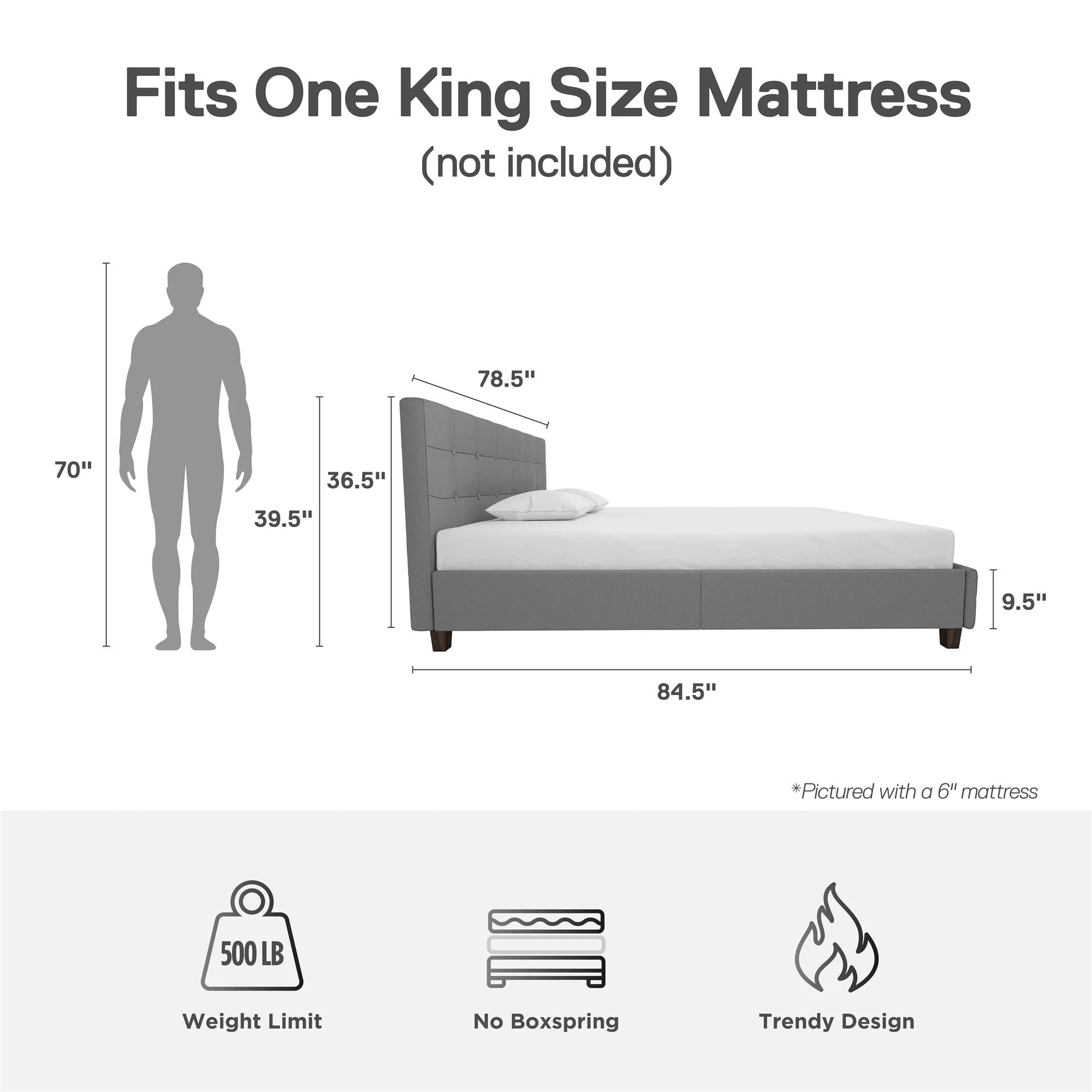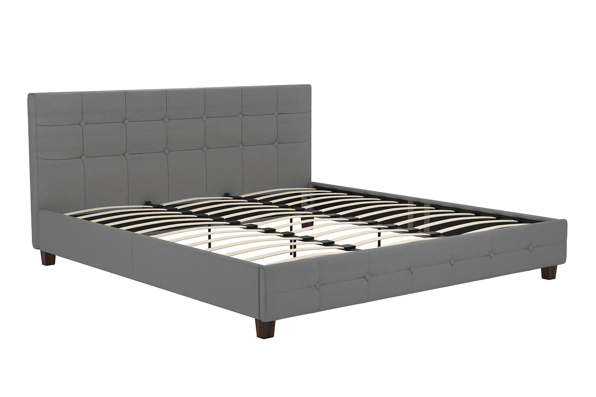 King Size Upholstered Platform Bed Frame with Headboard, Linen Fabric Button Tufted Headboard, Beige