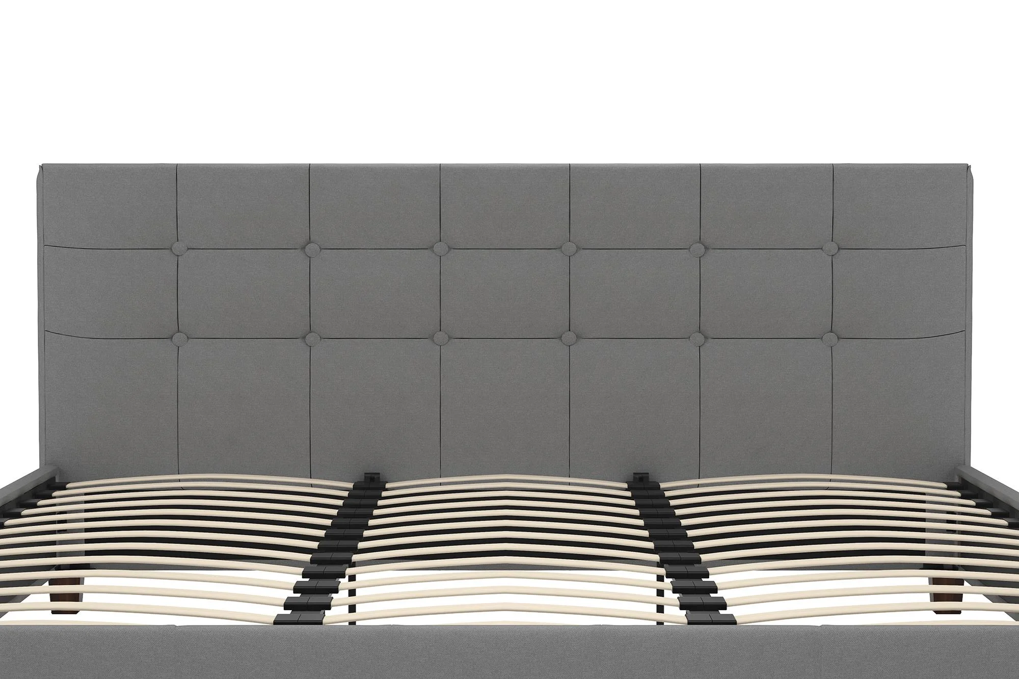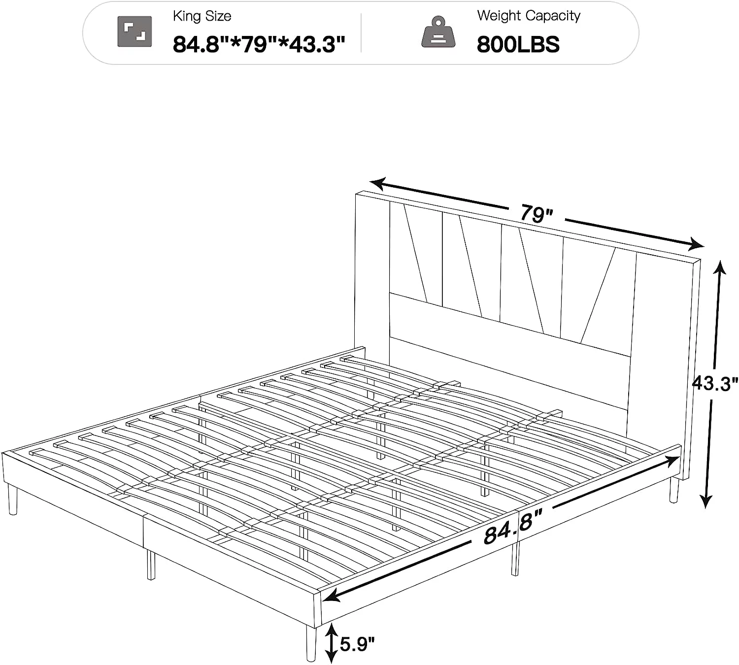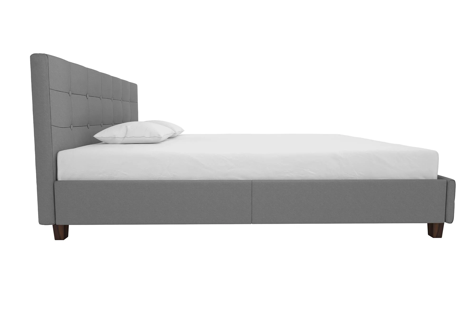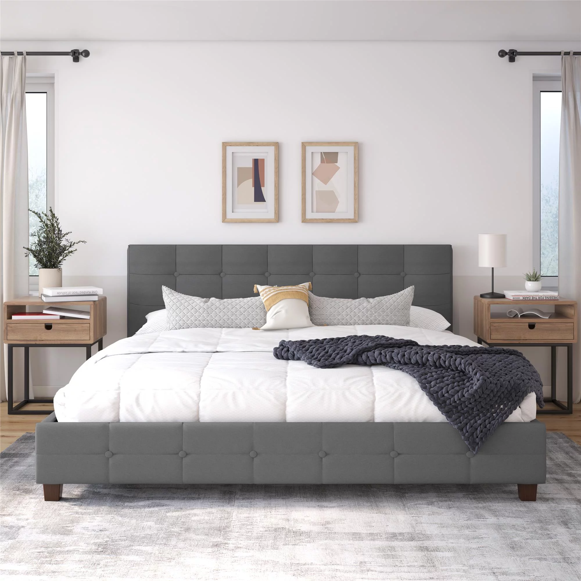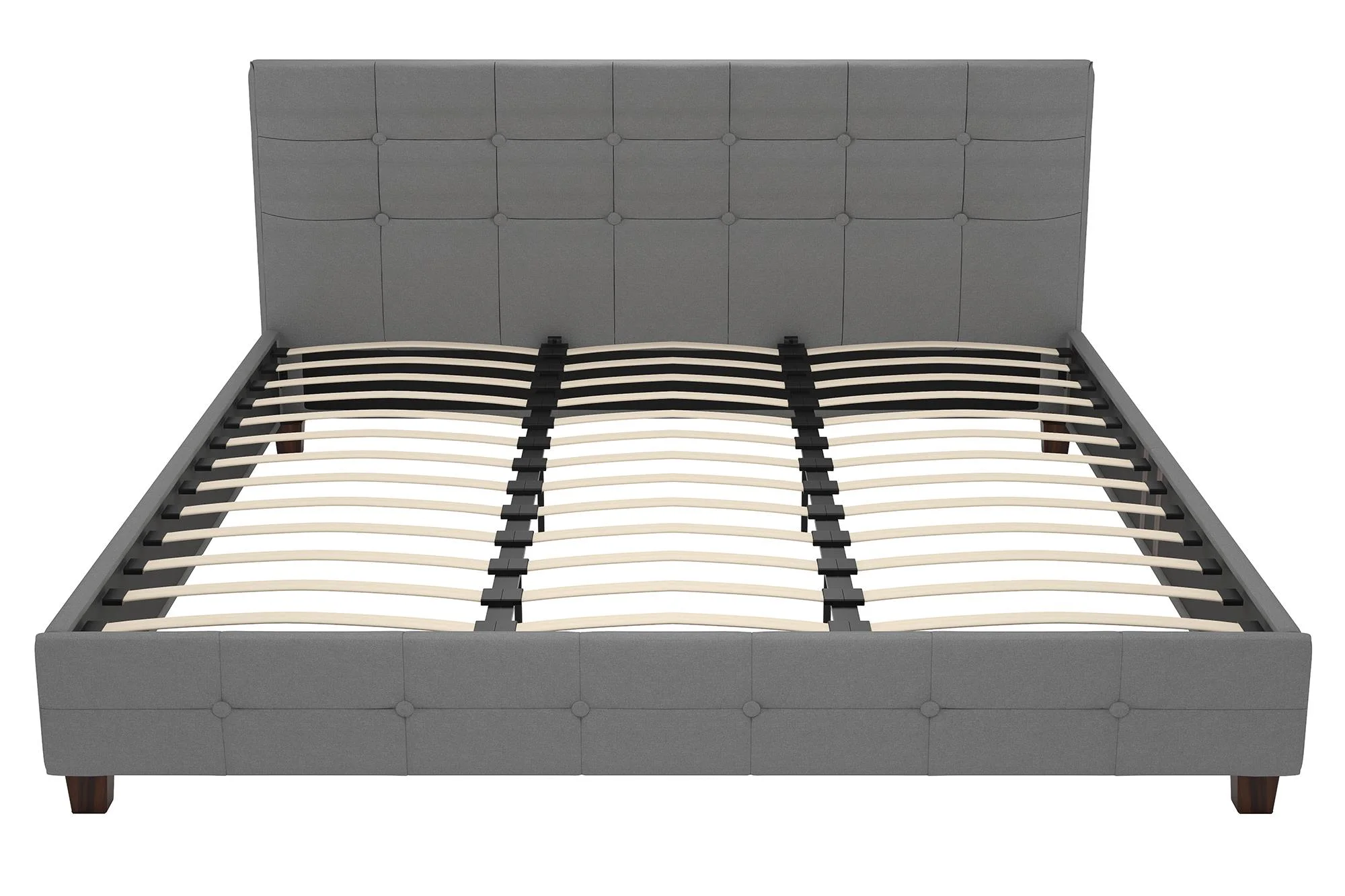King Size Upholstered Platform Bed Frame with Headboard, Linen Fabric Button Tufted Headboard, Beige