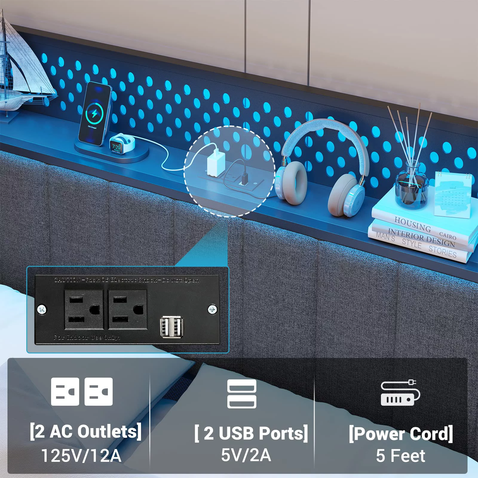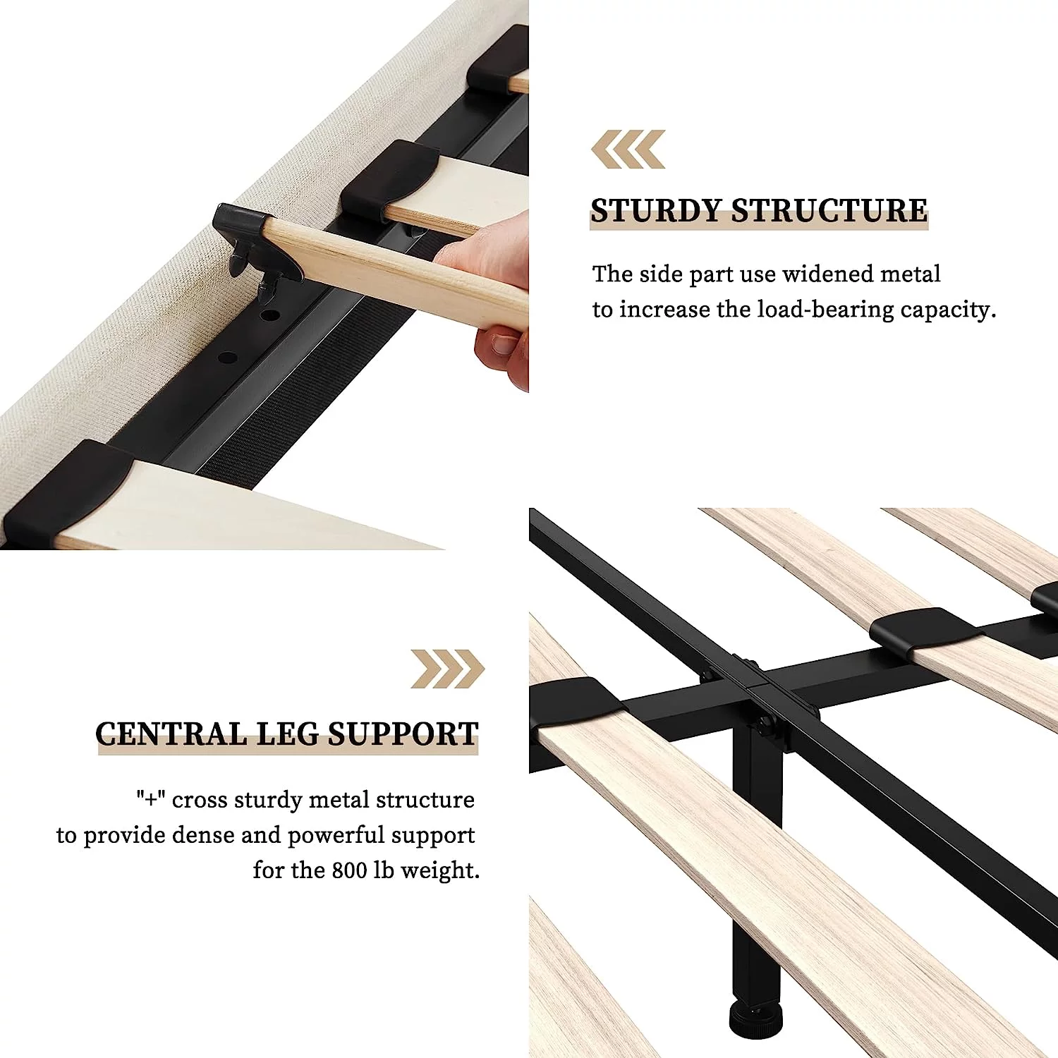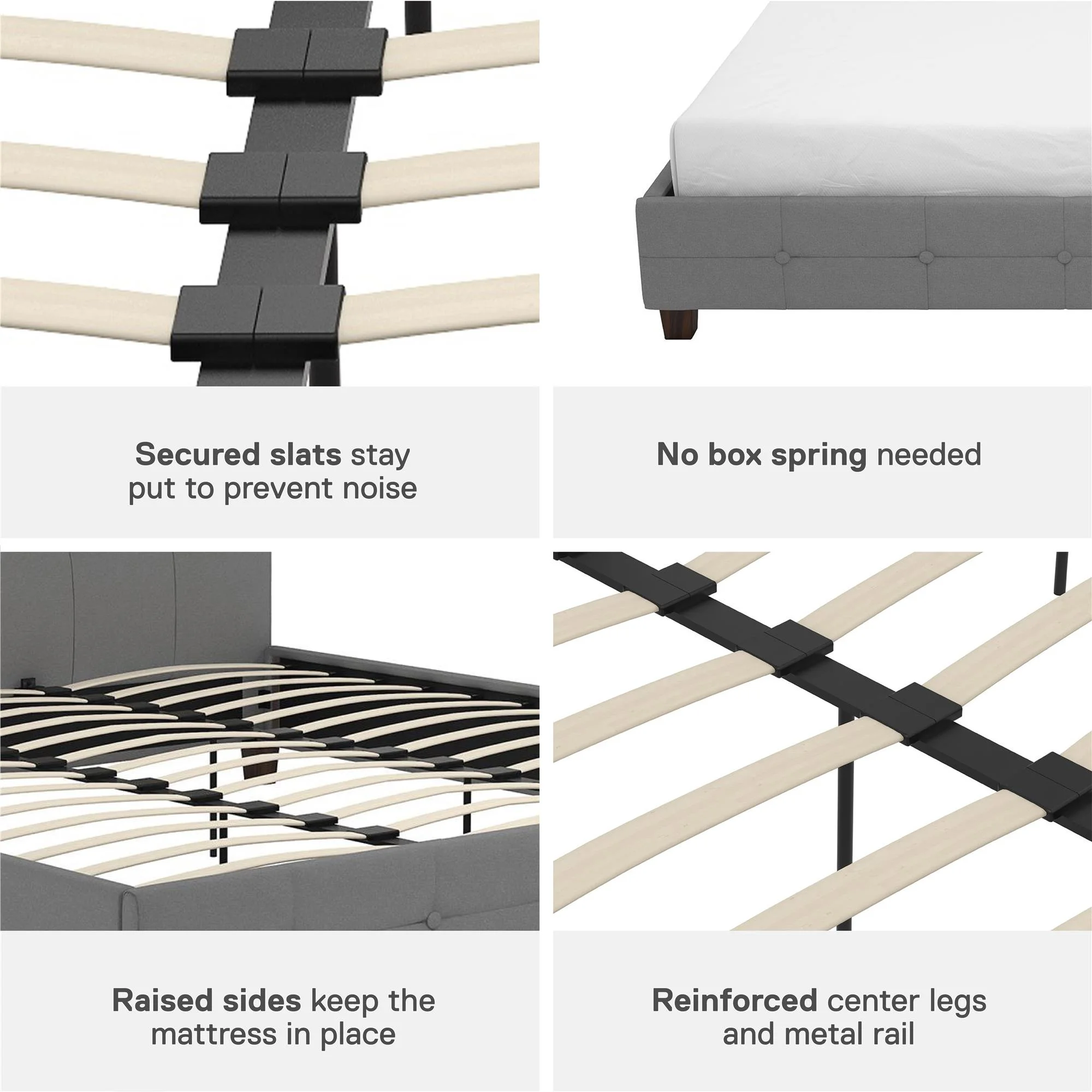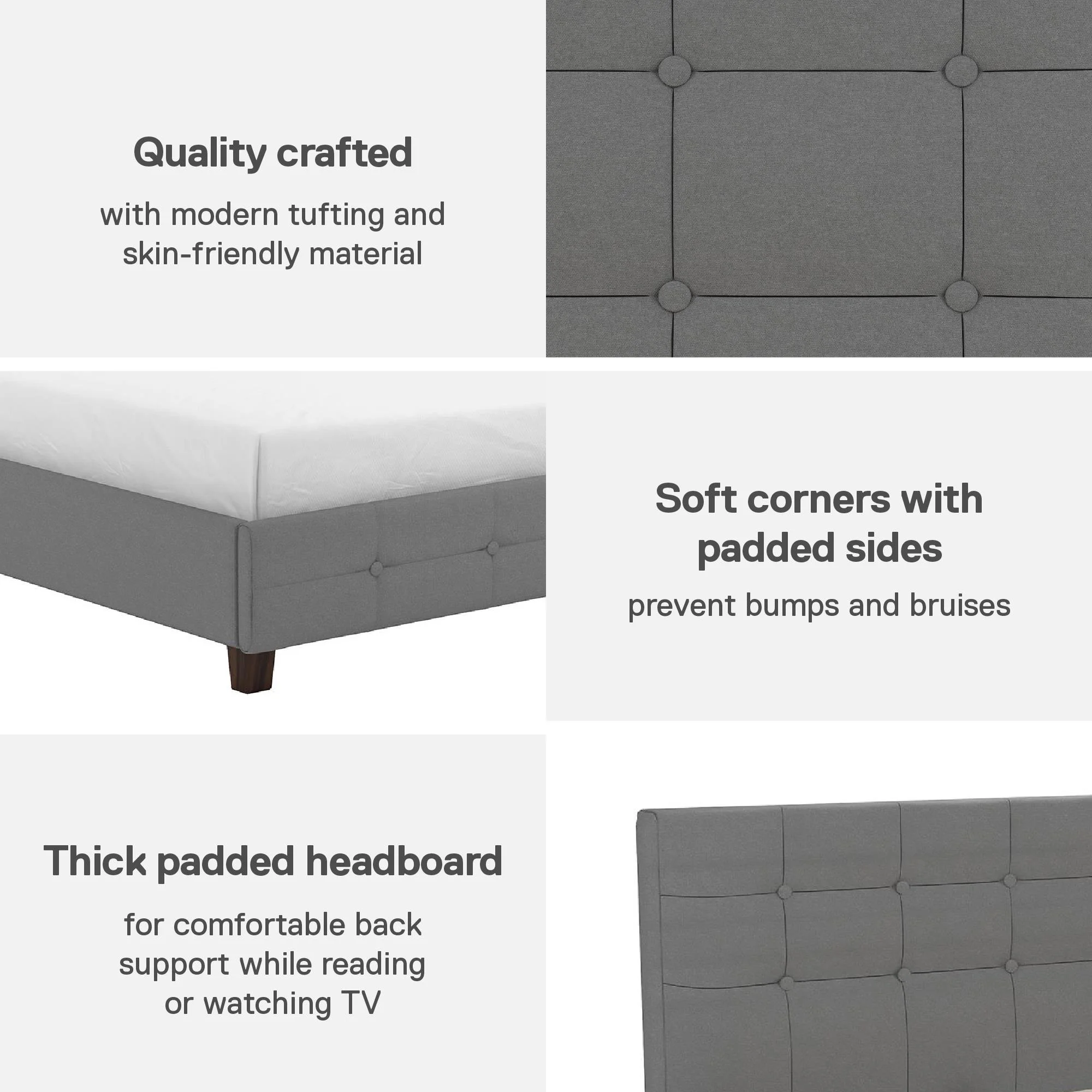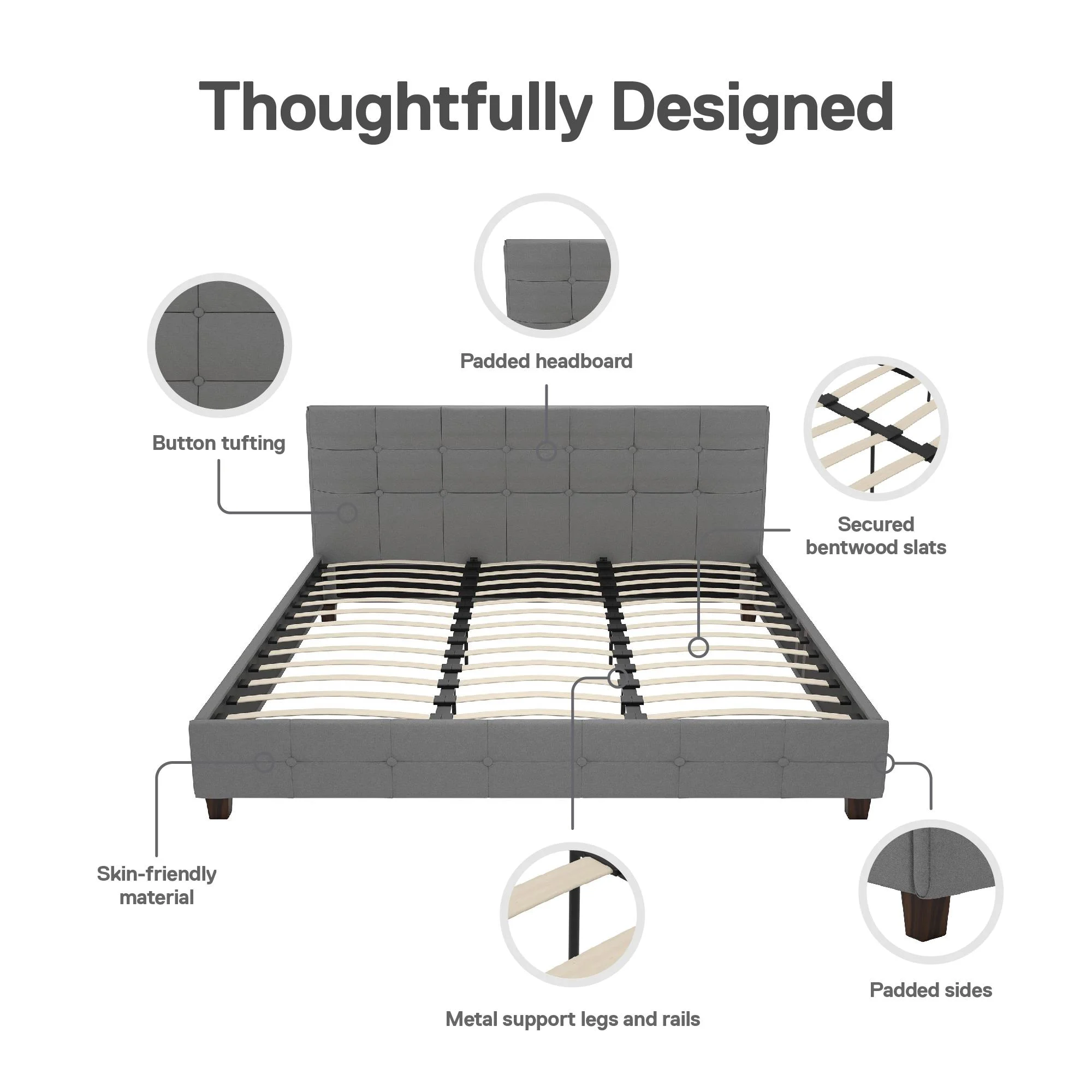 King Size Upholstered Platform Bed Frame with Headboard, Linen Fabric Button Tufted Headboard, Beige