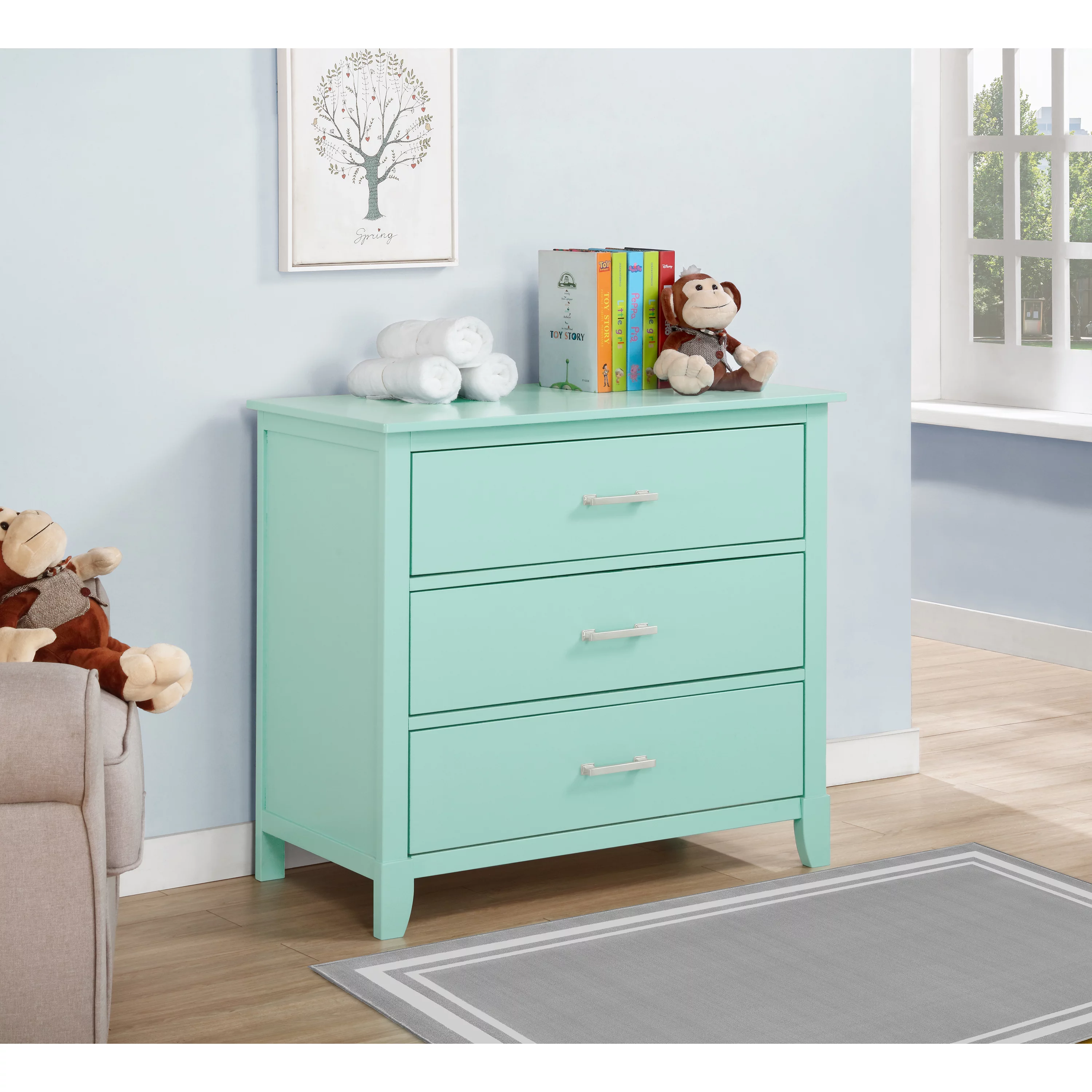 Dream On Me Universal 3 Drawers Chest Mid Century Modern In Mint , Model #600-MT