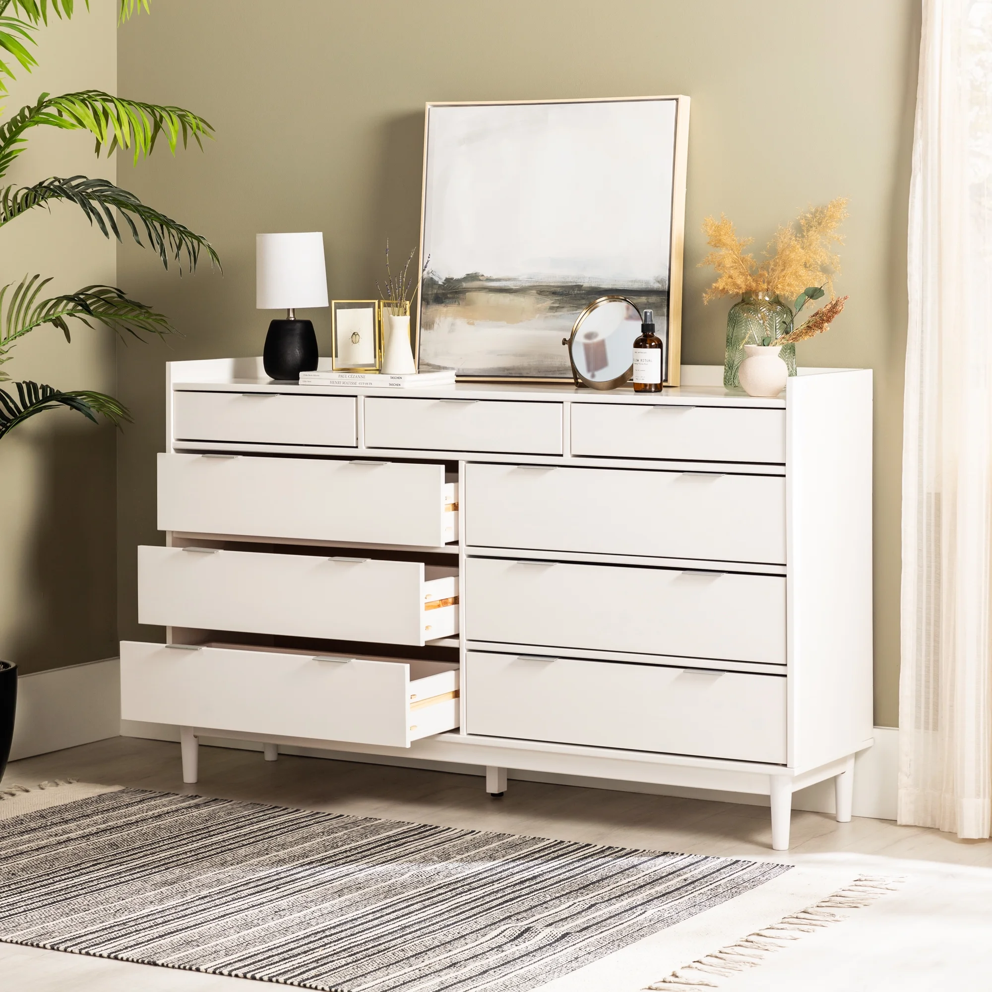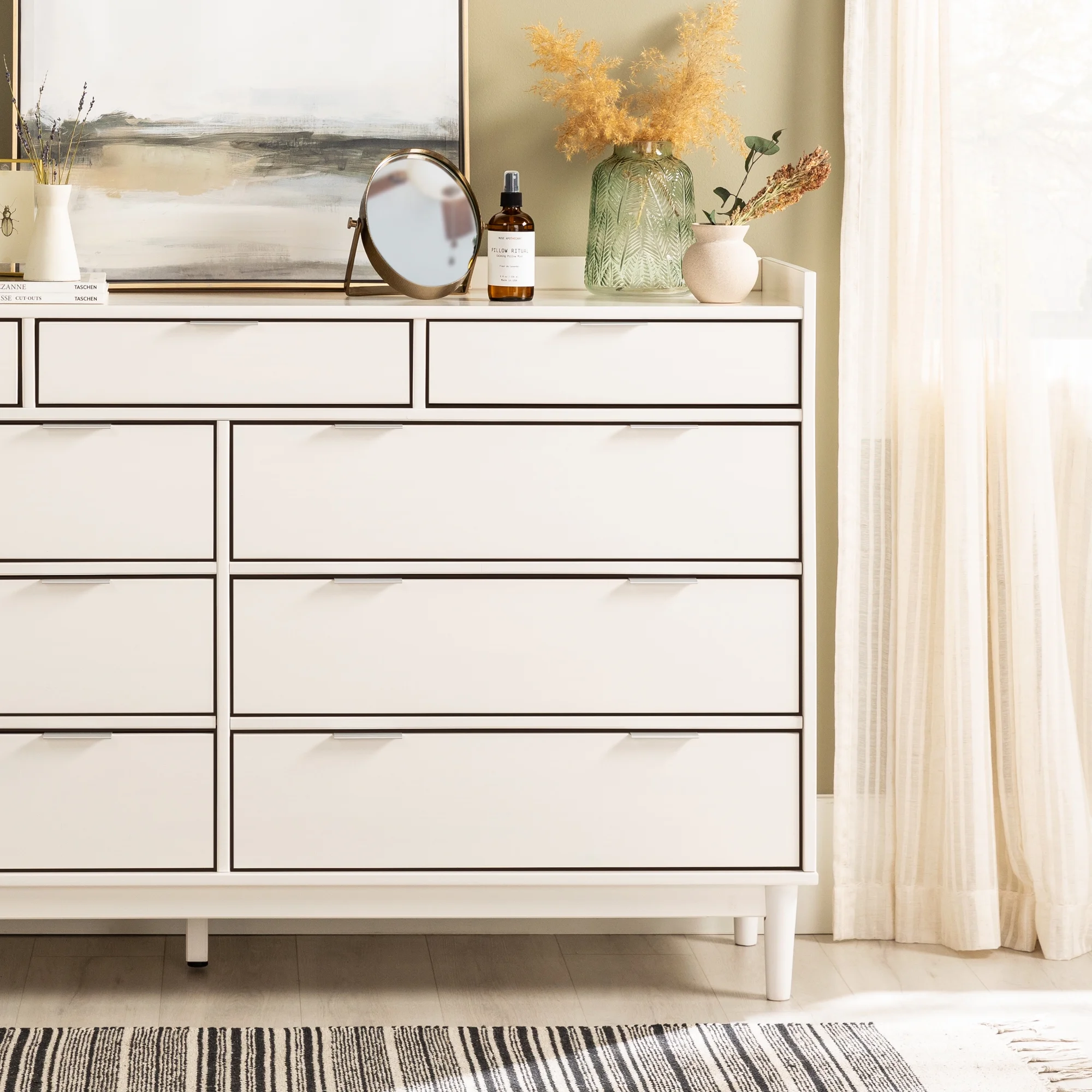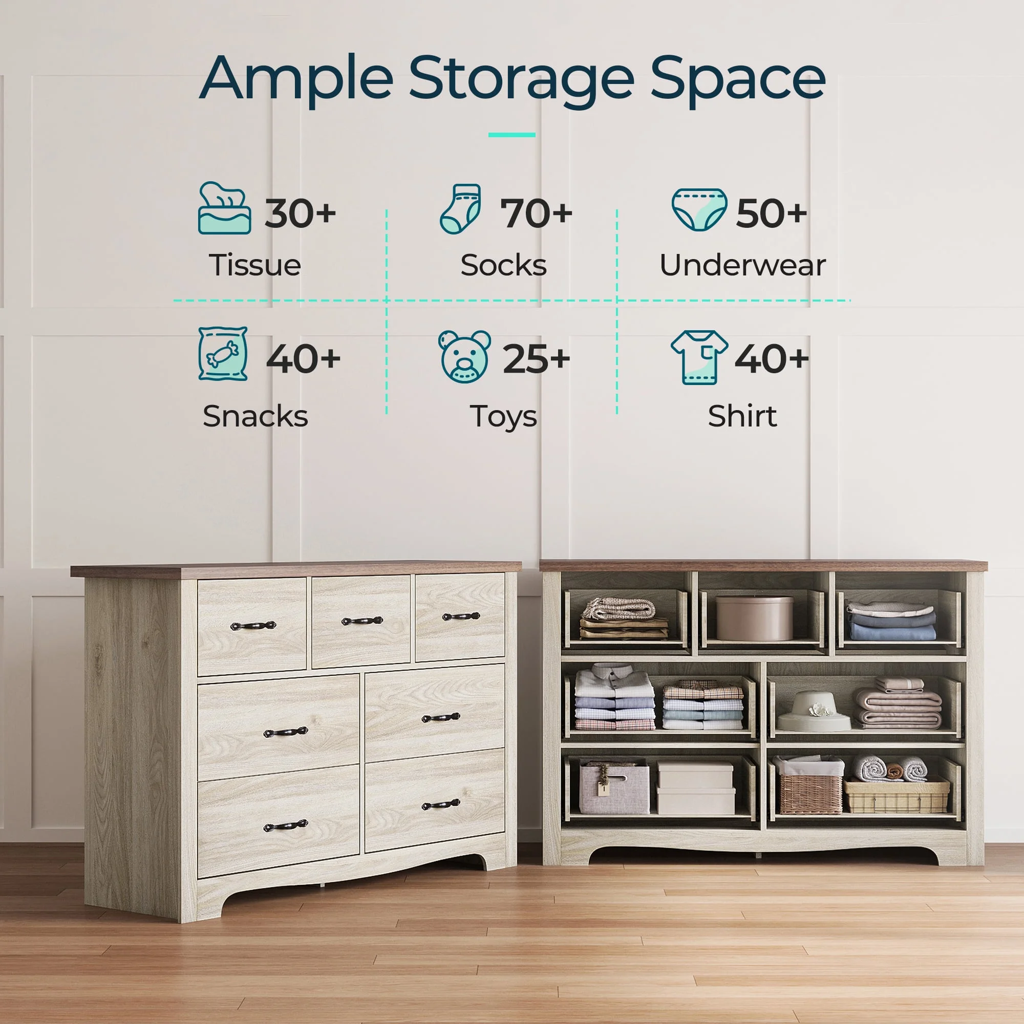 Rustic Farmhouse Style Solid Pine Wood Seven-Drawer Dresser for Living Room, Bedroom,White