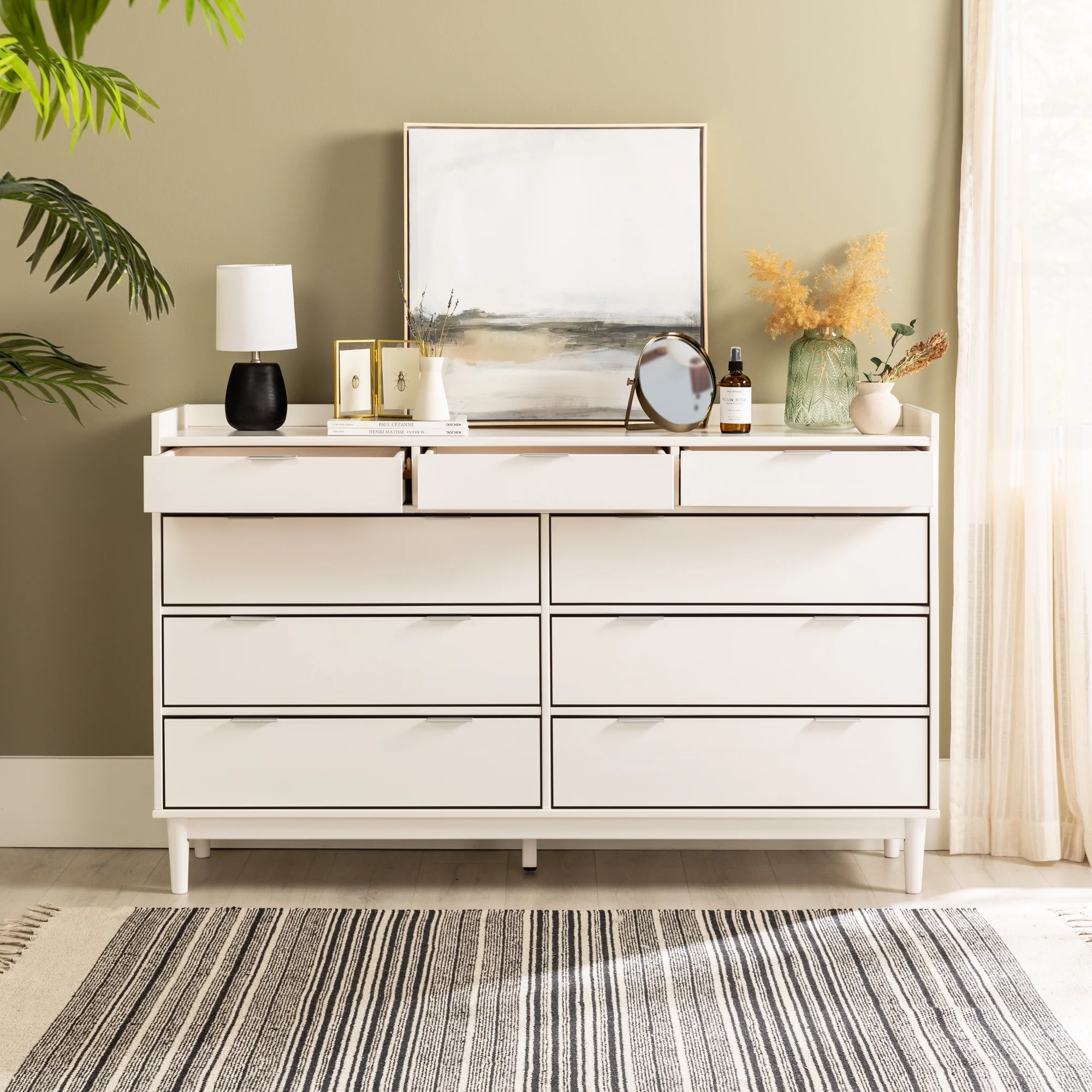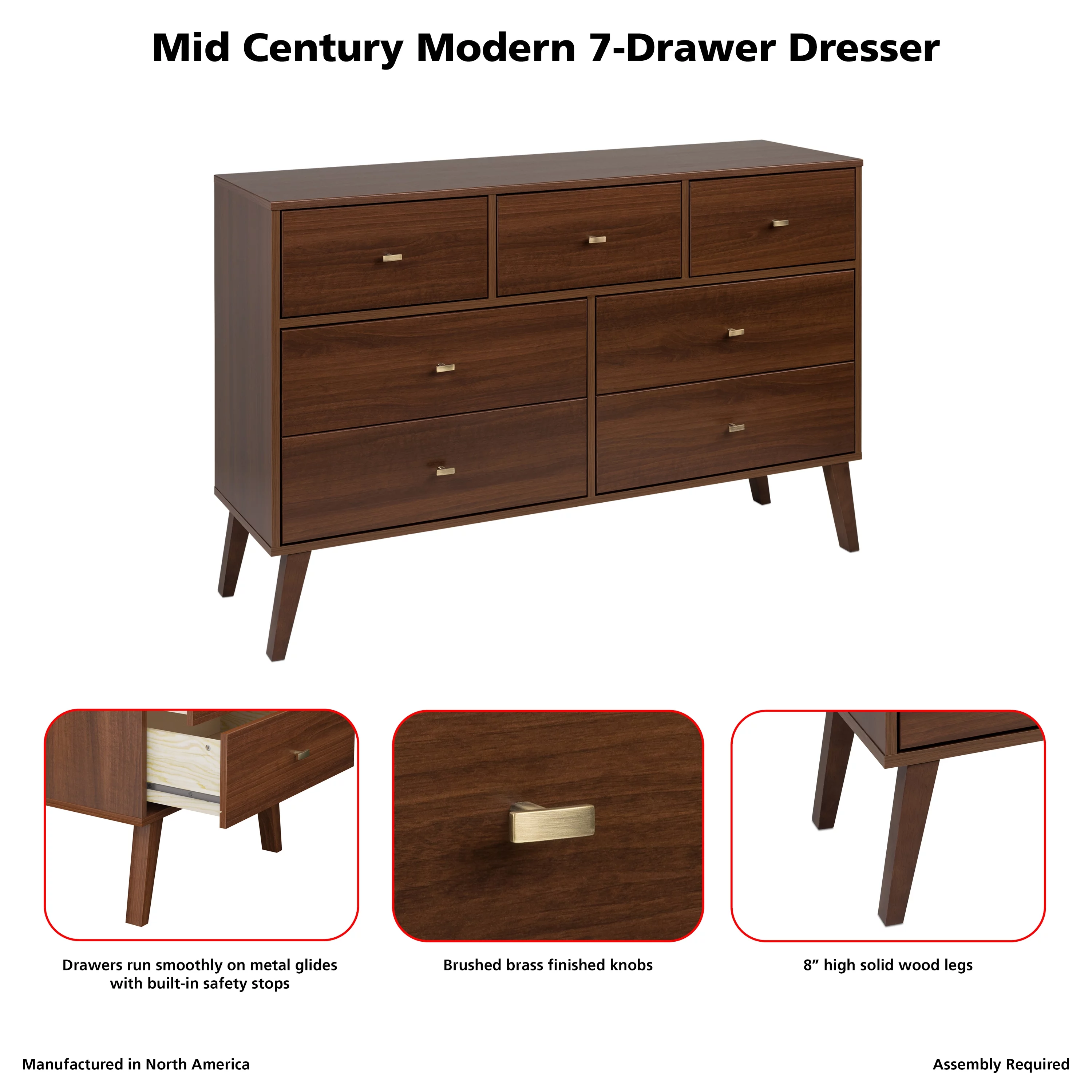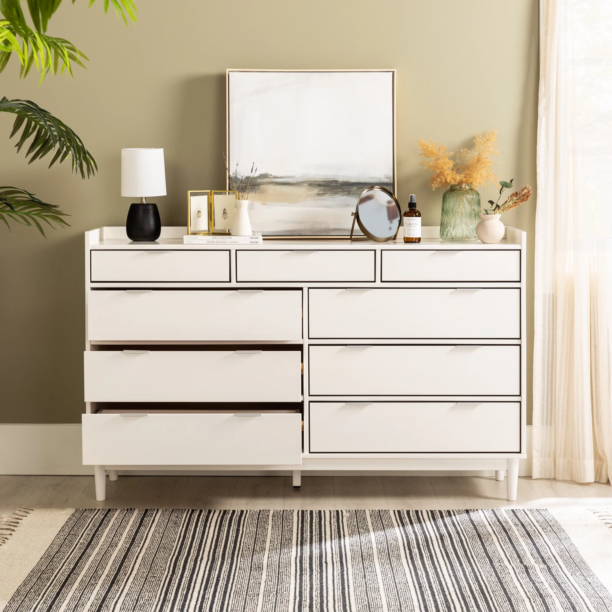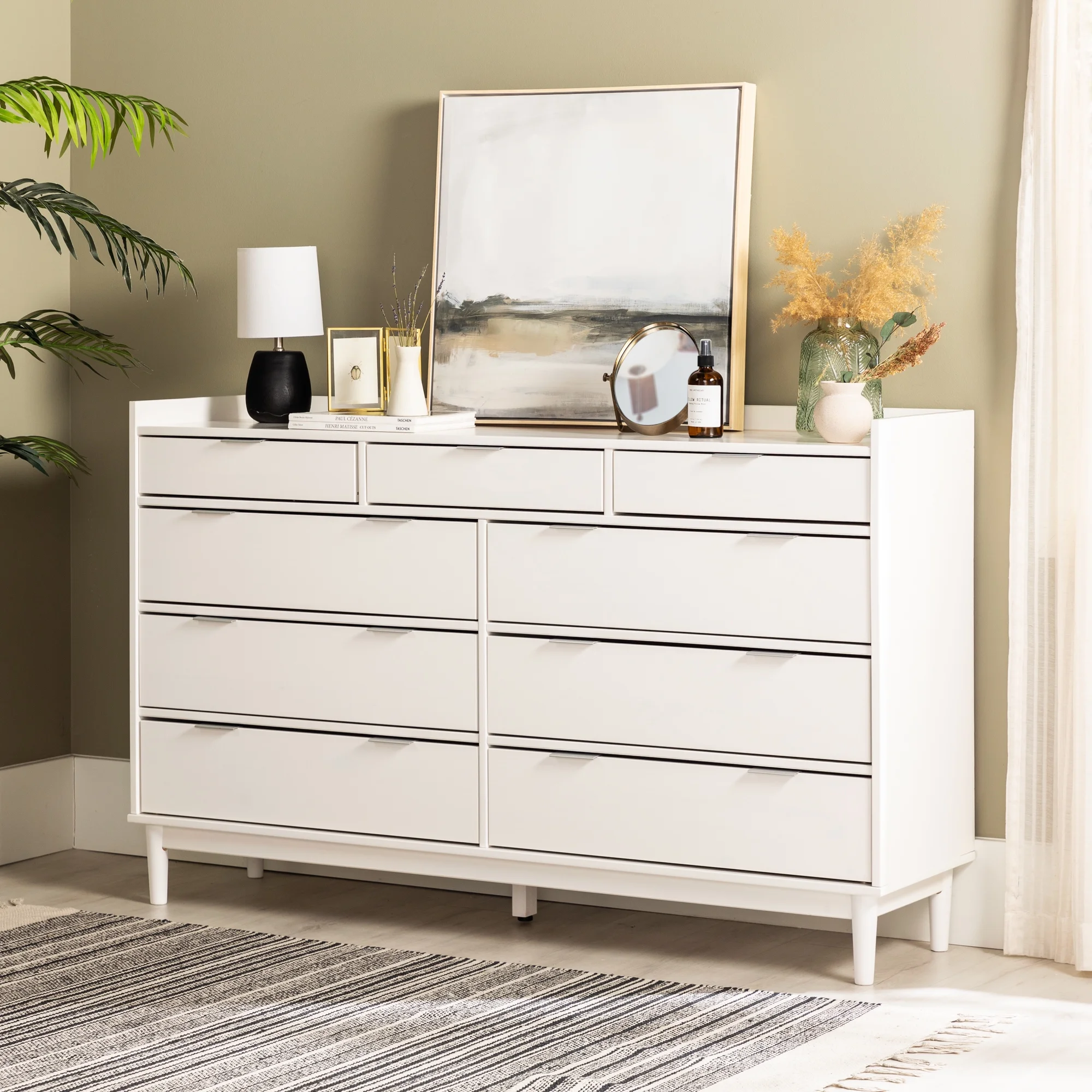 Rustic Farmhouse Style Solid Pine Wood Seven-Drawer Dresser for Living Room, Bedroom,White