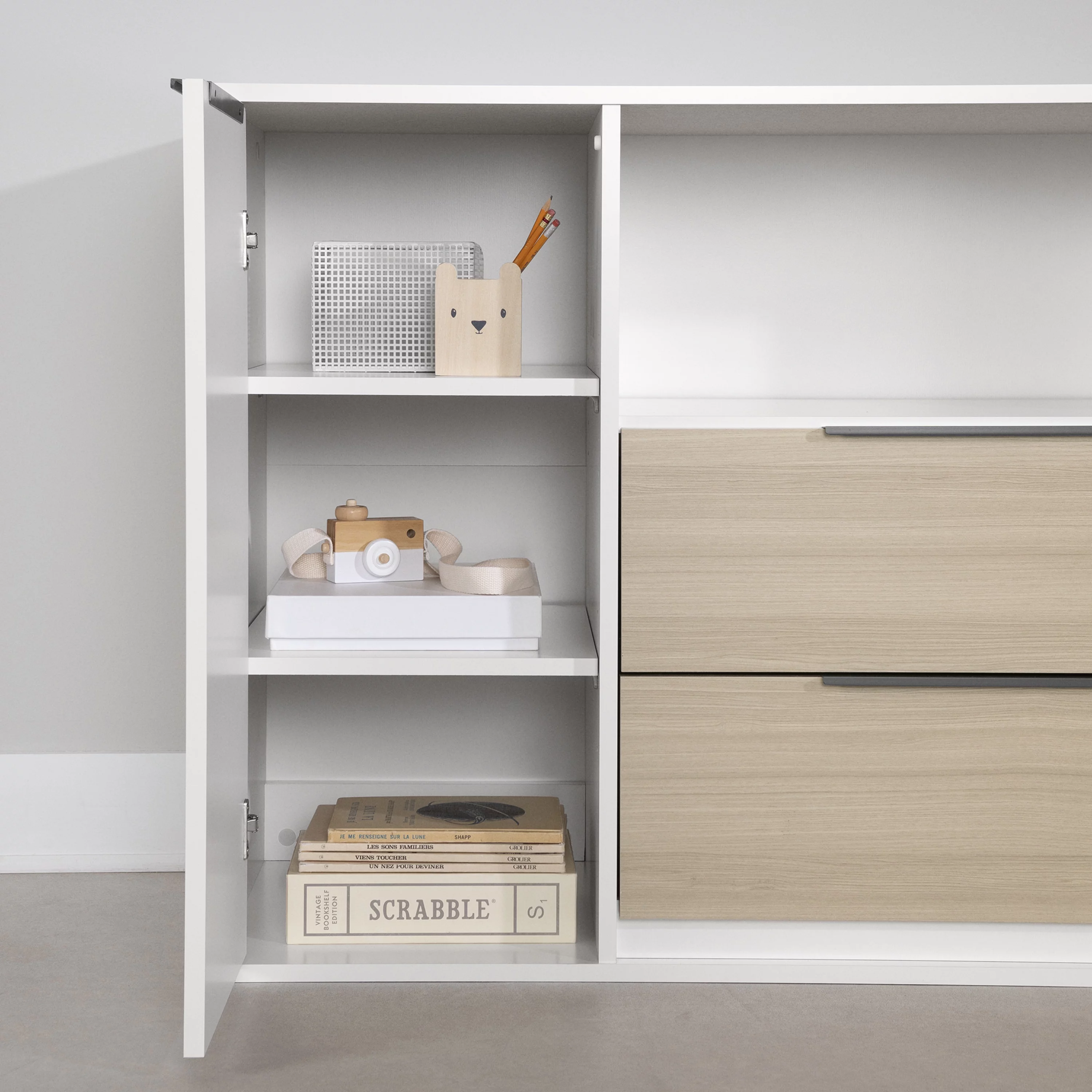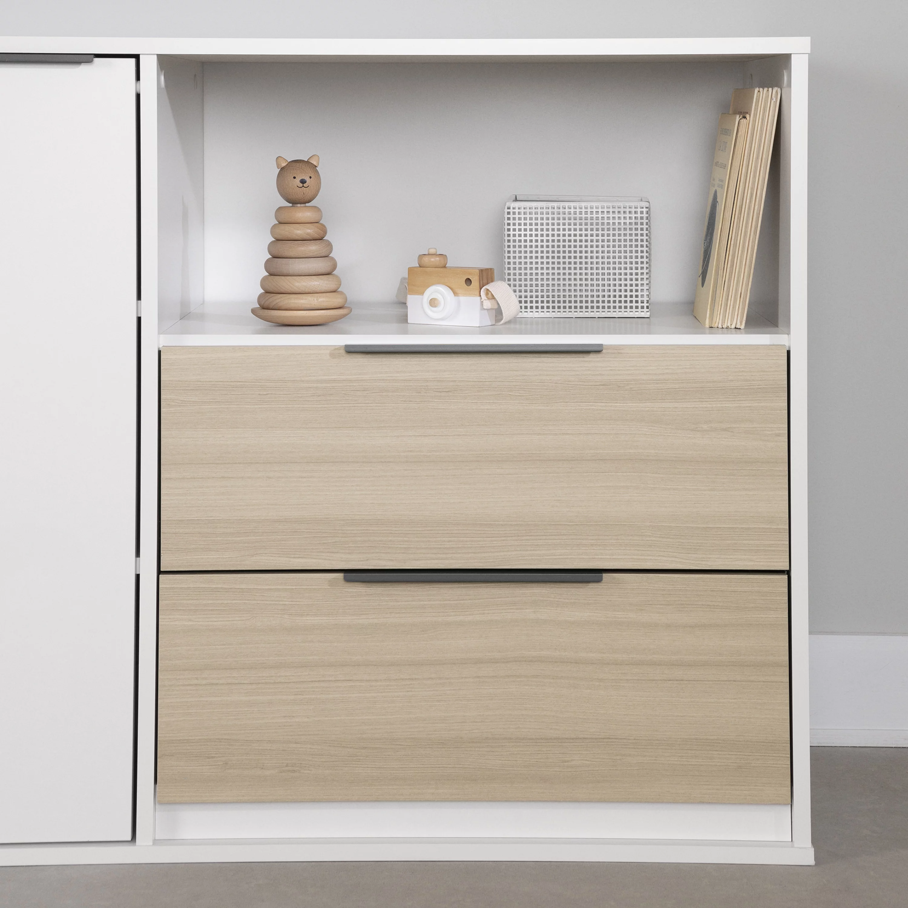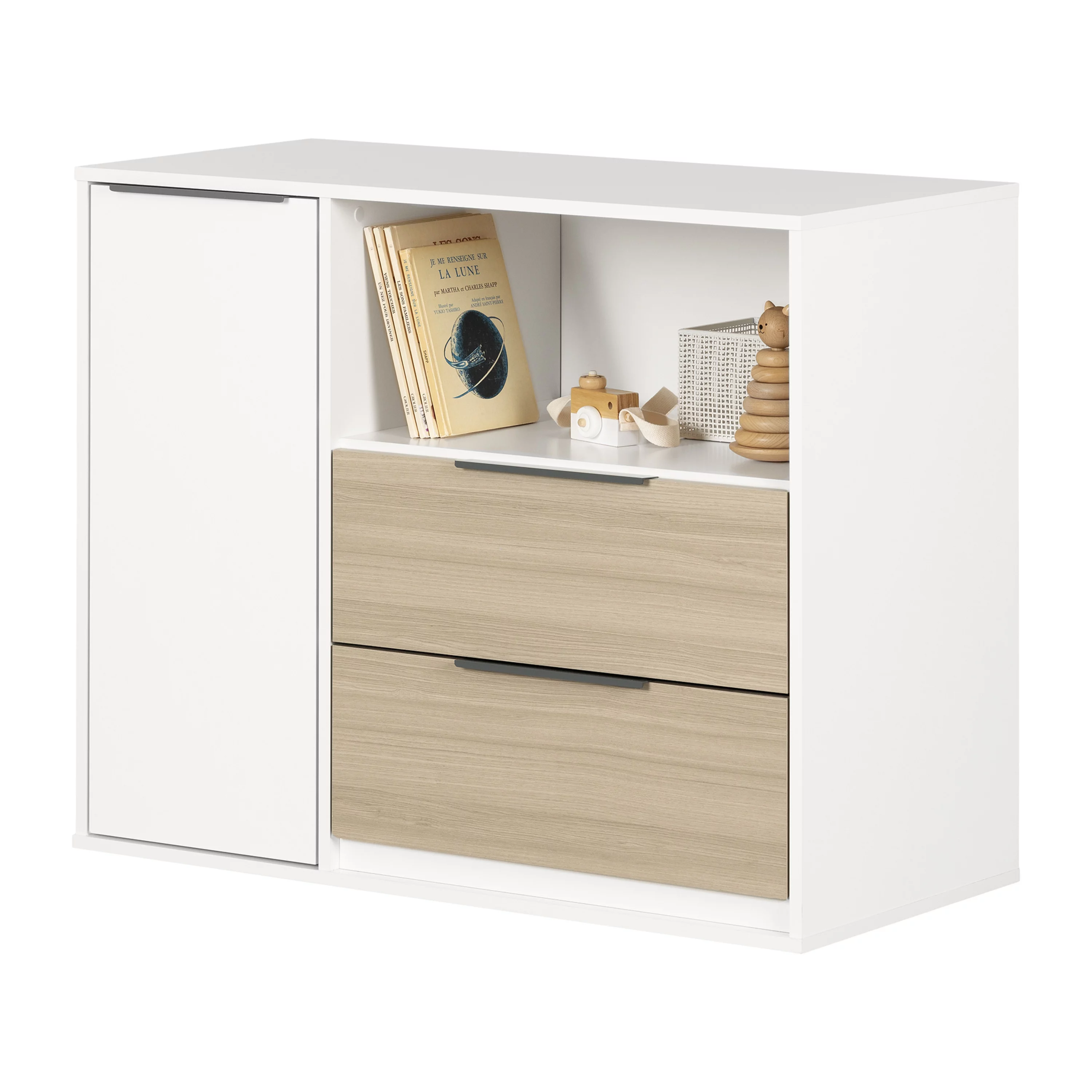 South Shore Hourra, Contemporary Door Chest with 2 Drawers, Soft Elm and White