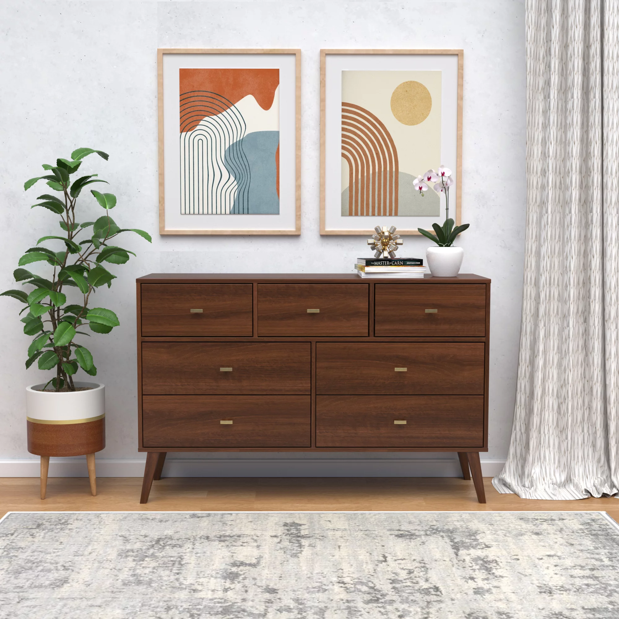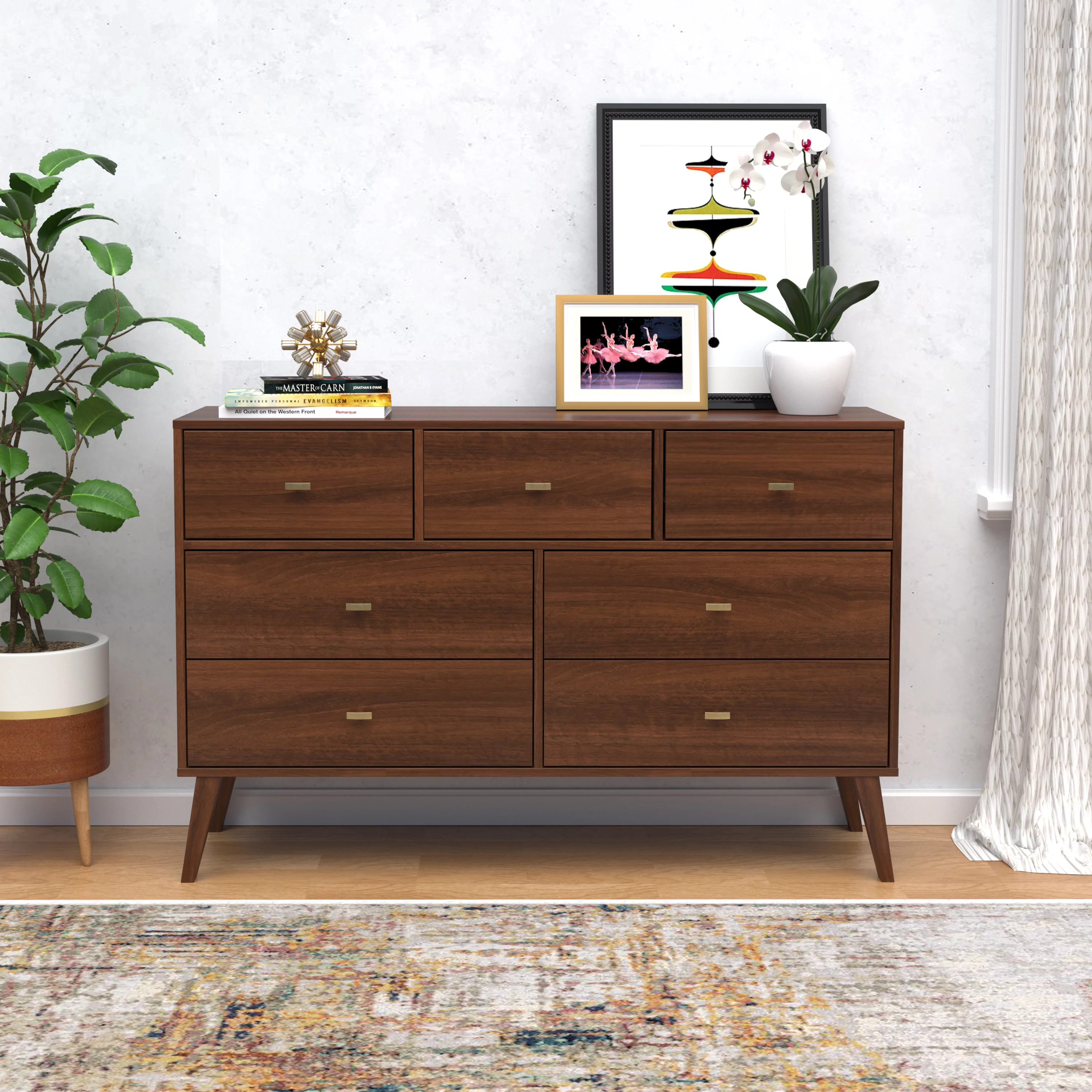 Baxton Studio Landis Mid-Century Modern Ash Walnut Finished Wood 6-Drawer Dresser