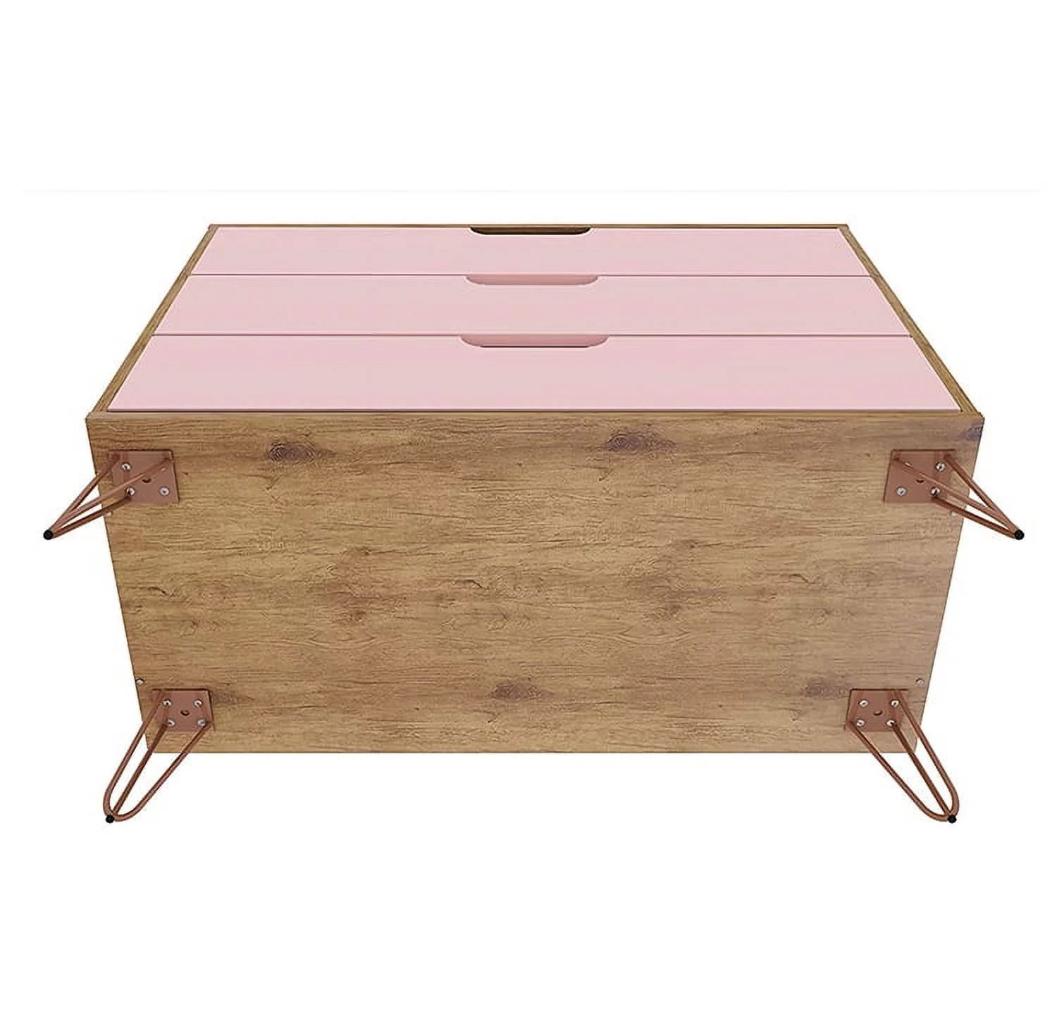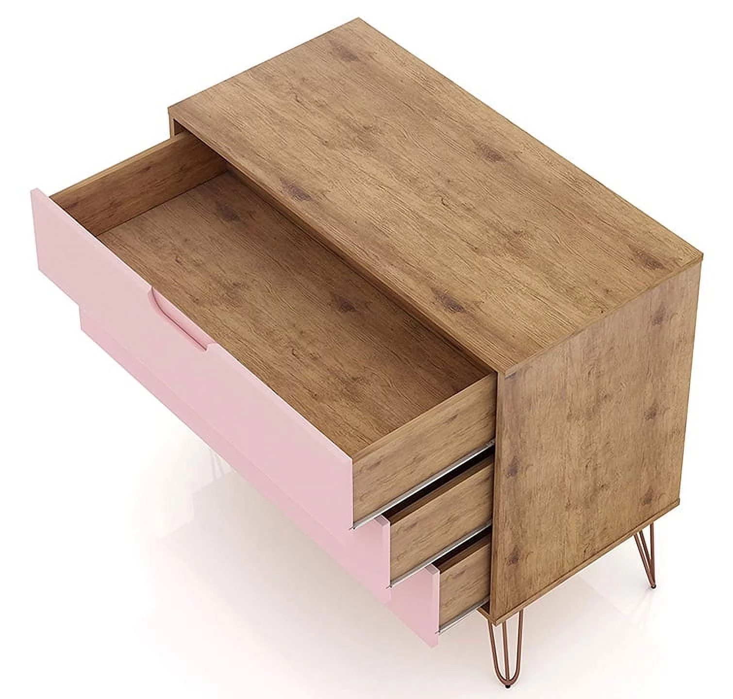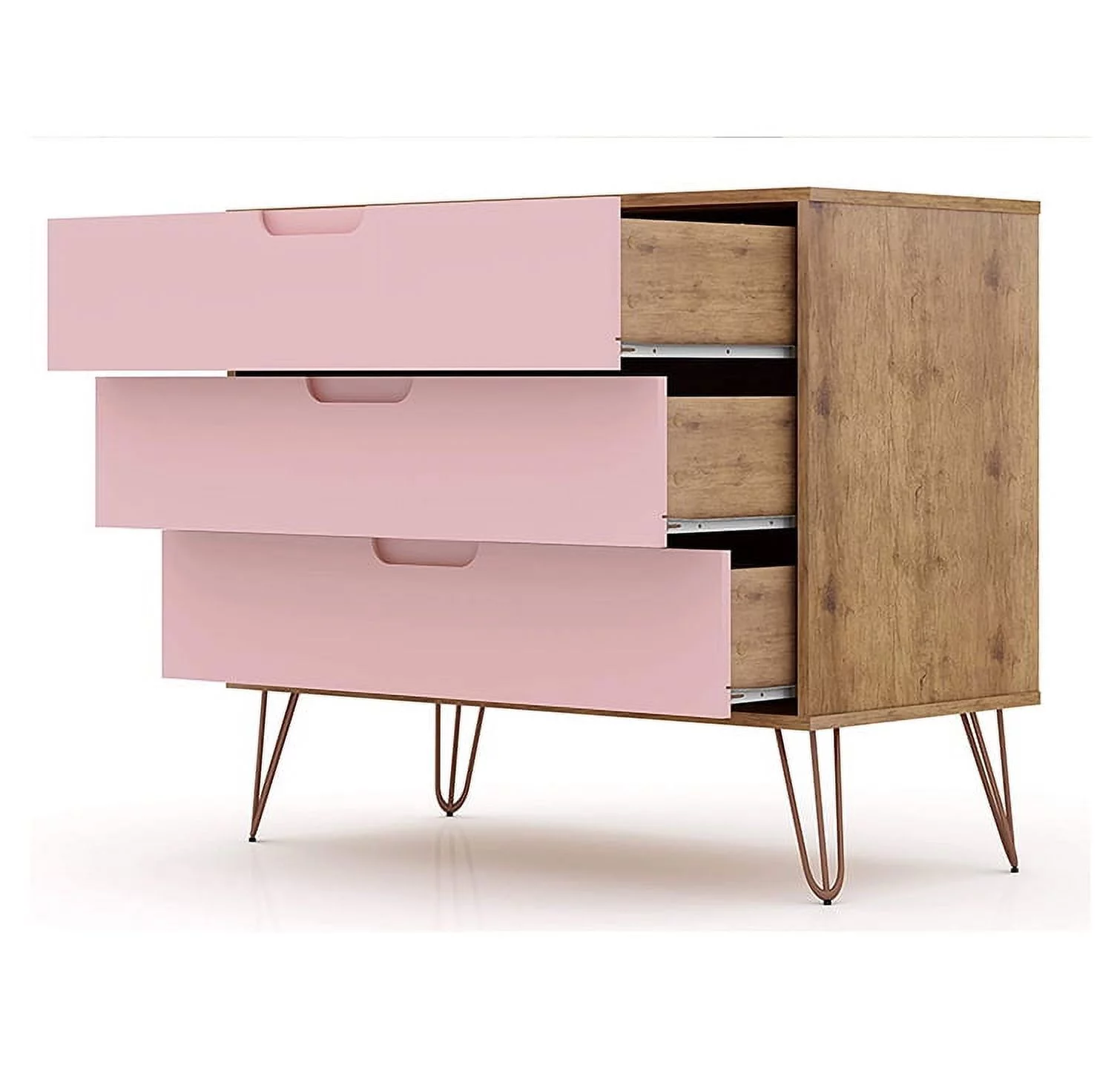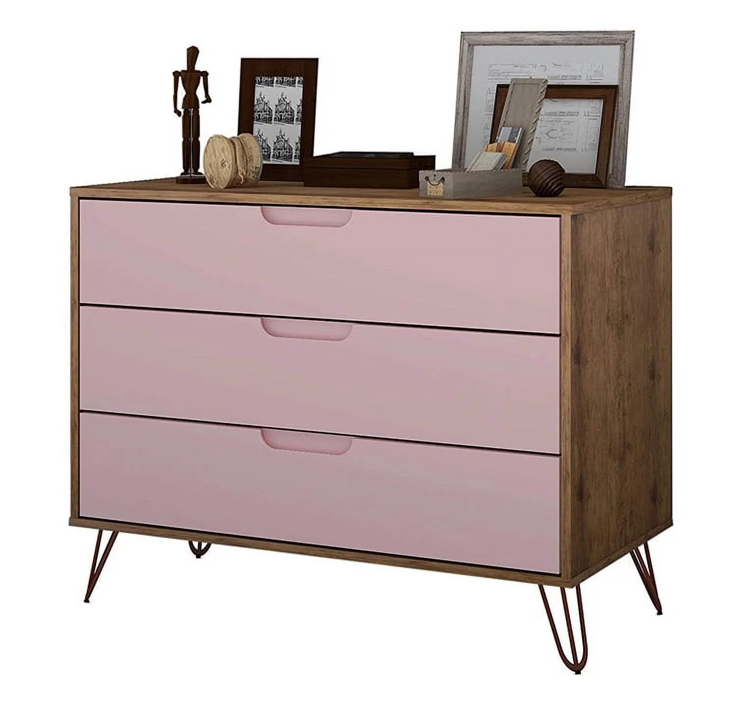 Rockefeller Mid-Century- Modern Dresser with 3- Drawers in Nature and Rose Pink