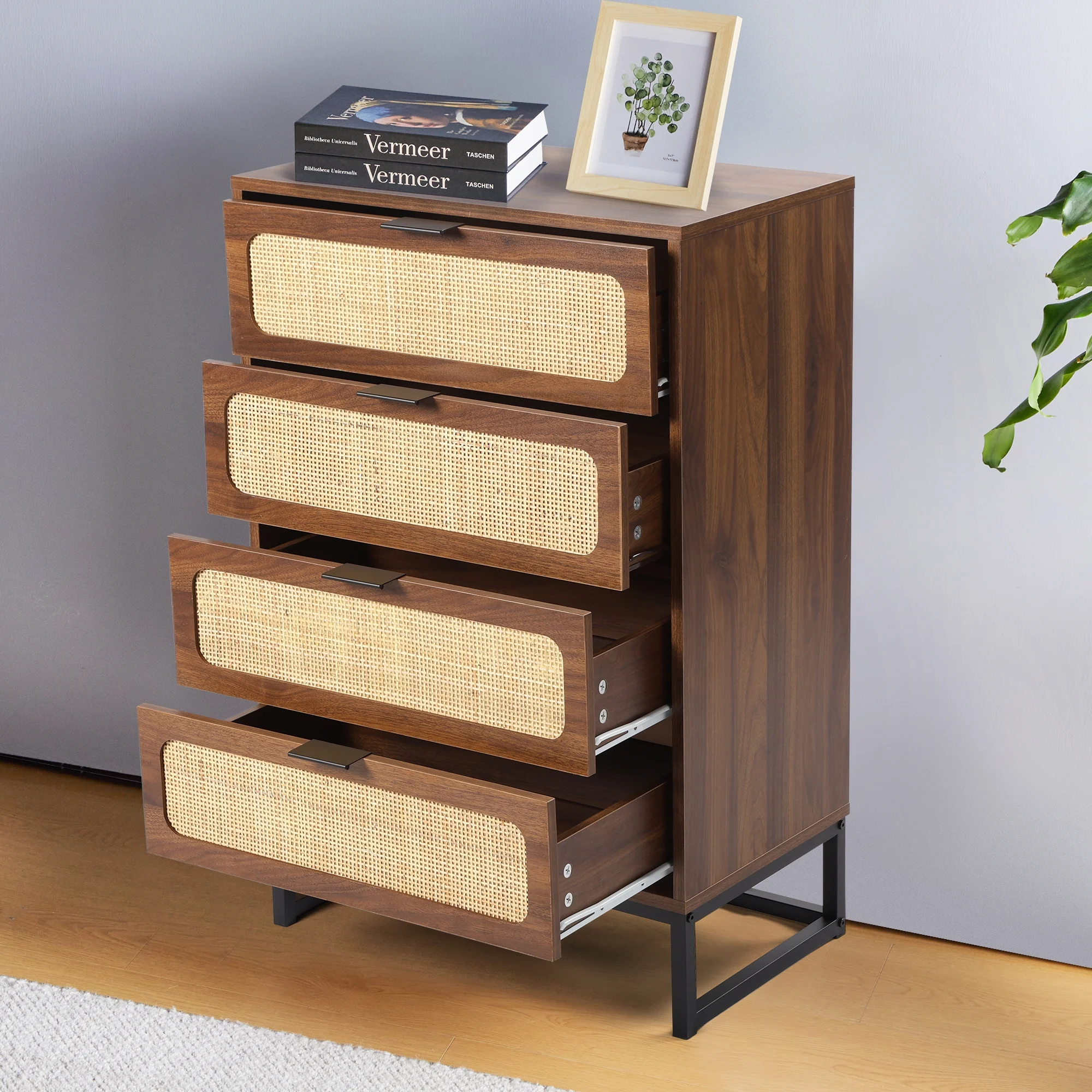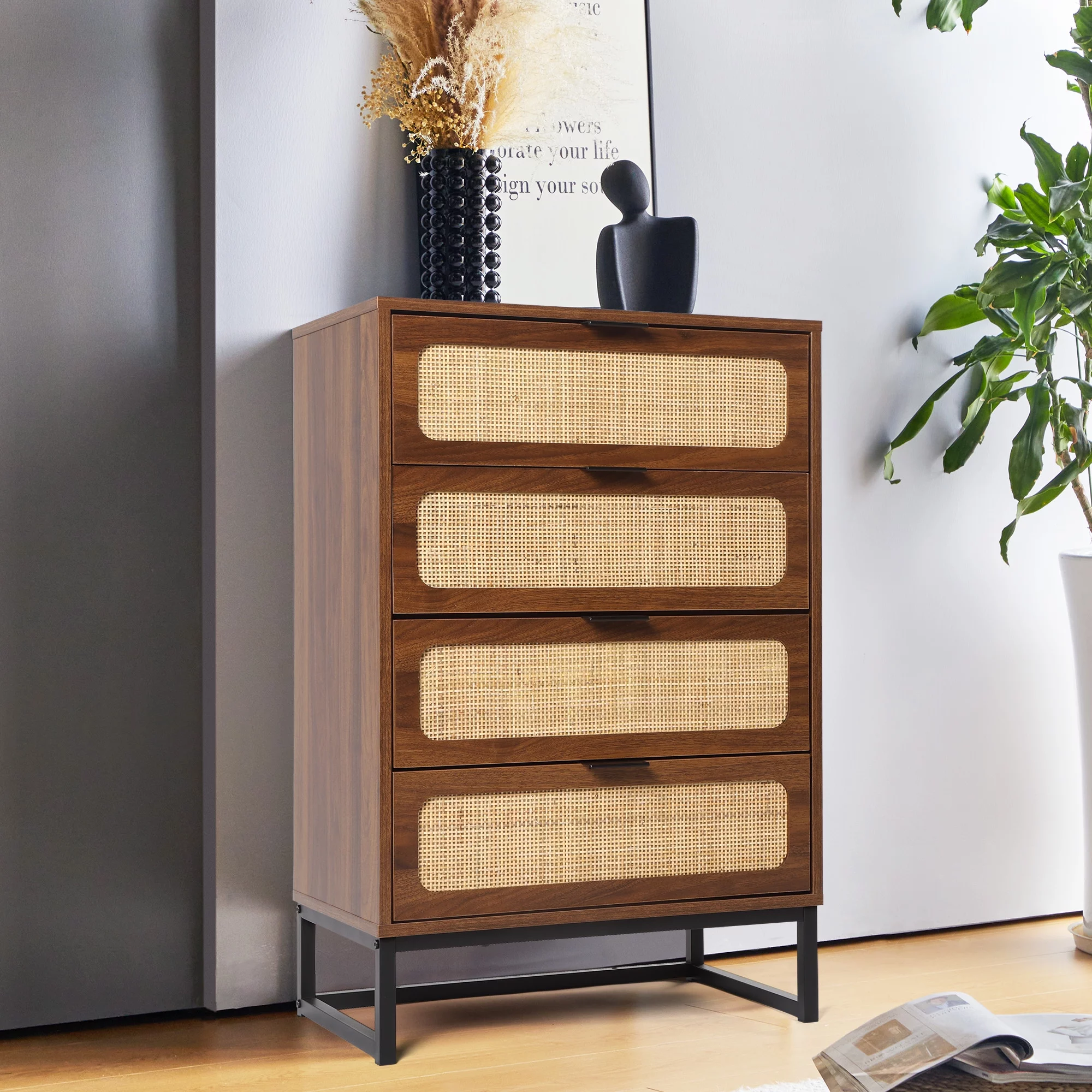 Walker Edison 60” Contemporary Vertical Drawer Pulls Solid Wood Dresser, Caramel