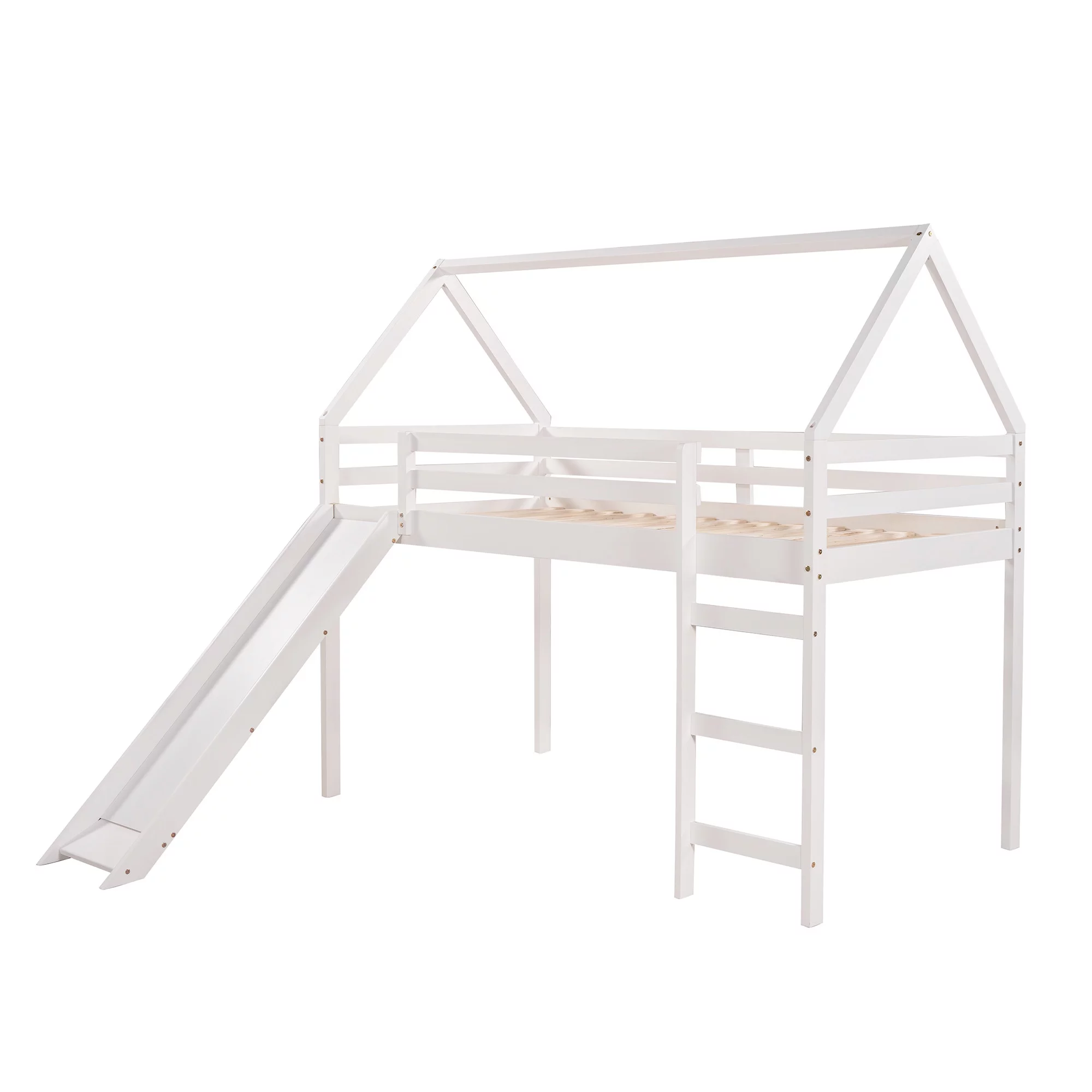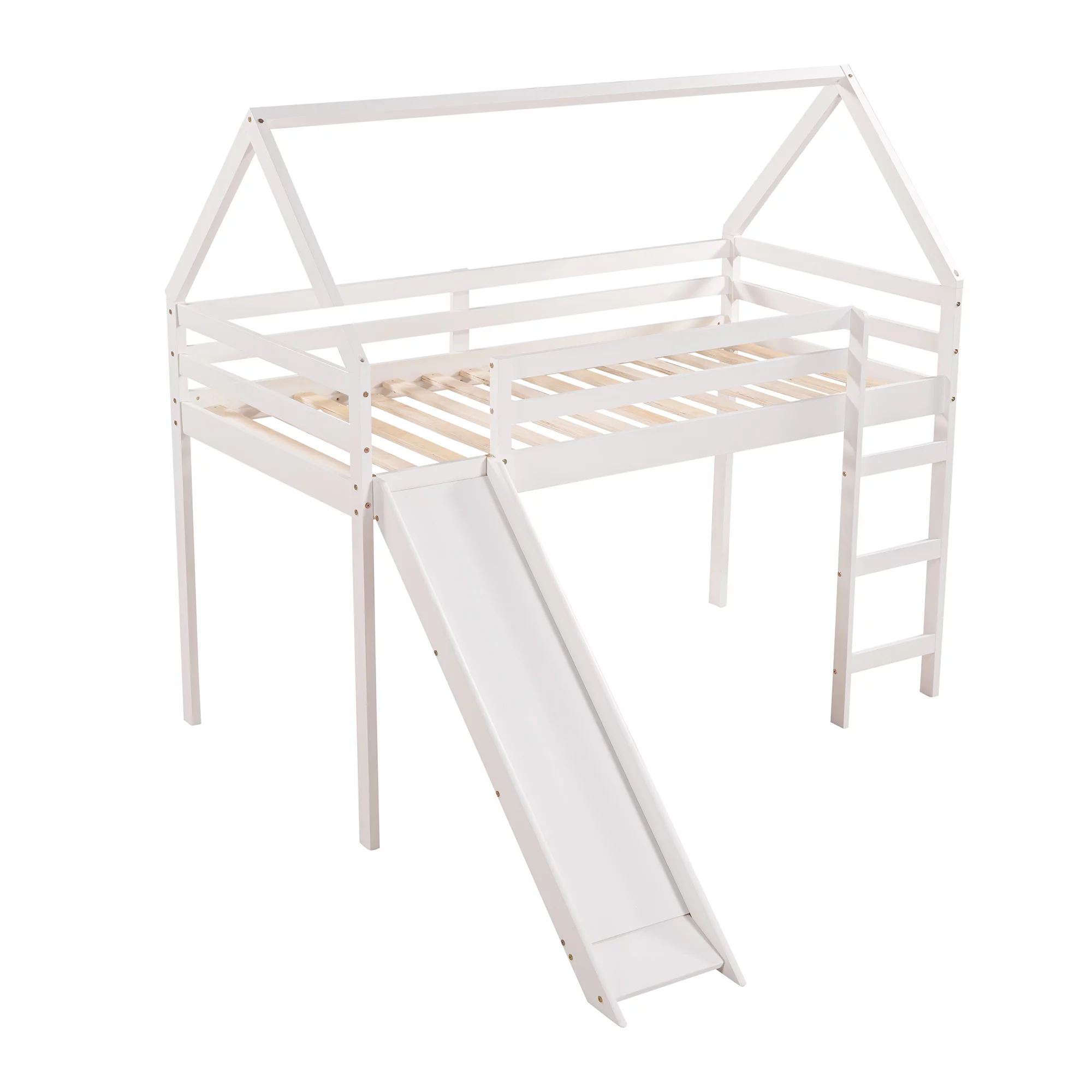 Twin Size Loft Bed with Slide, House Bed with Slide,White(OLD SKU :WF281158AAK)