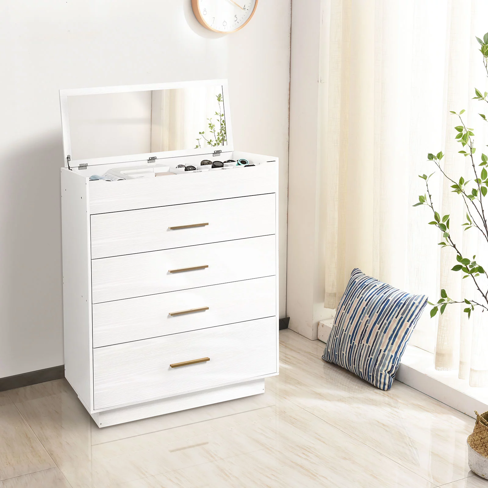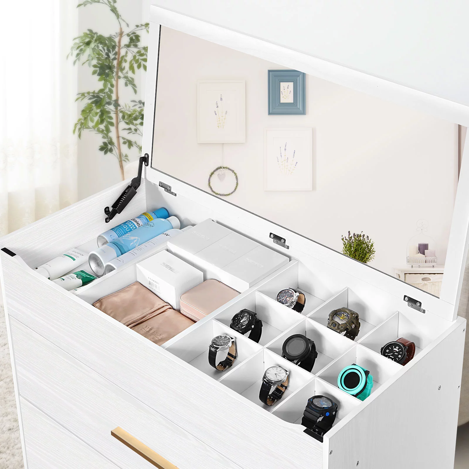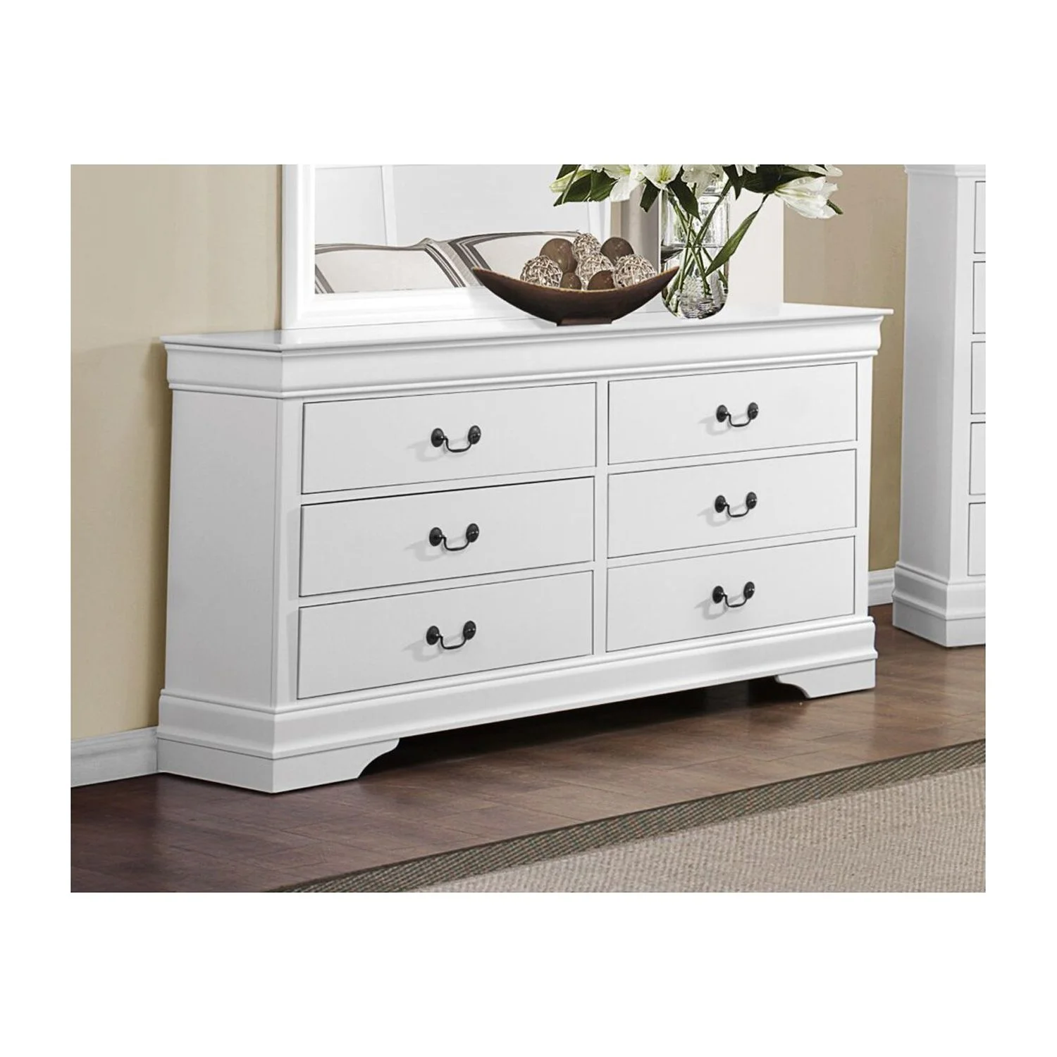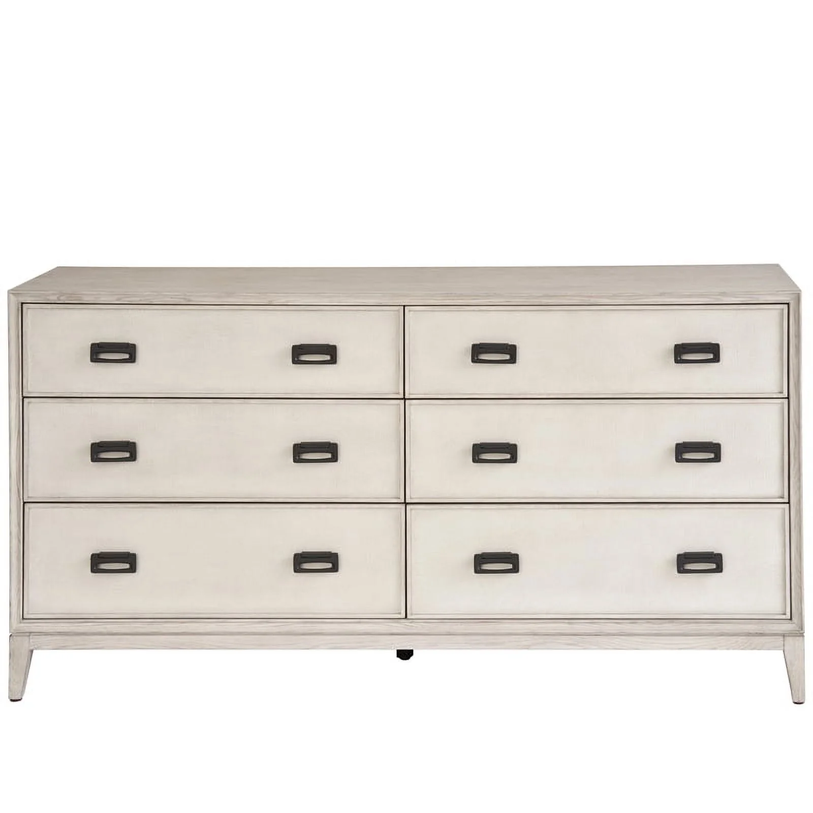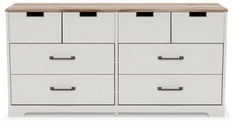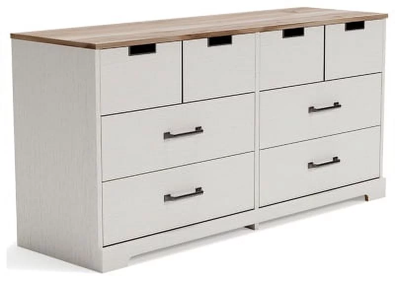 Signature Design by Ashley Vaibryn Farmhouse 6 Drawer Dresser with Warm Brown Replicated Elm Wood Grain Top, Whitewash