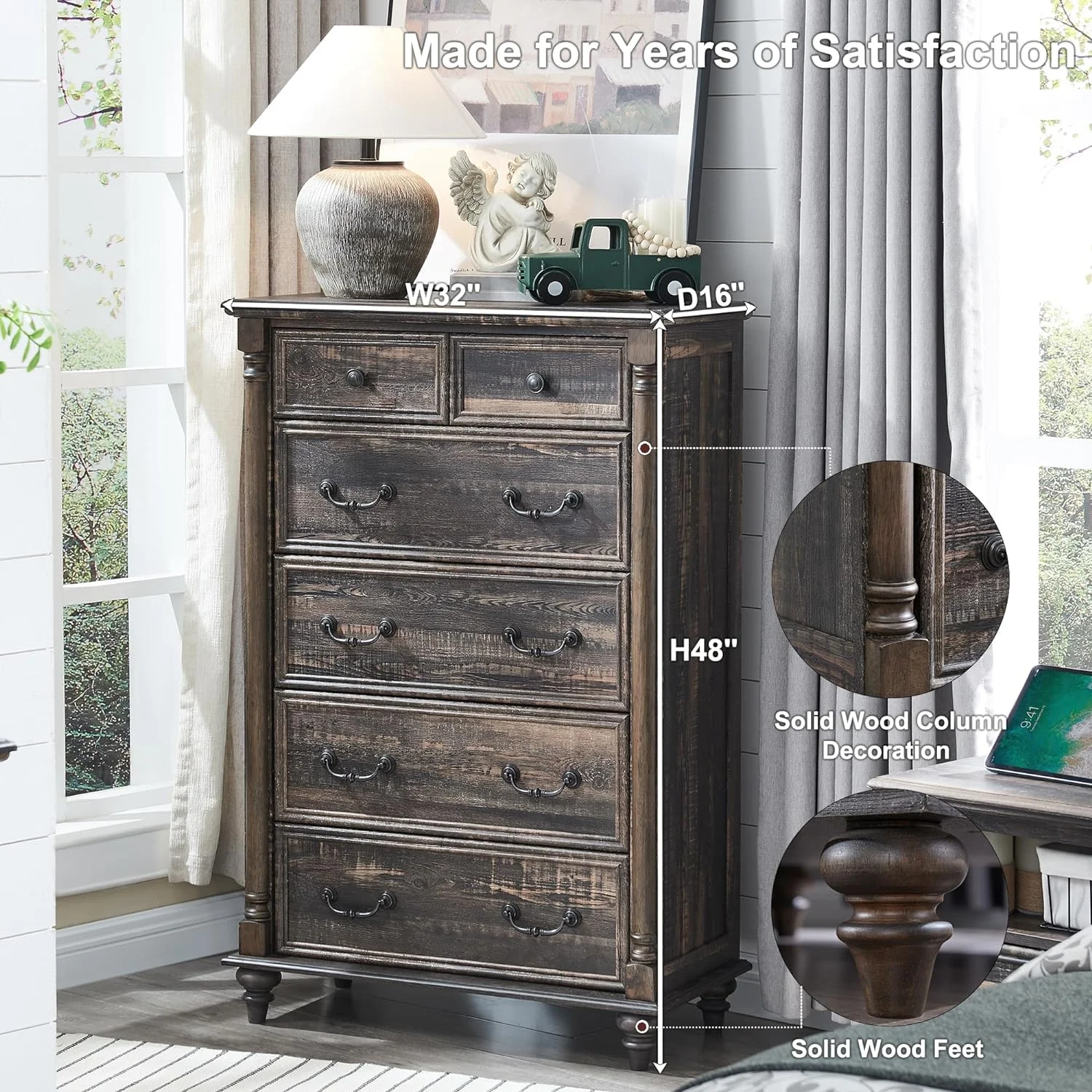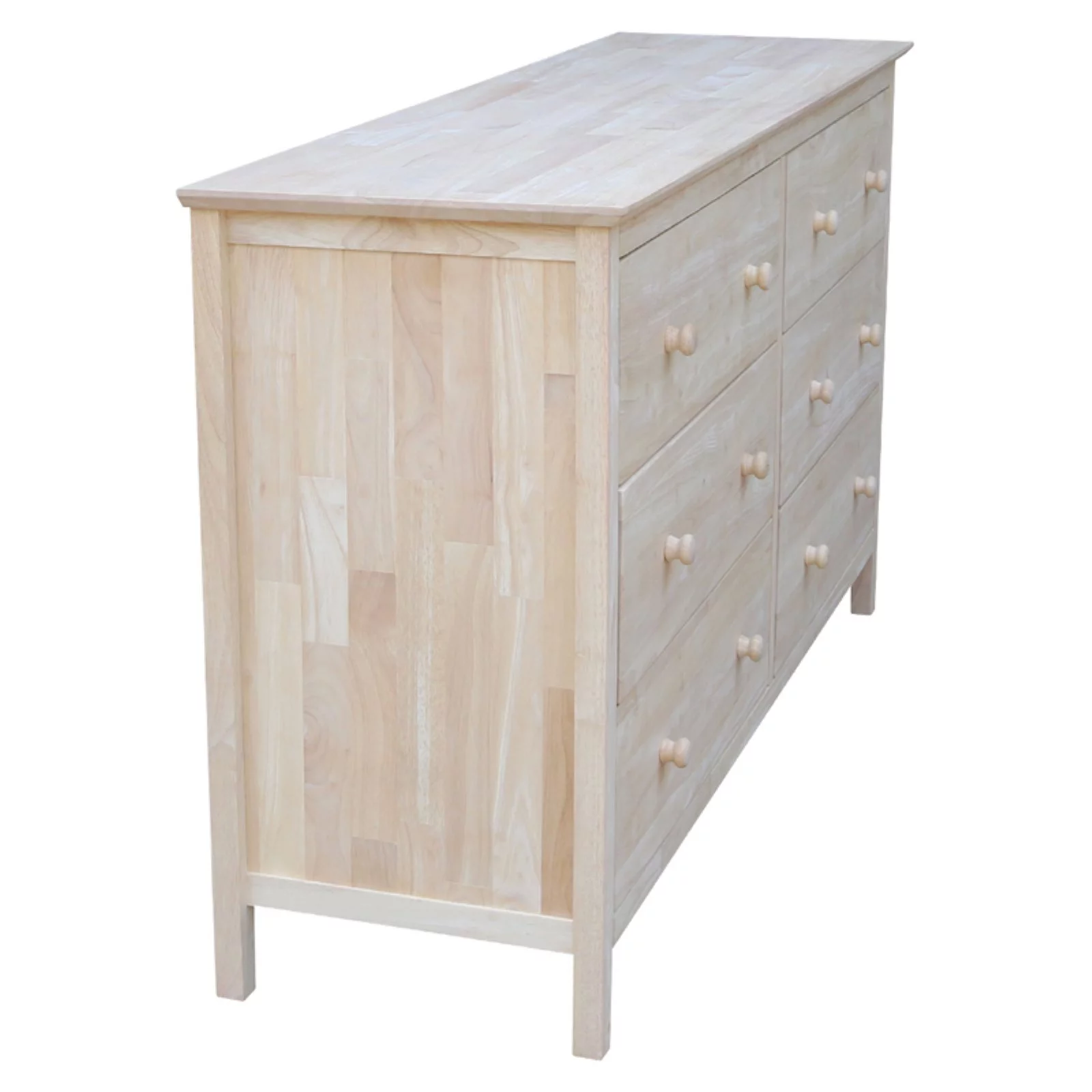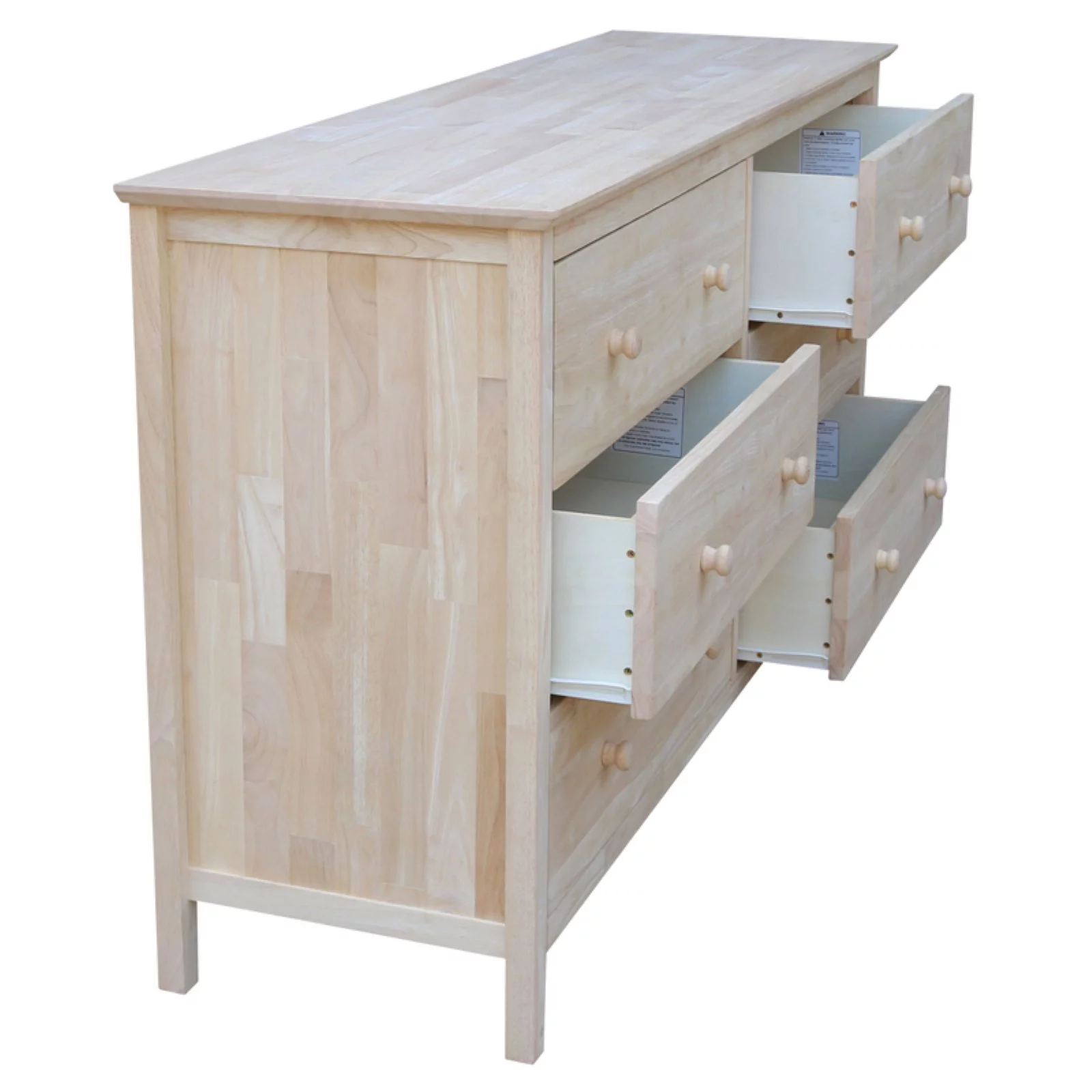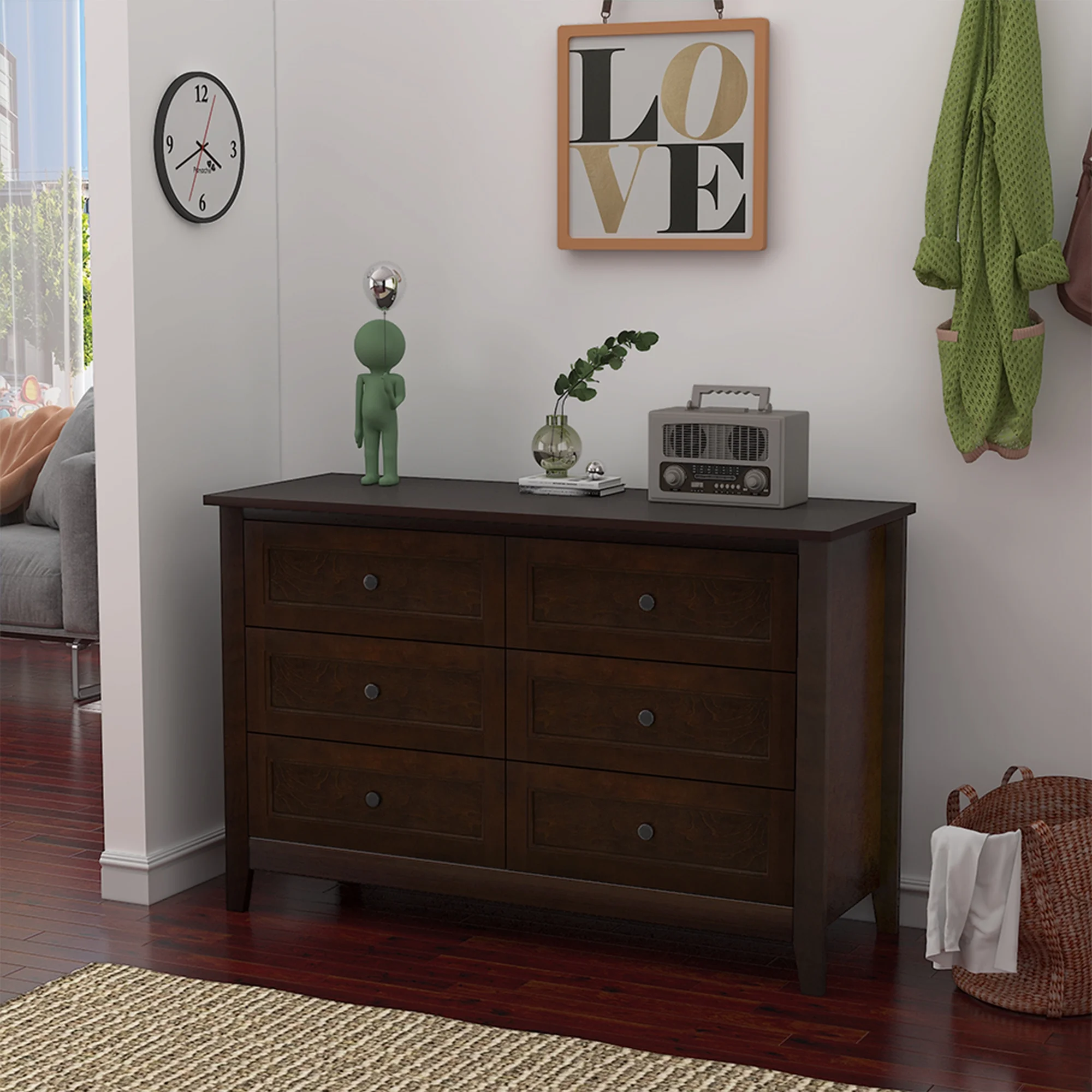Birch Solid Wood Dresser Double Chest of 6 Drawers Bedroom Storage Brown