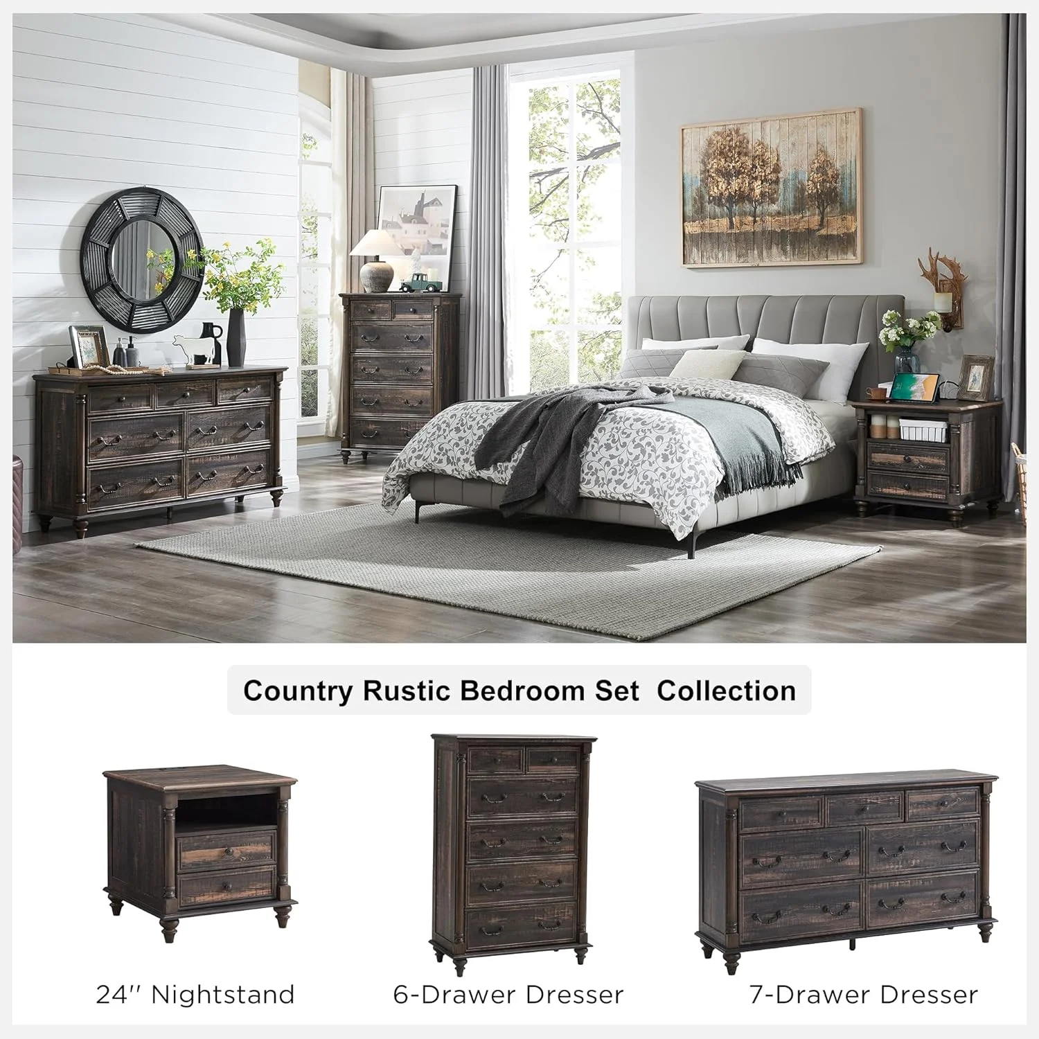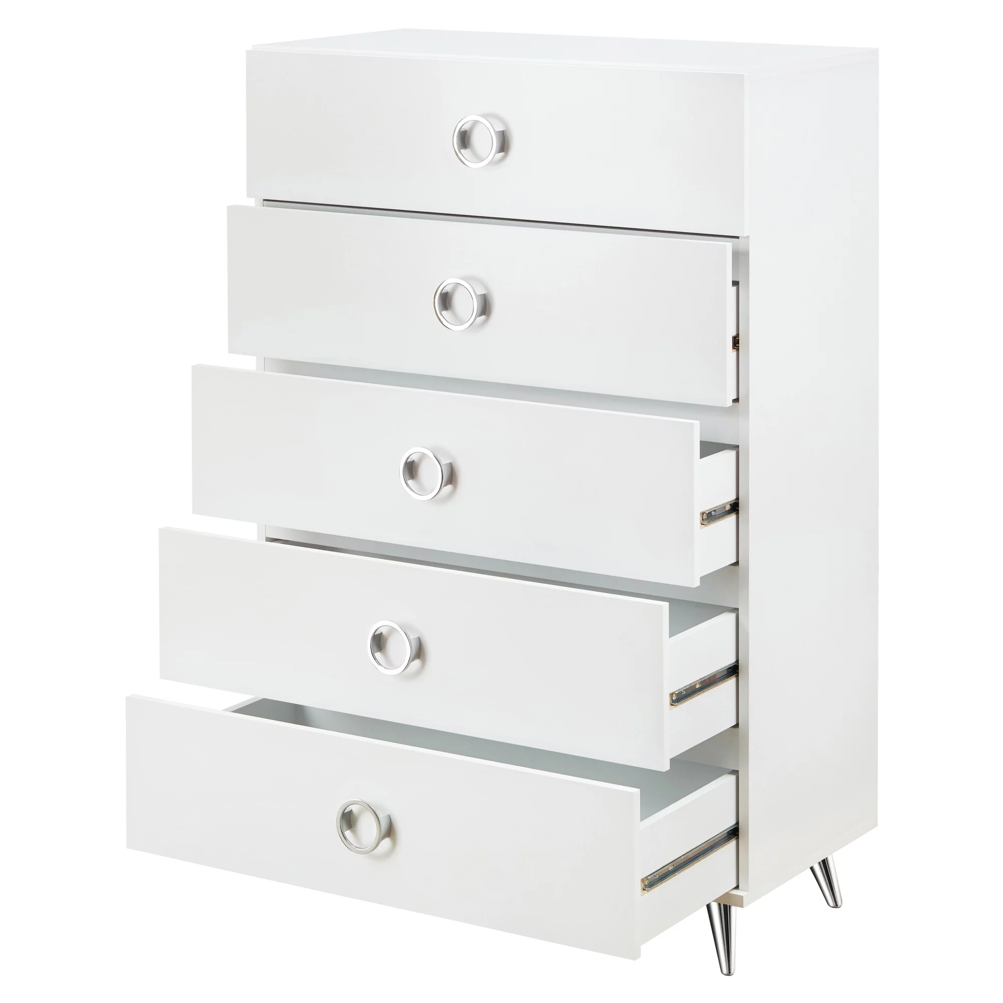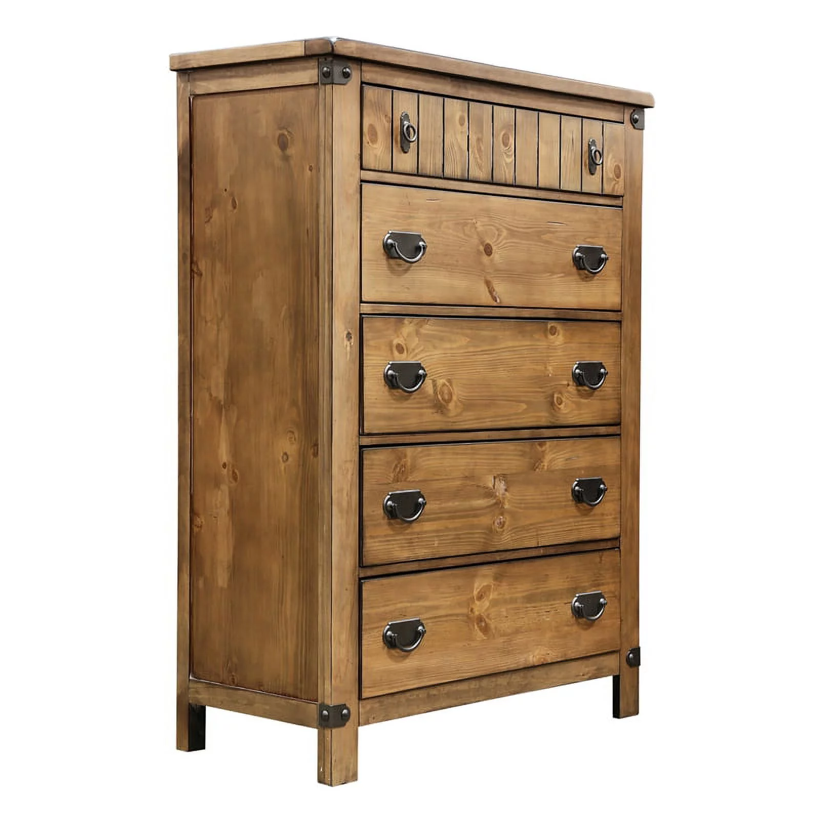 Ryla 48 Inch Tall Dresser Chest, 5 Drawers, Metal Handles, Solid Brown Wood