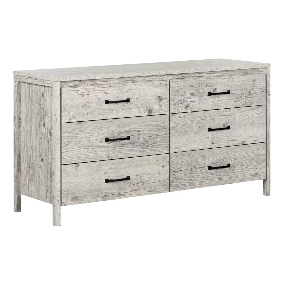 South Shore Hourra, Contemporary 6-Drawer Double Dresser, Soft Elm and White