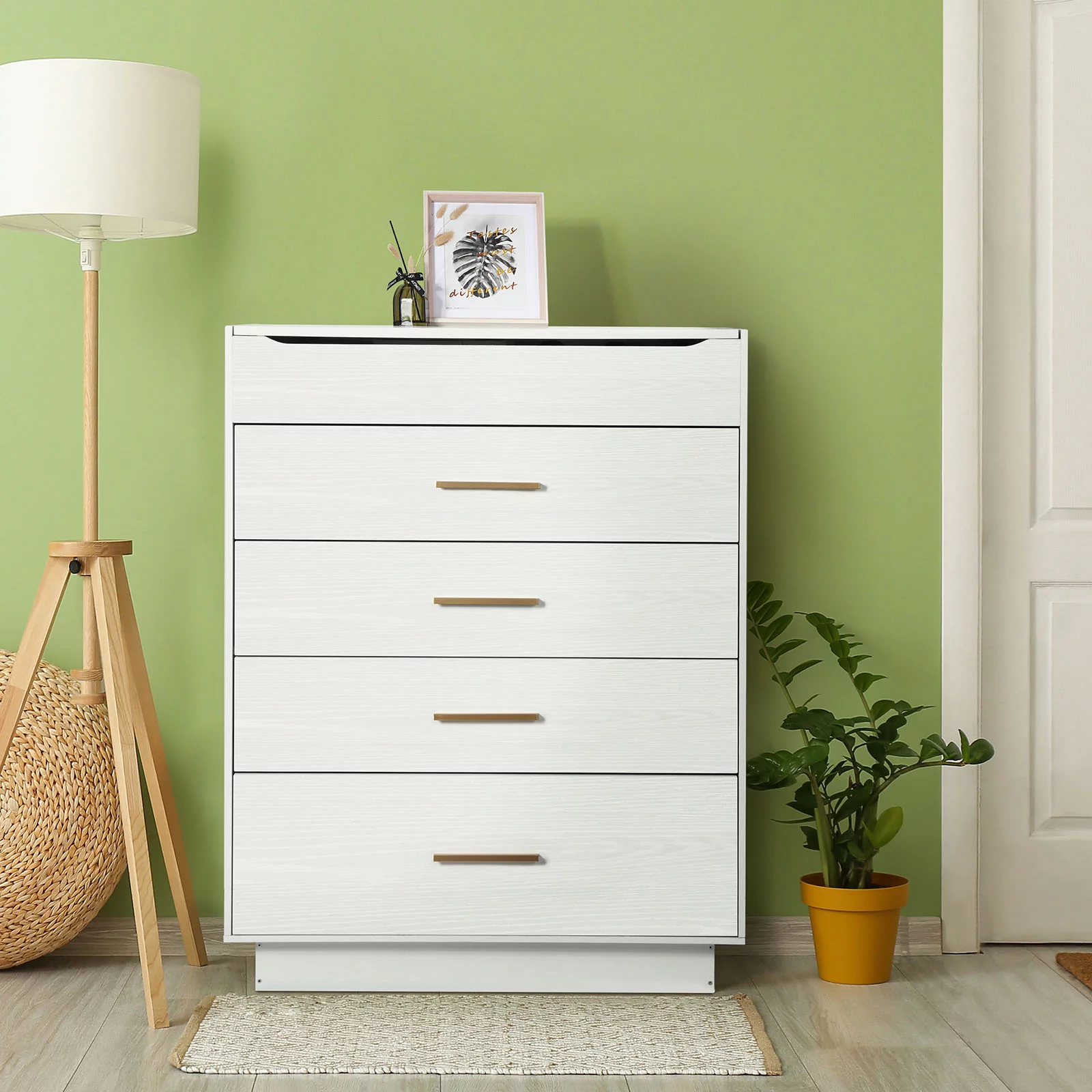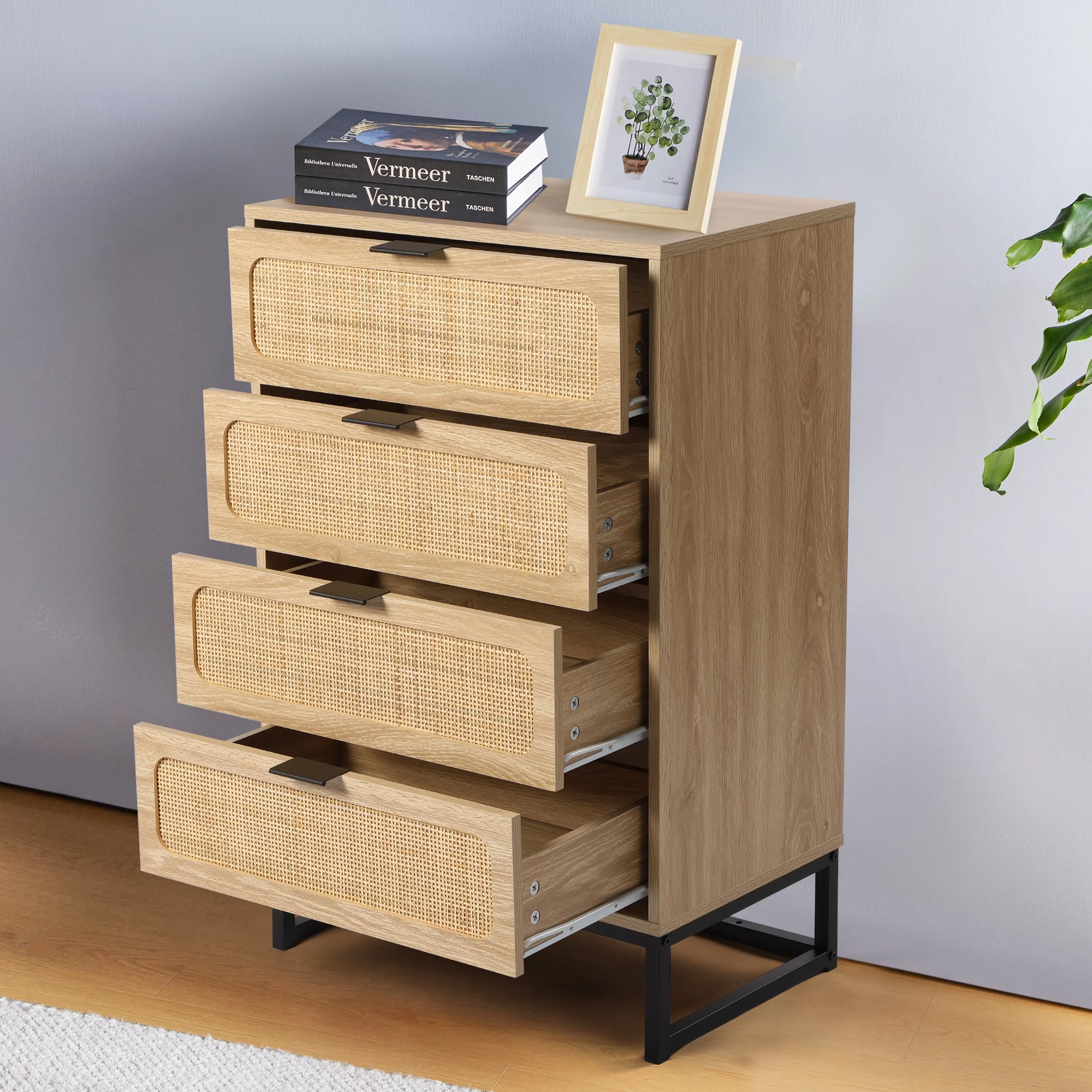 Benjara BM306659 39 in. Emme 5 Drawers & Bun Feet Oak Brown Wood Tall Dresser Chest