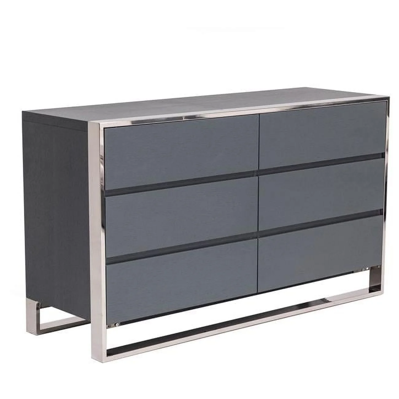 Limari Home Heloise Elm Veneer Wood and Stainless Steel Dresser in Gray