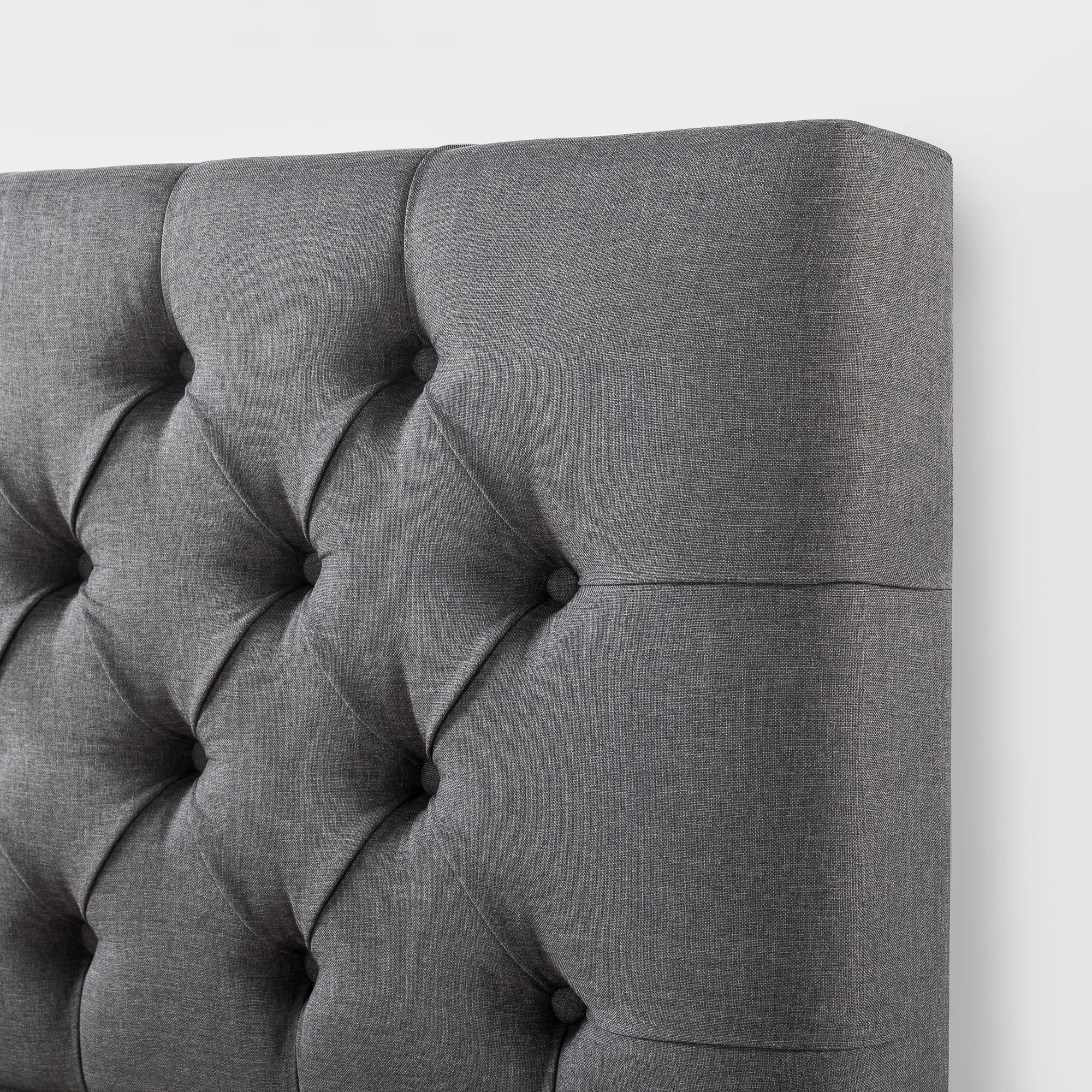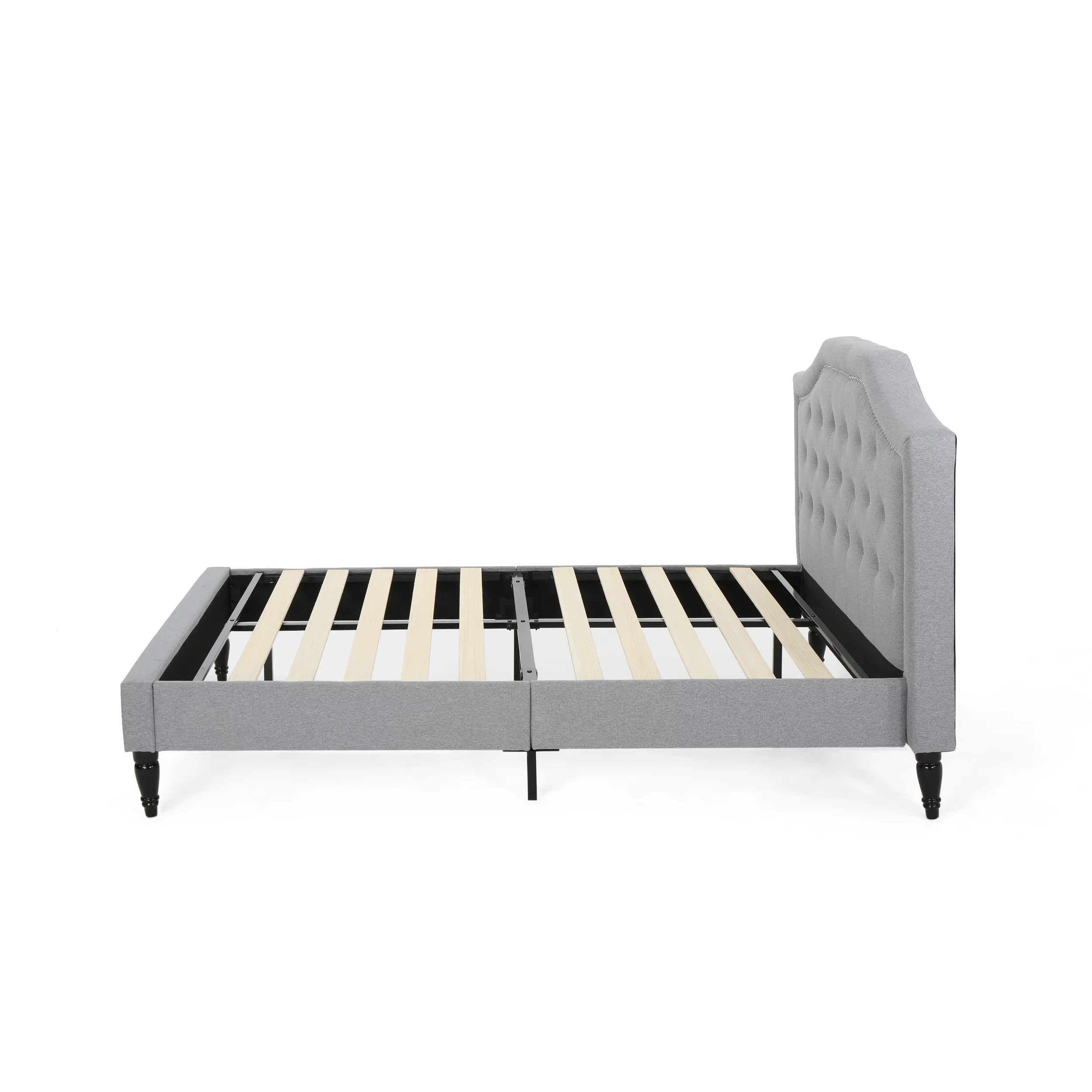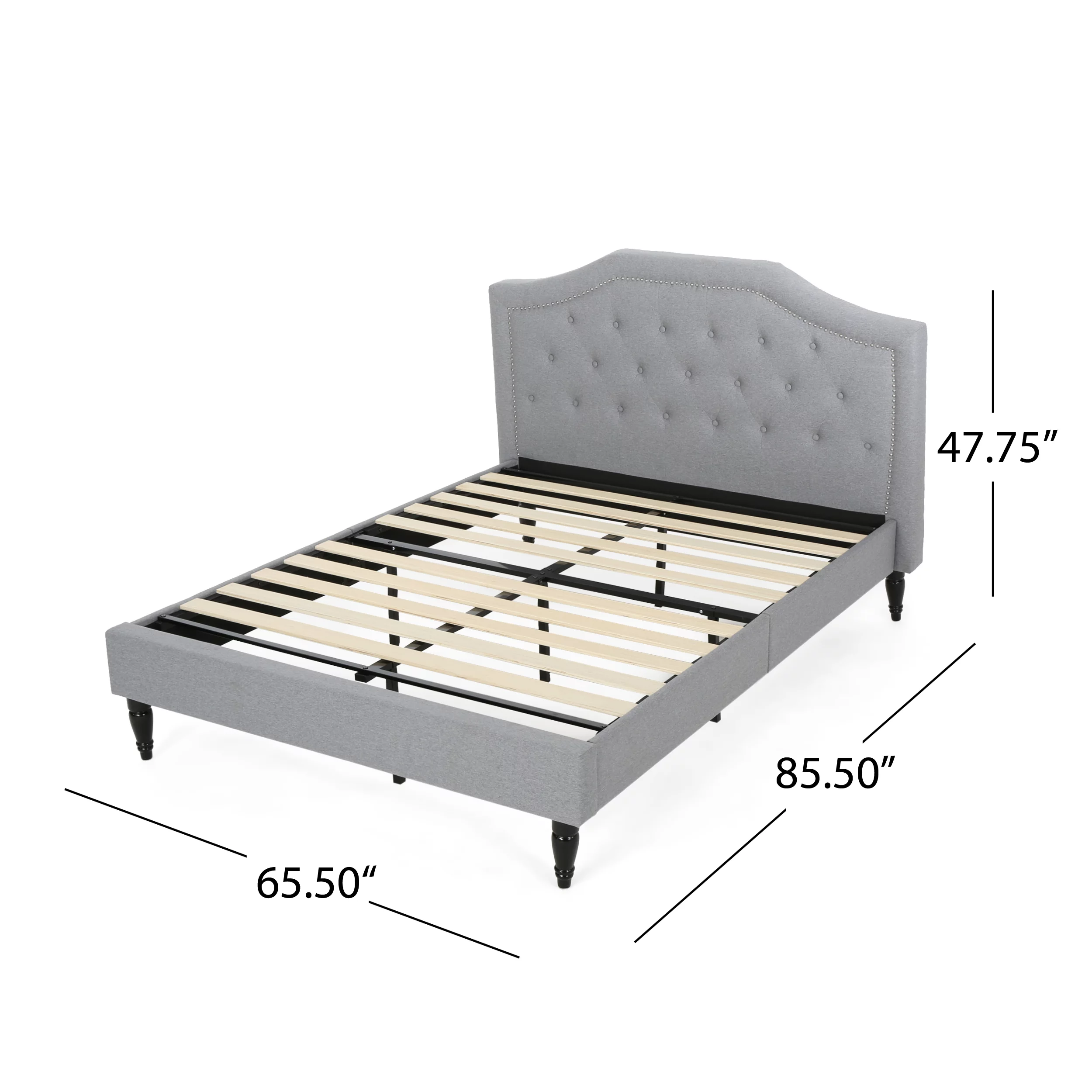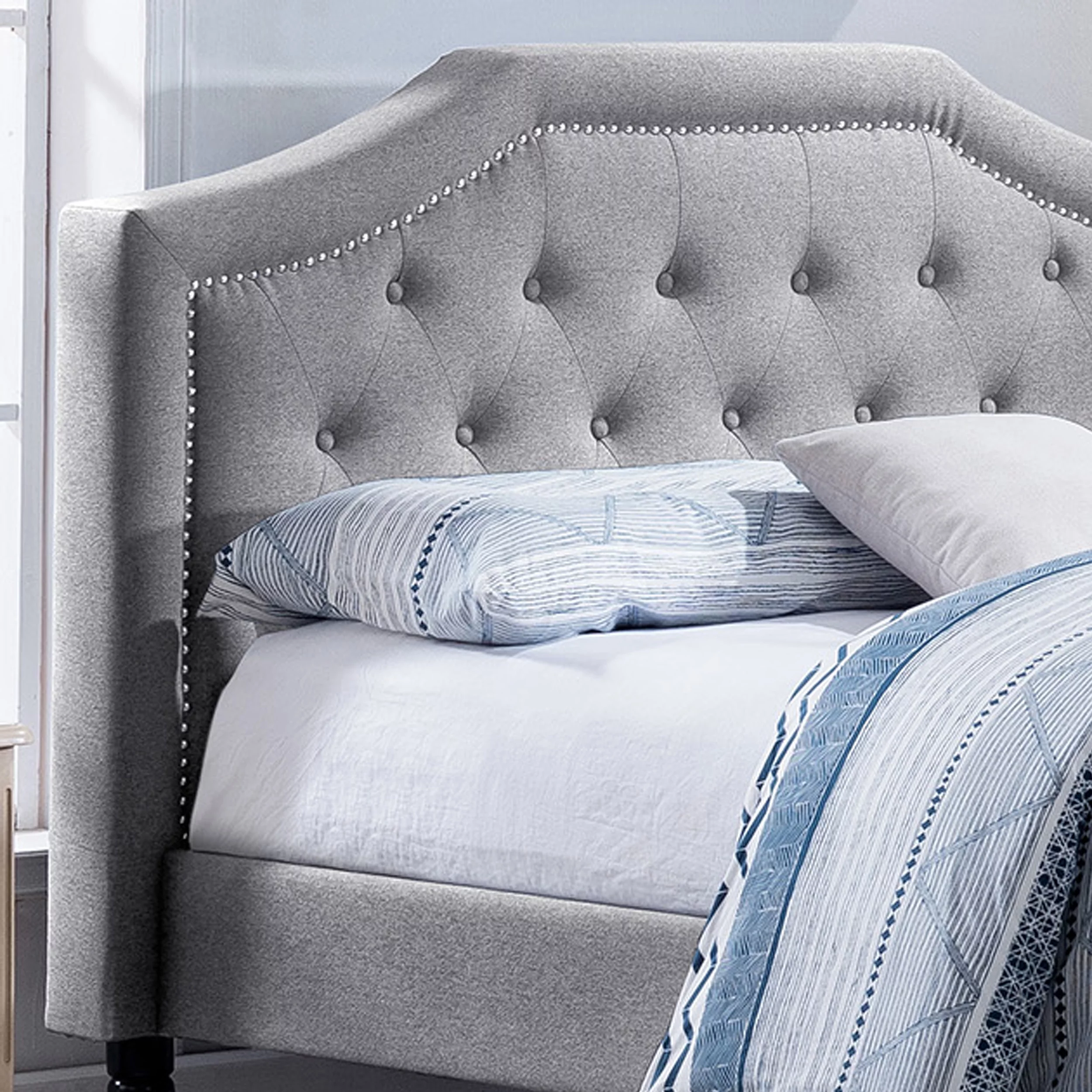GDF Studio Polaris Contemporary Fabric Tufted Bed with Nailhead Trim, Light Gray and Black Queen