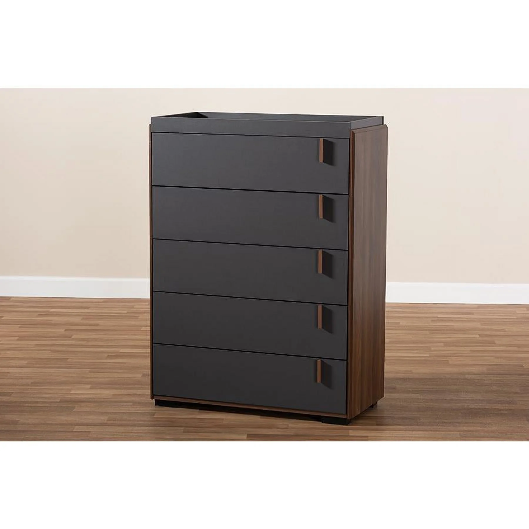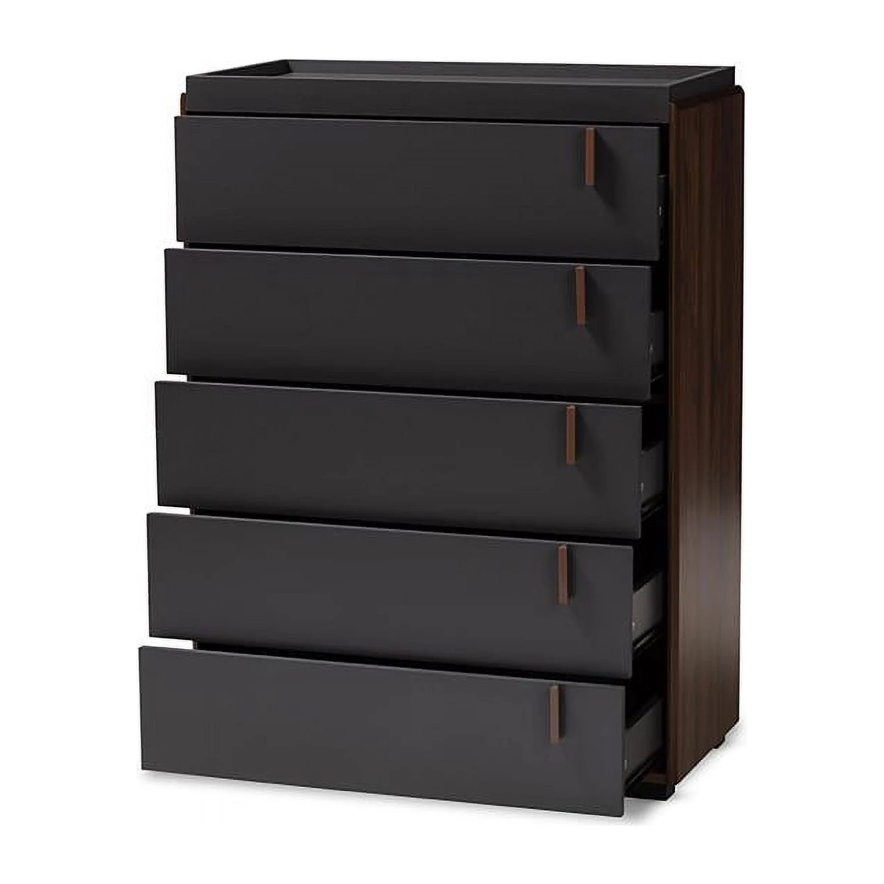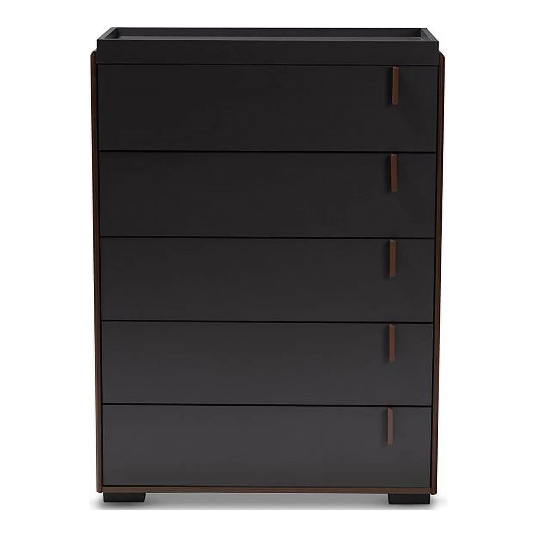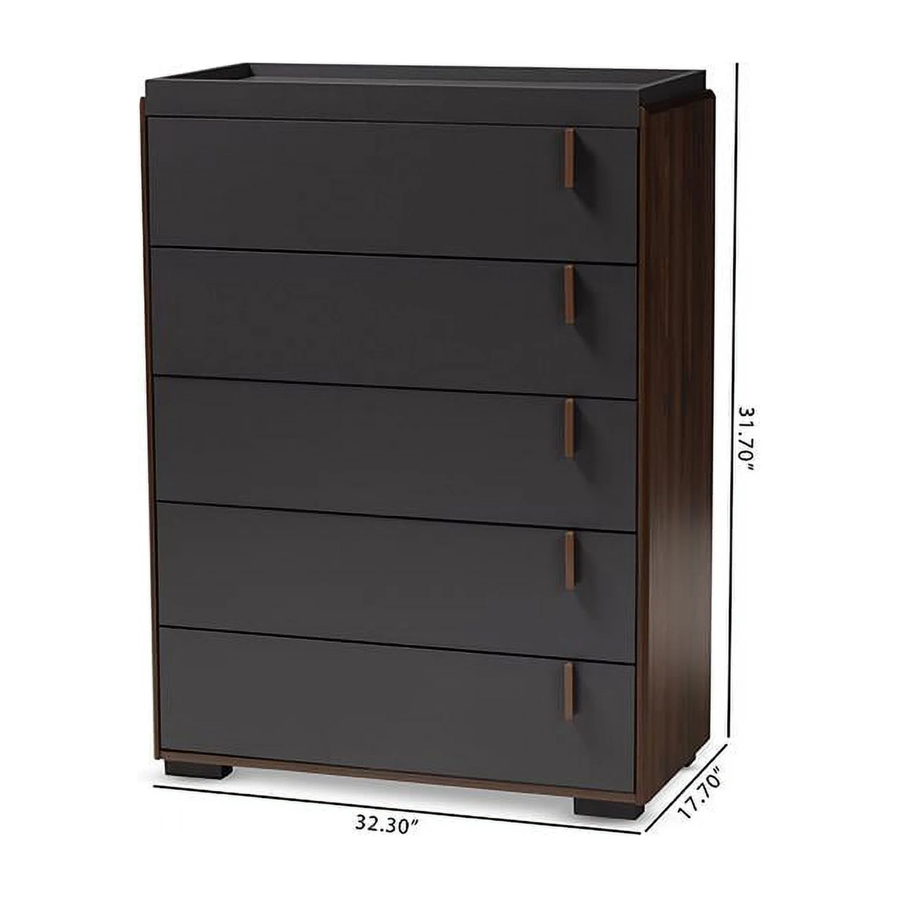 Baxton Studio Rikke Modern and Contemporary Two-Tone Gray and Walnut Finished Wood 5-Drawer Chest