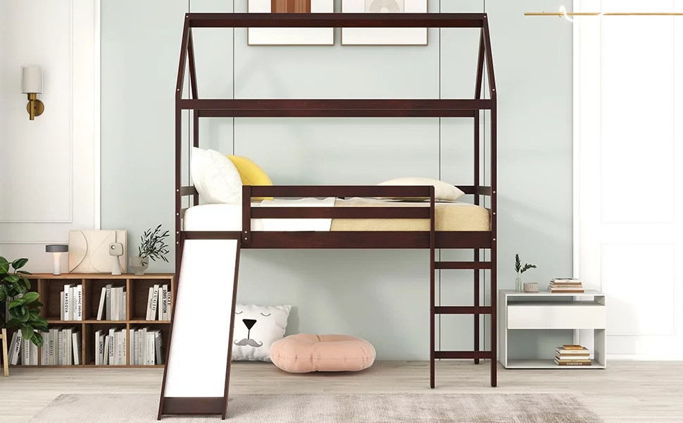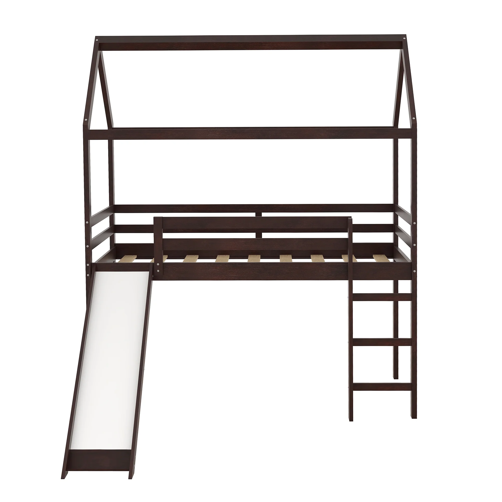 Twin Loft Bed with Slide, House Bed with Slide,Gray(OLD SKU :WF286245AAP)