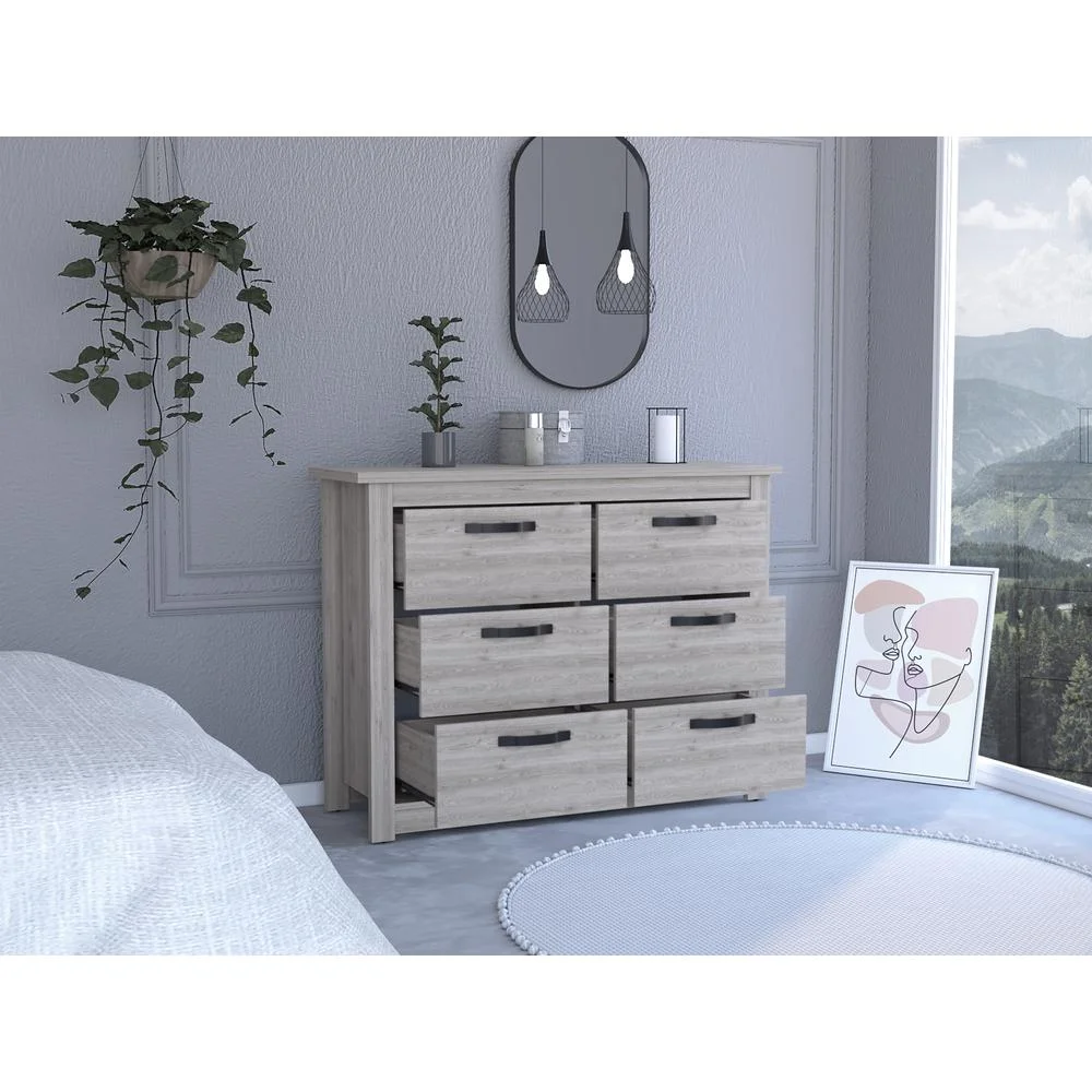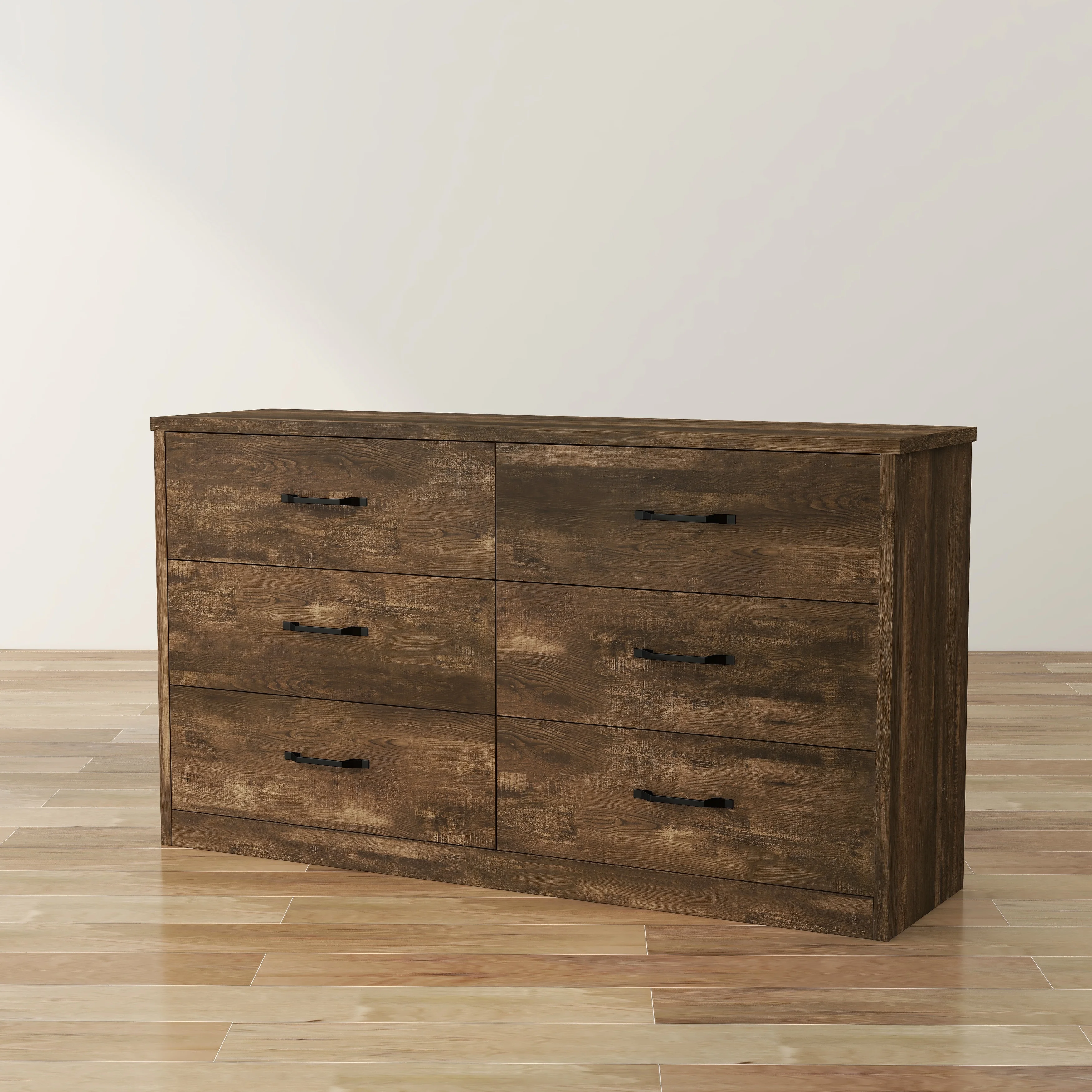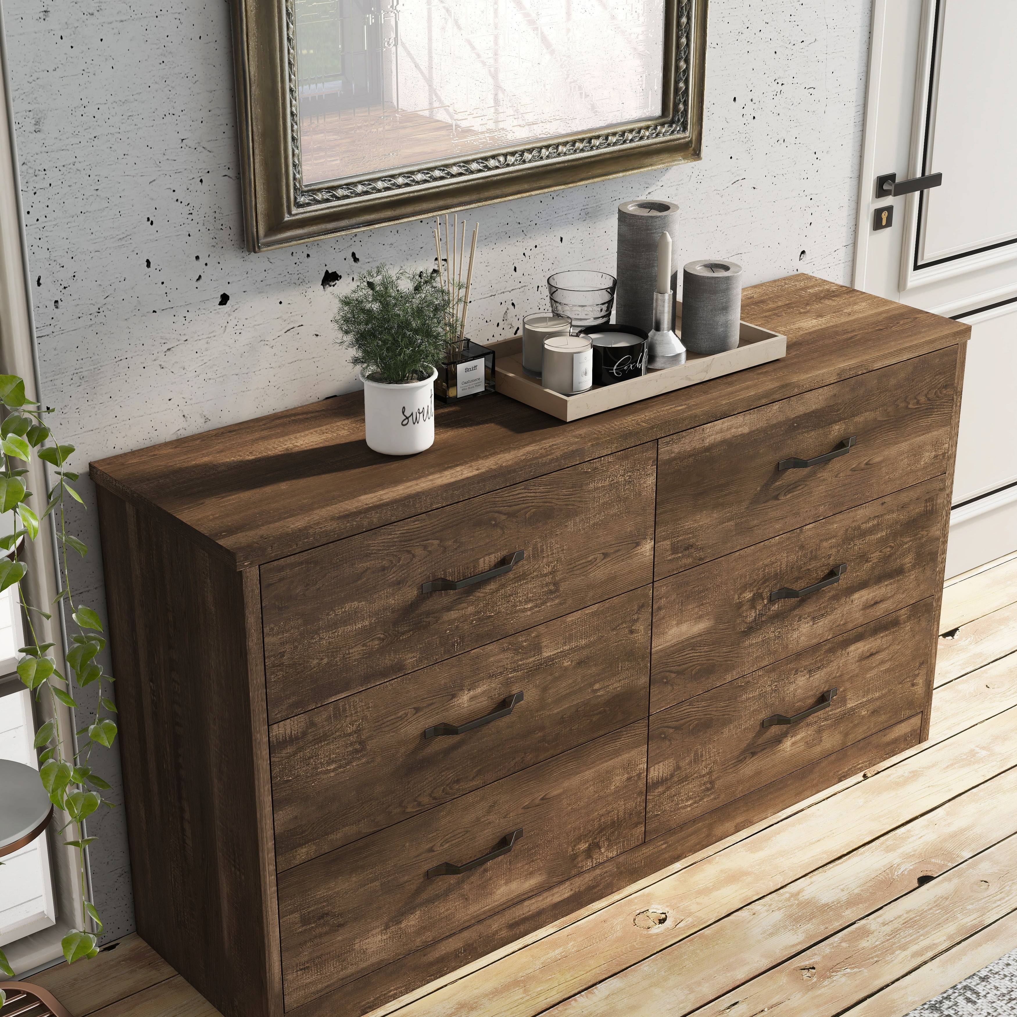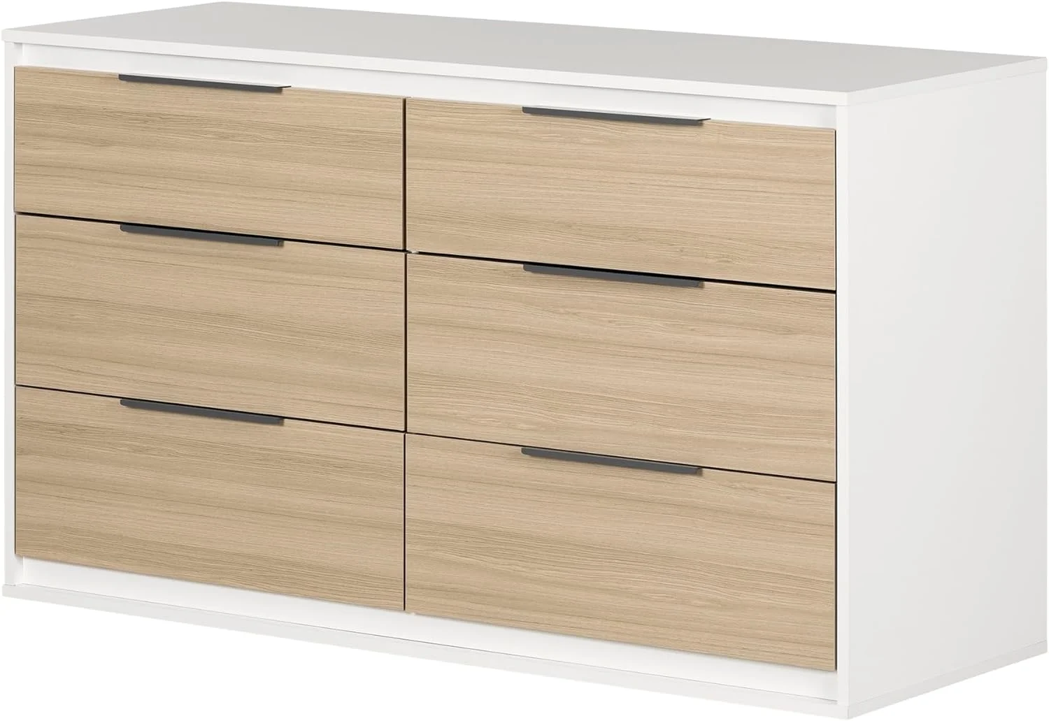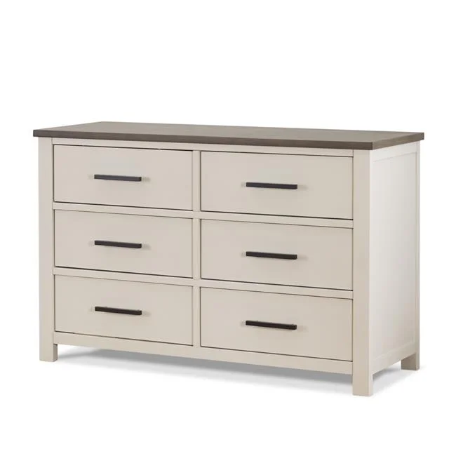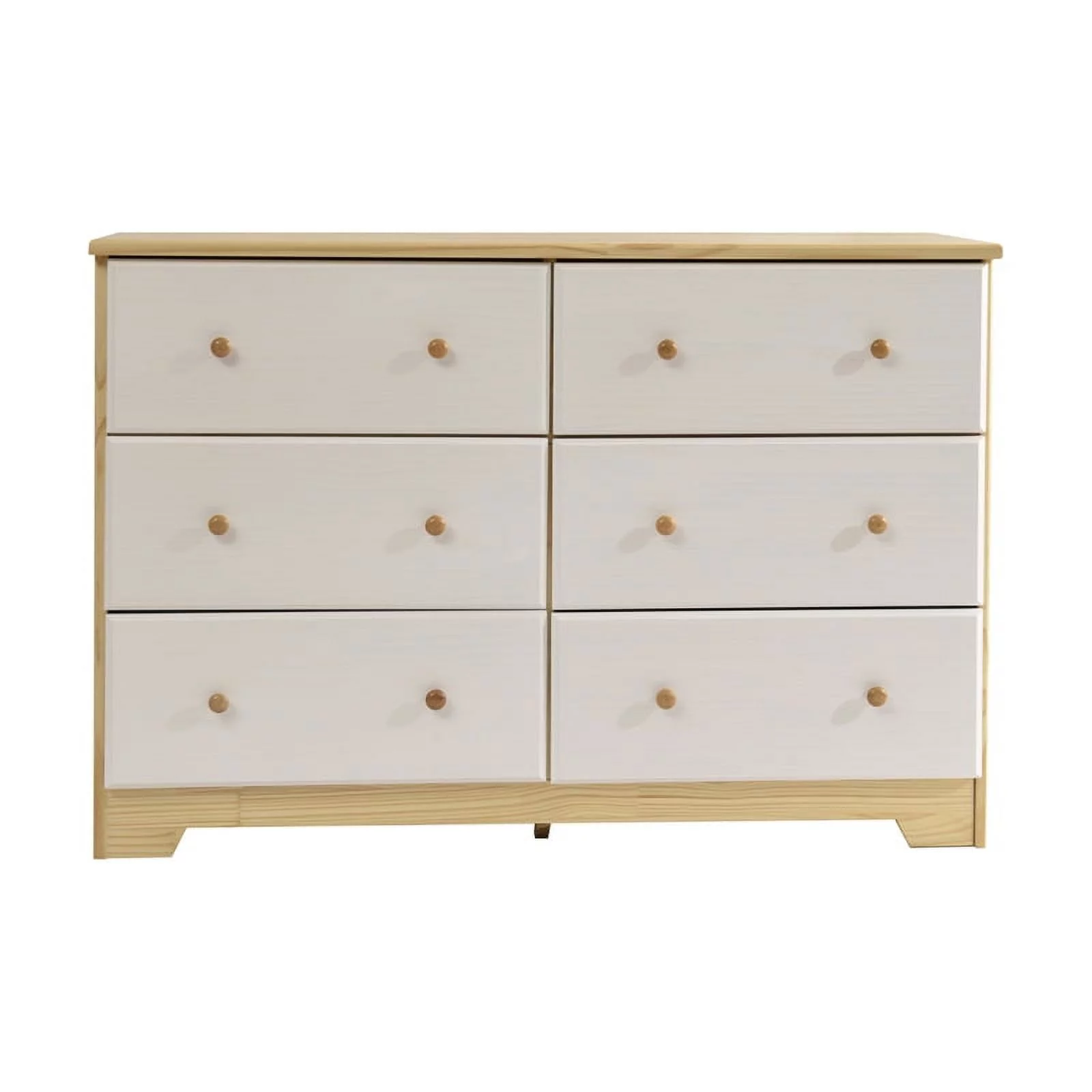 Better Home Products Solid Pine Wood 6 Drawer Double Dresser in Natural & White.