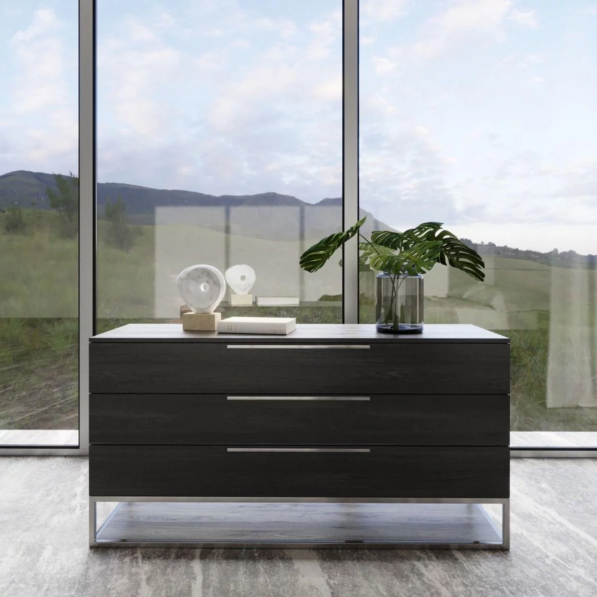 Elm Grey & Stainless Steel 3 Drawers Dresser Modrest Heloise VIG Contemporary