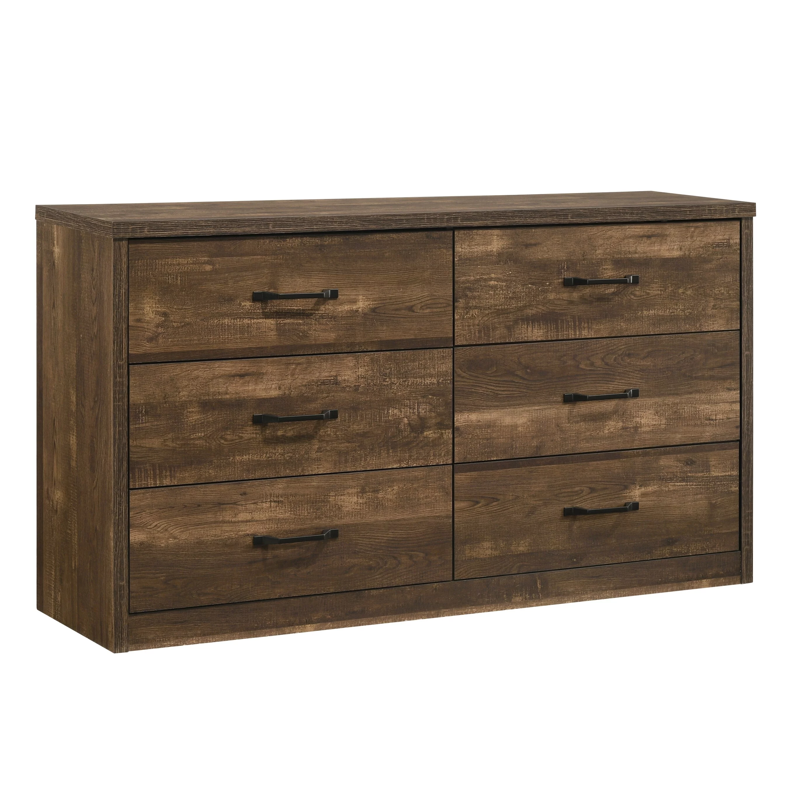 Furniture of America Greer Rustic 56-inch Wide 6-Drawer Walnut Dresser with USB Ports by