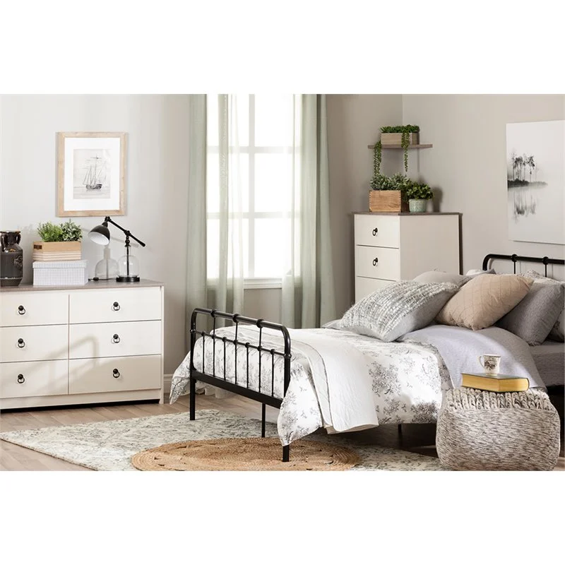 South Shore Plenny Coastal 5-Drawers Dresser White Wash and Weathered Oak