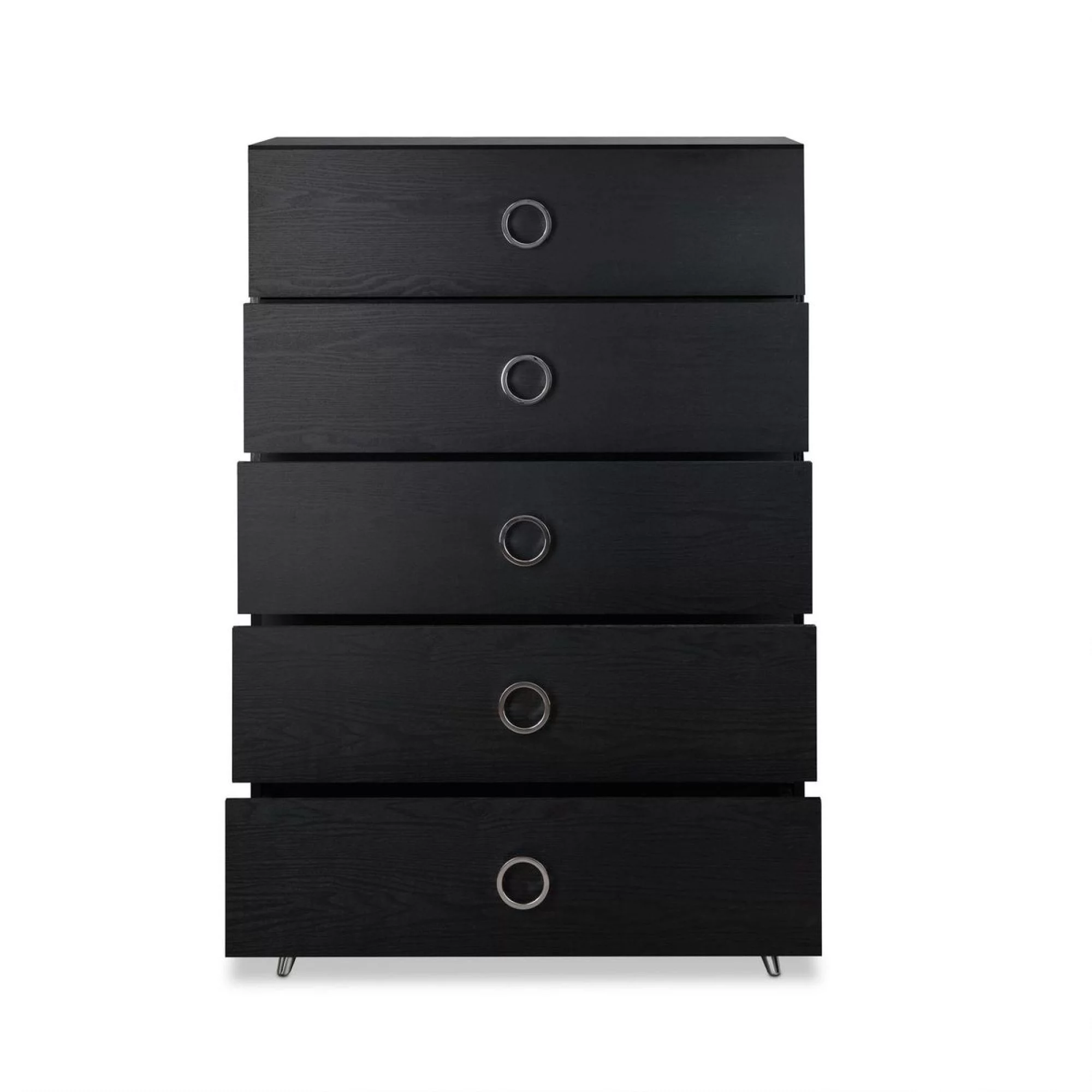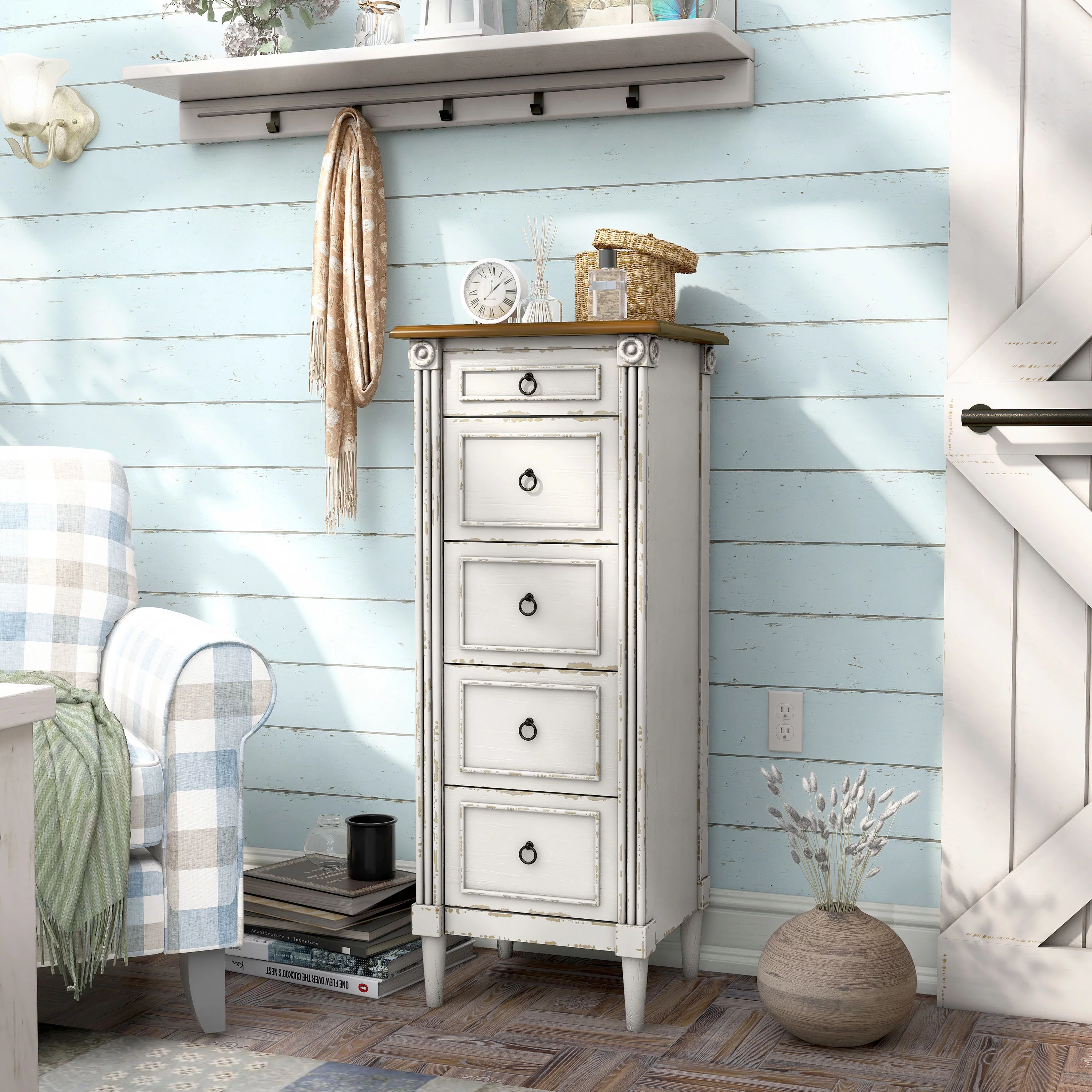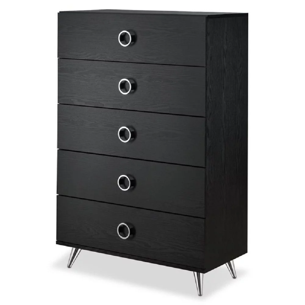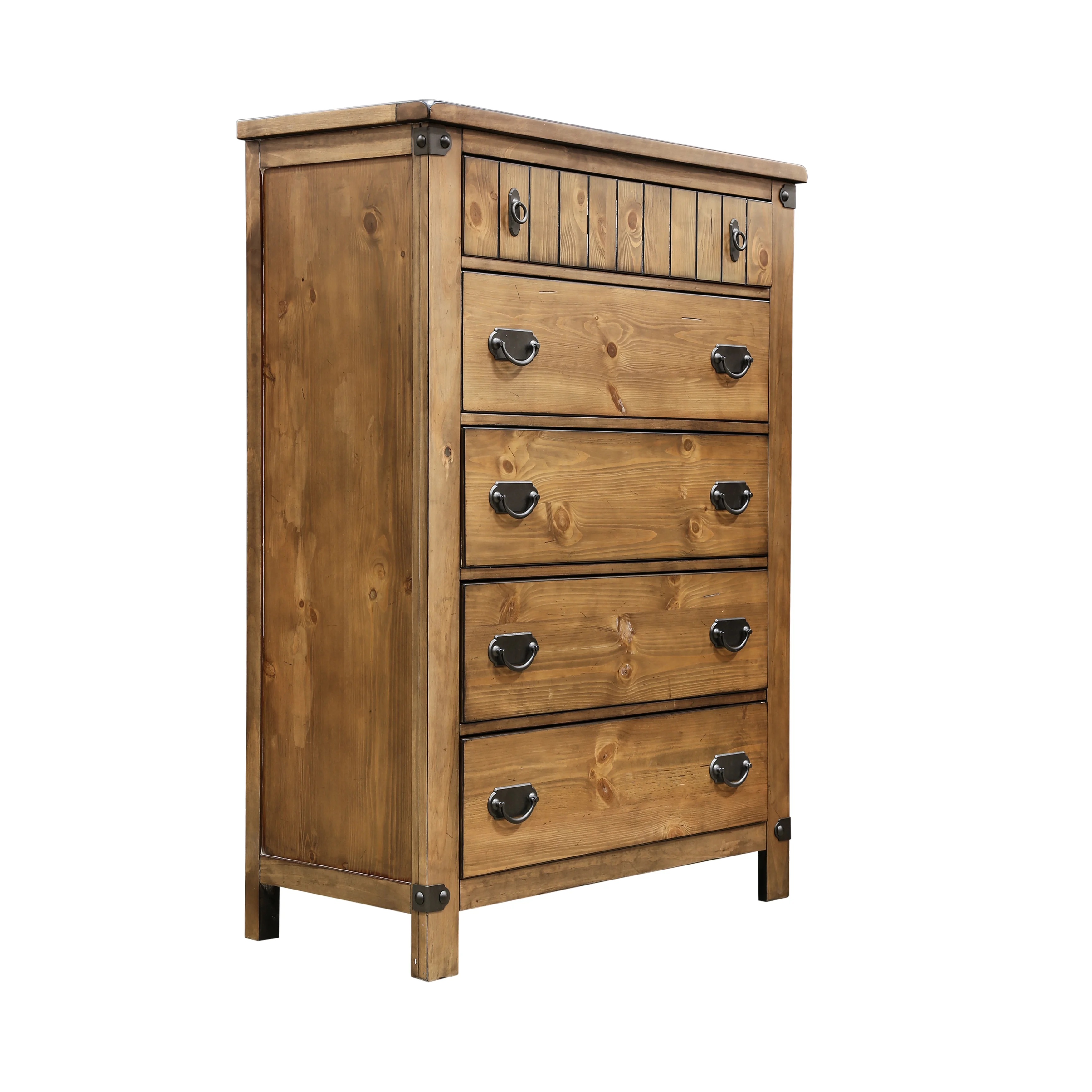 Moira Rustic Wooden 5-Drawer Chest with Metal Glides, Weathered Elm