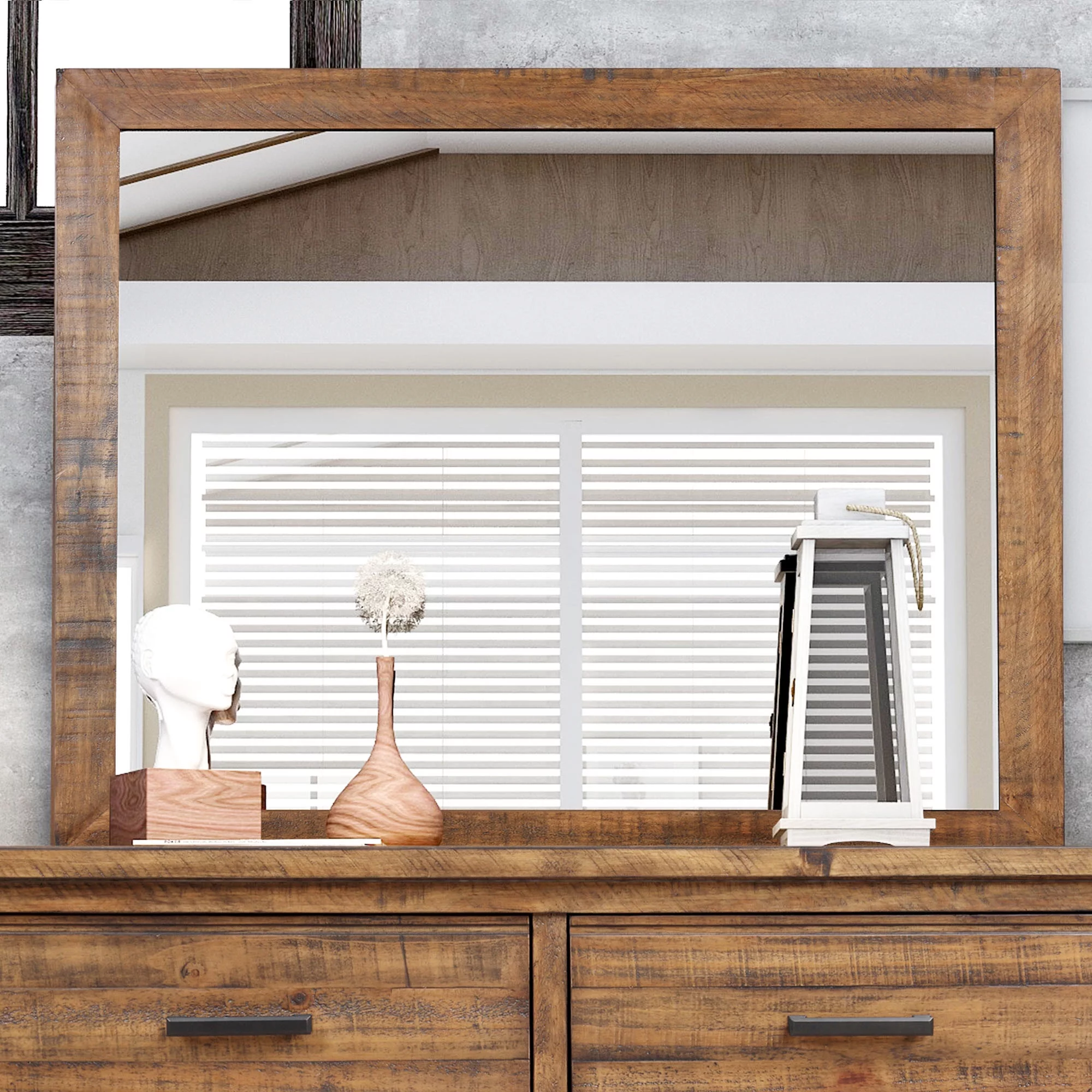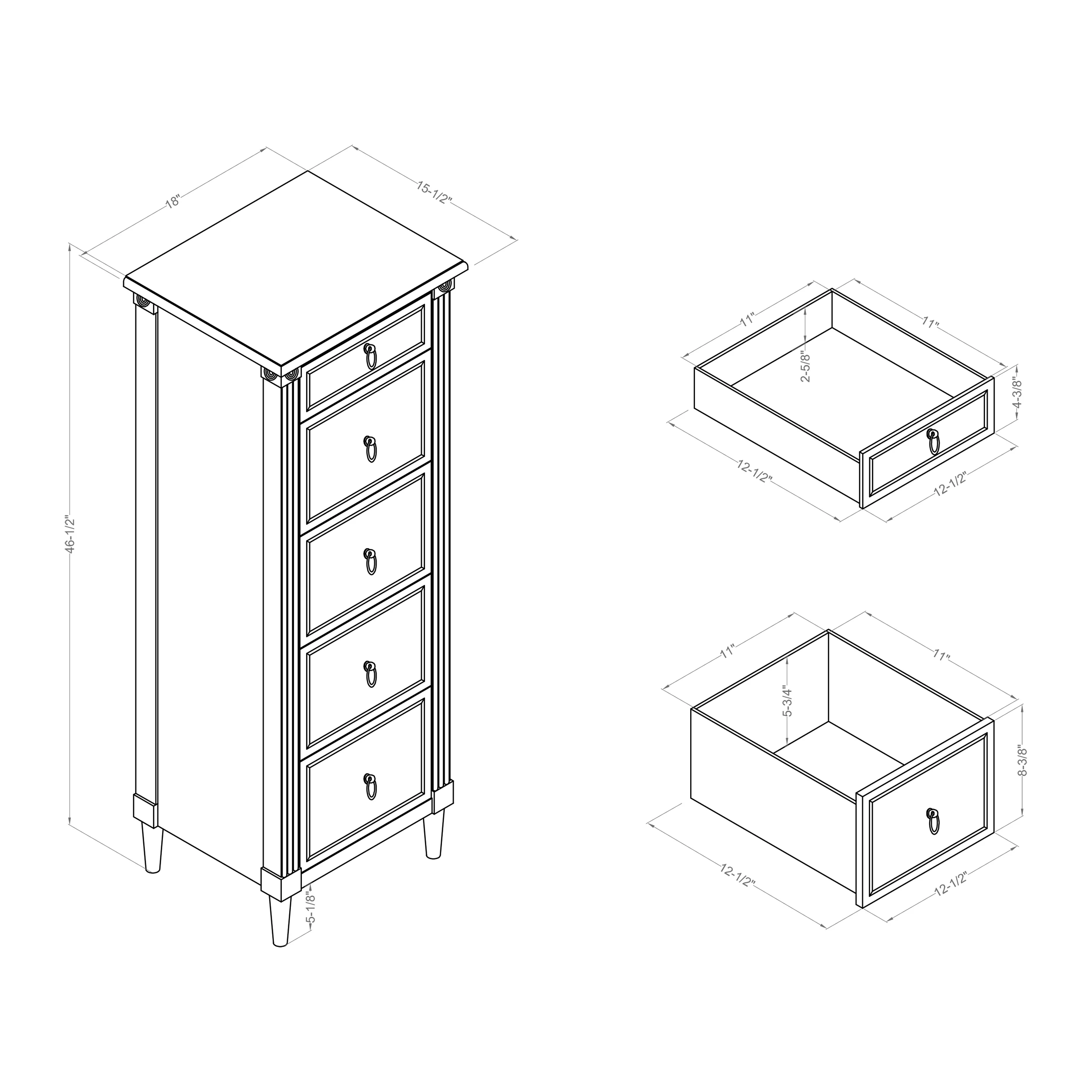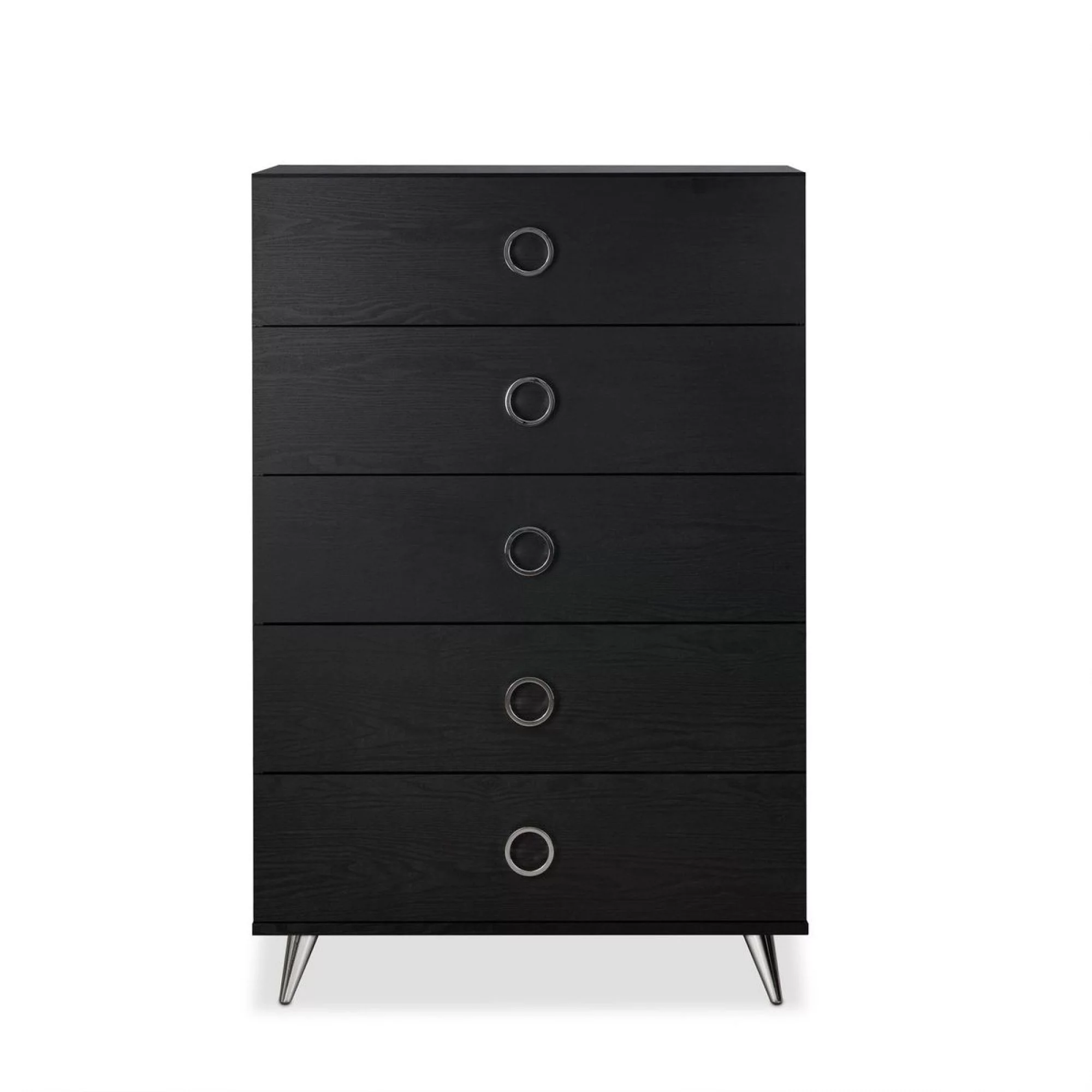 Moira Rustic Wooden 5-Drawer Chest with Metal Glides, Weathered Elm