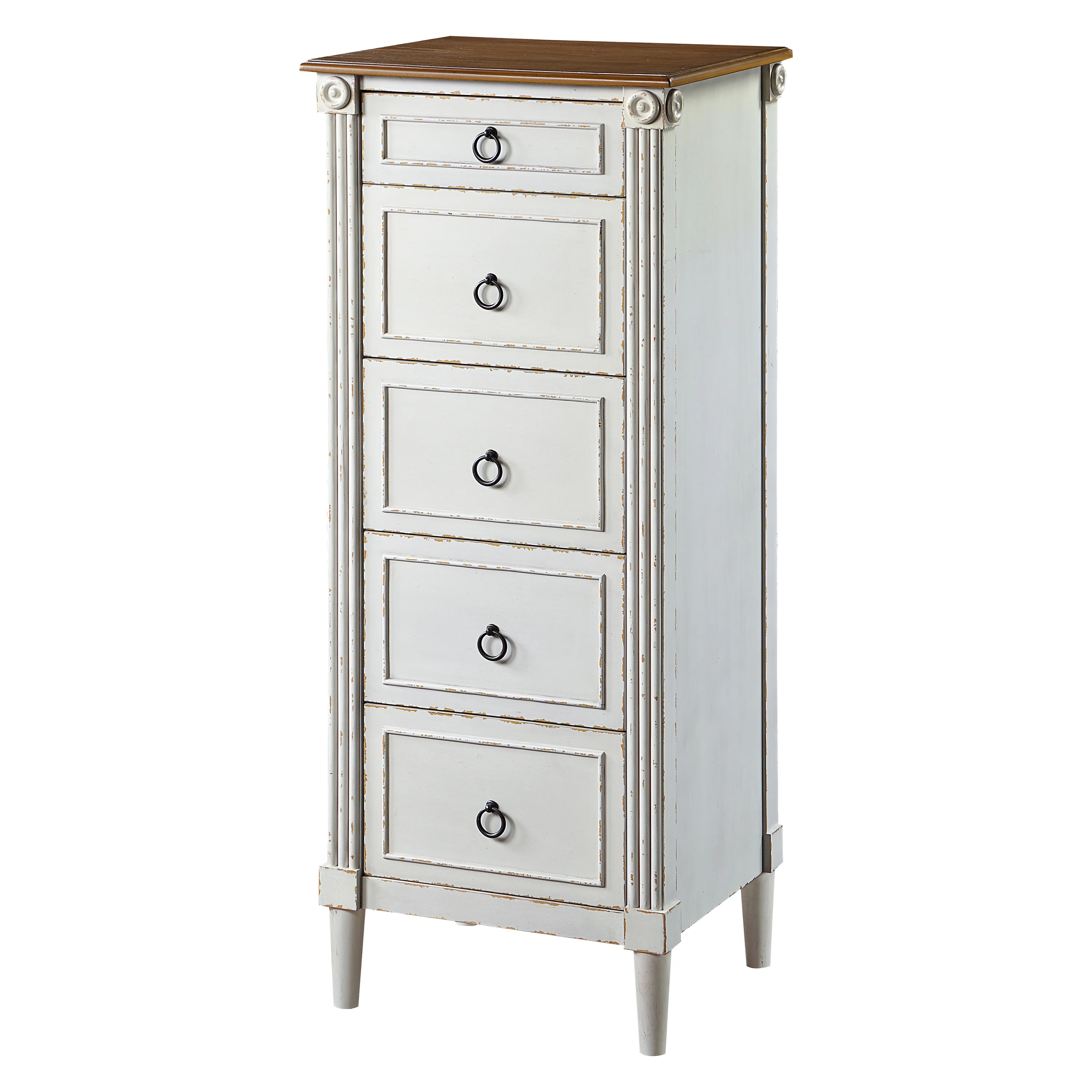 24/7 Shop At Home Elm Solid Wood 5-Drawer Chest Dresser, Antique White