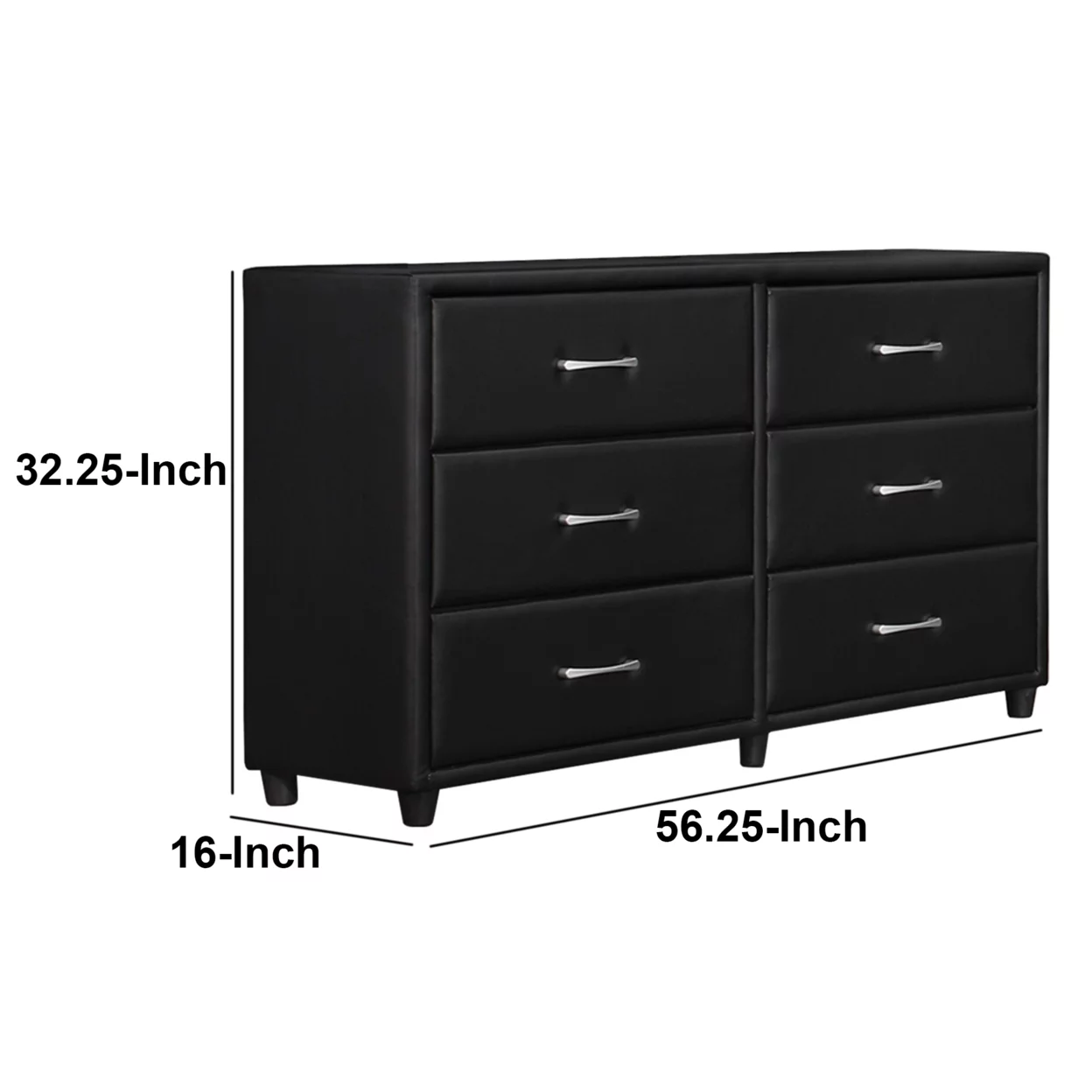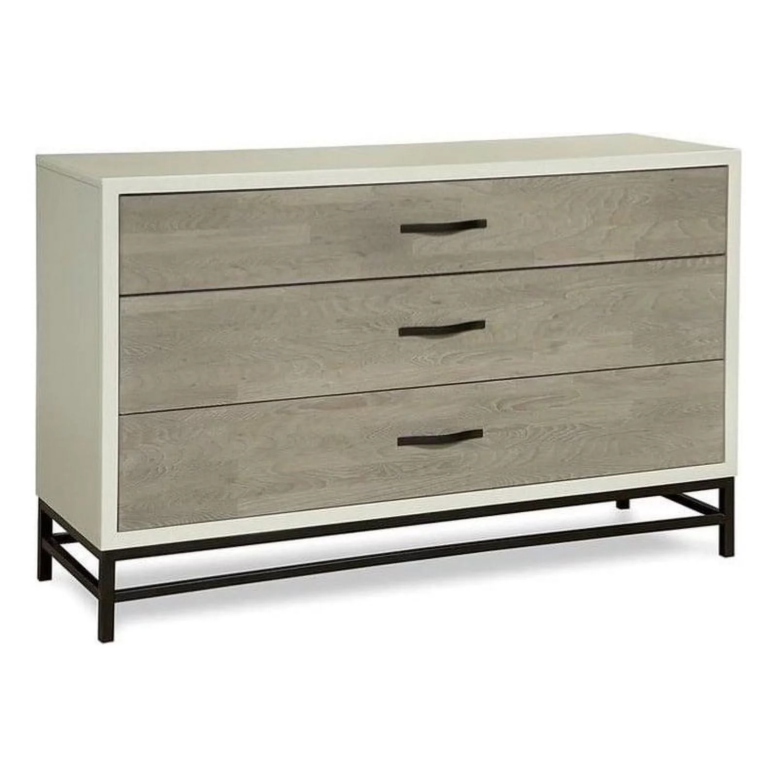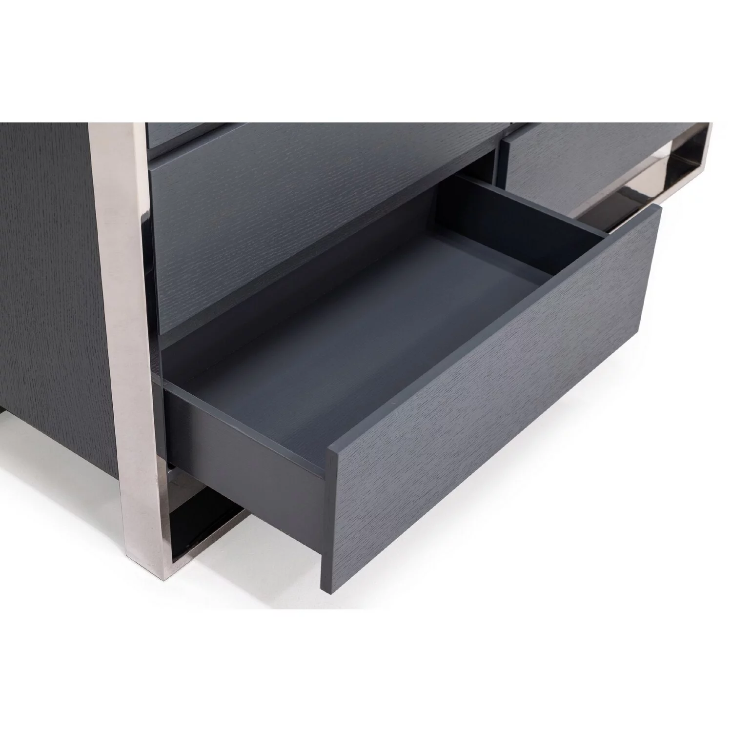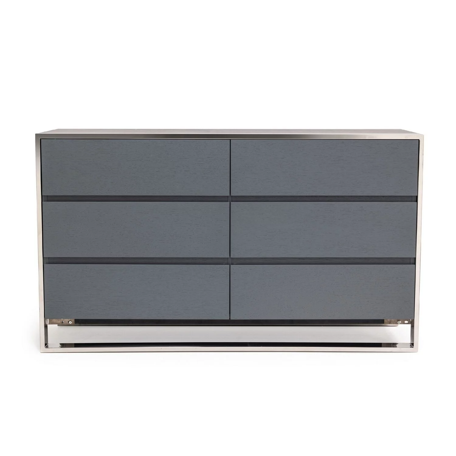 Benjara Cid Lue 65 Inch Dresser Chest, Gray Elm Veneer, 6 Drawers, Stainless Steel