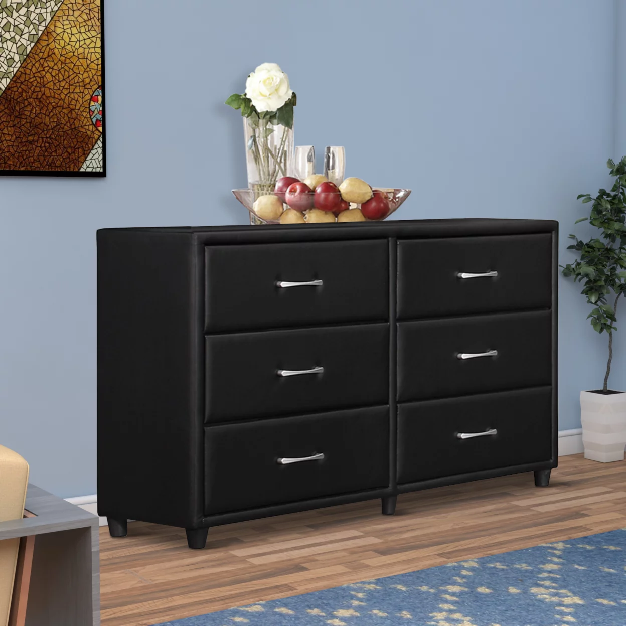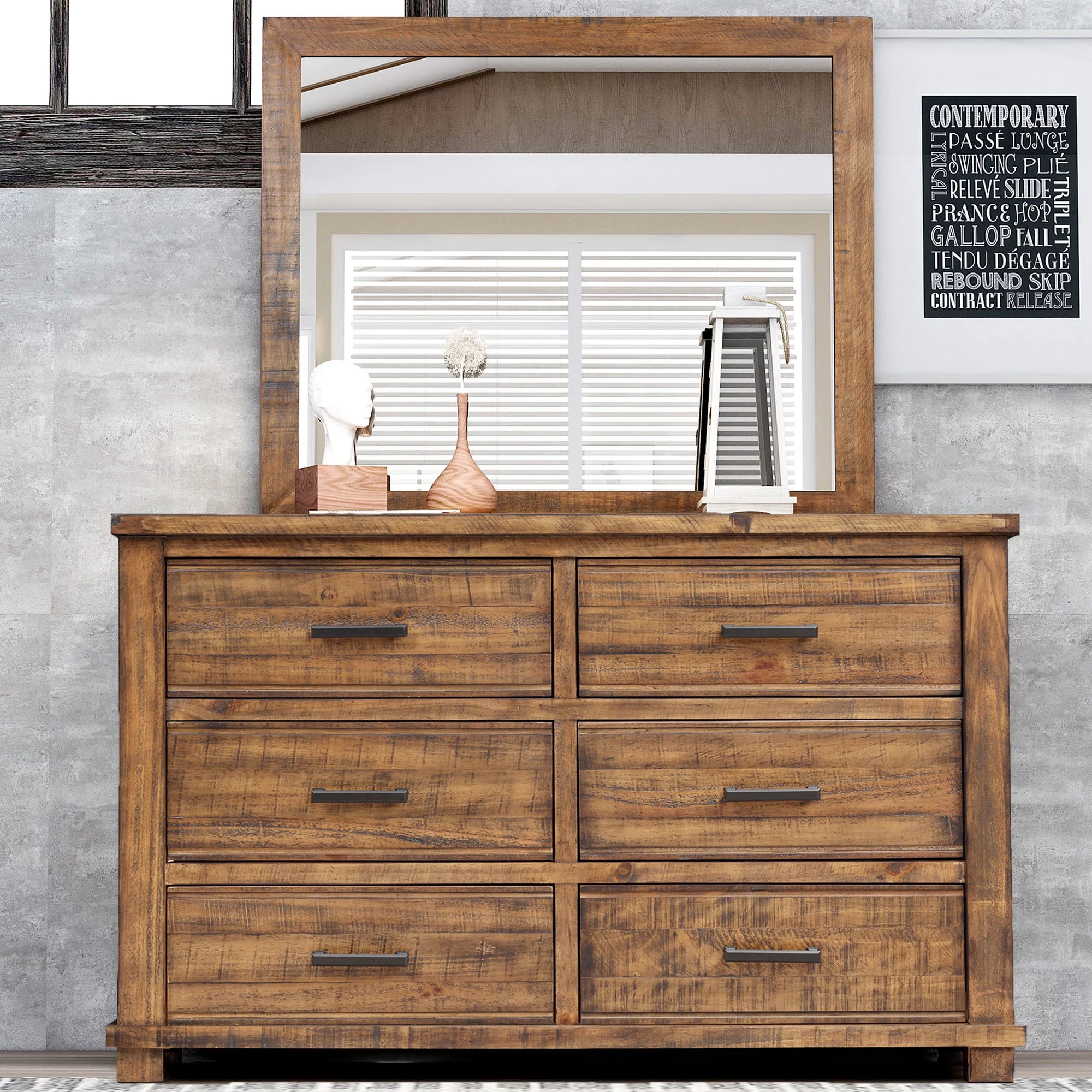 Modrest Asus 6-Drawer Self Closing Modern MDF Wood Dresser in Elm/Matte Gray