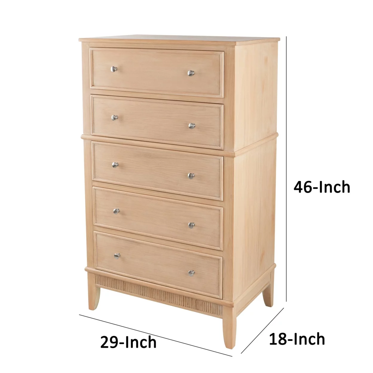 46 Inch Tall Dresser Chest, Pine Wood, 5 Drawers, Textured Natural Brown- Saltoro Sherpi