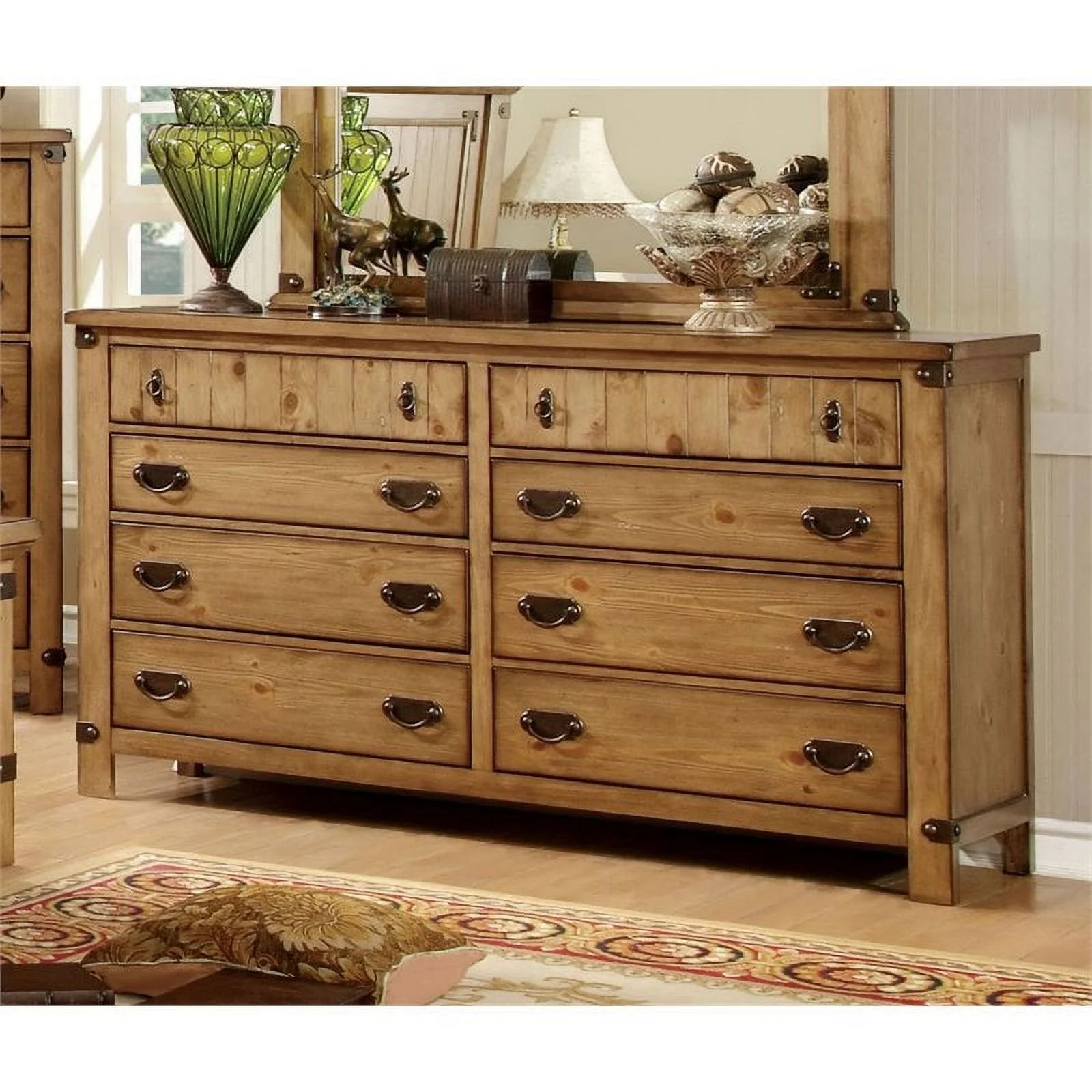 Furniture of America Sesco Cottage Wood 8-Drawer Dresser in Brown Elm