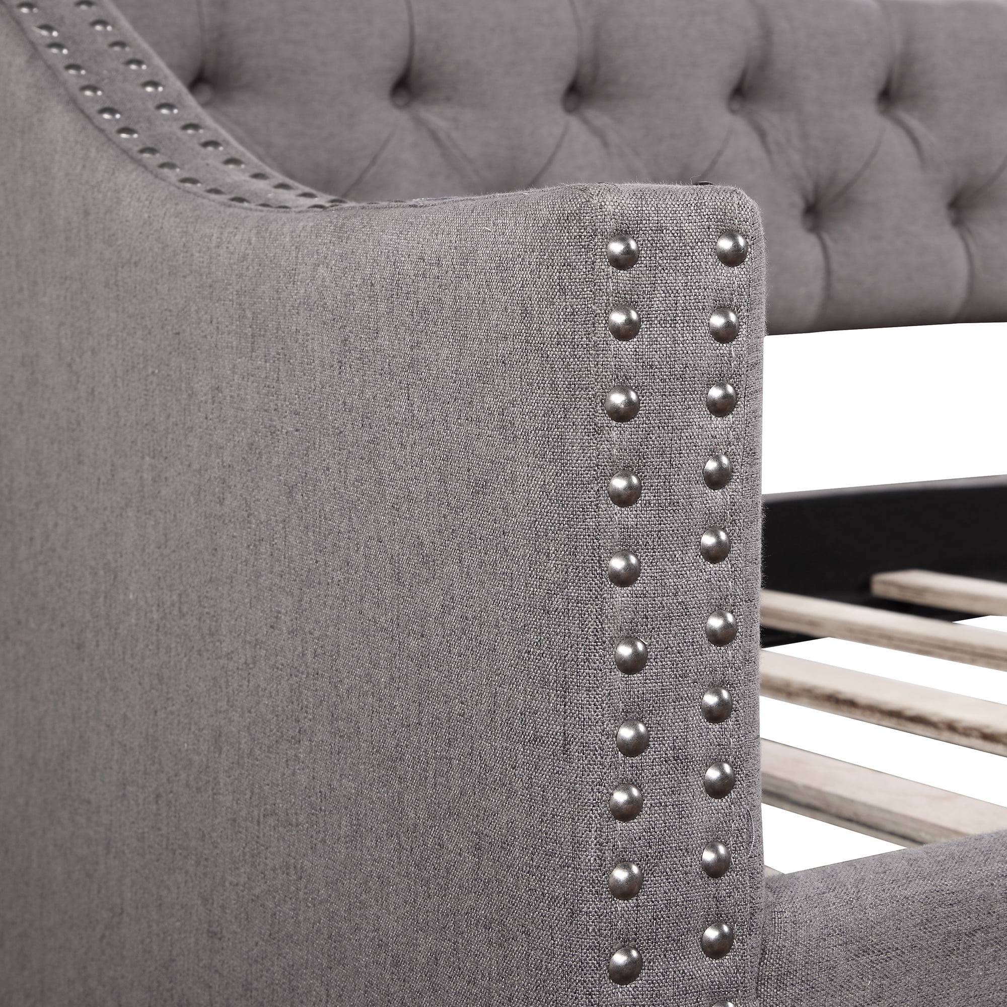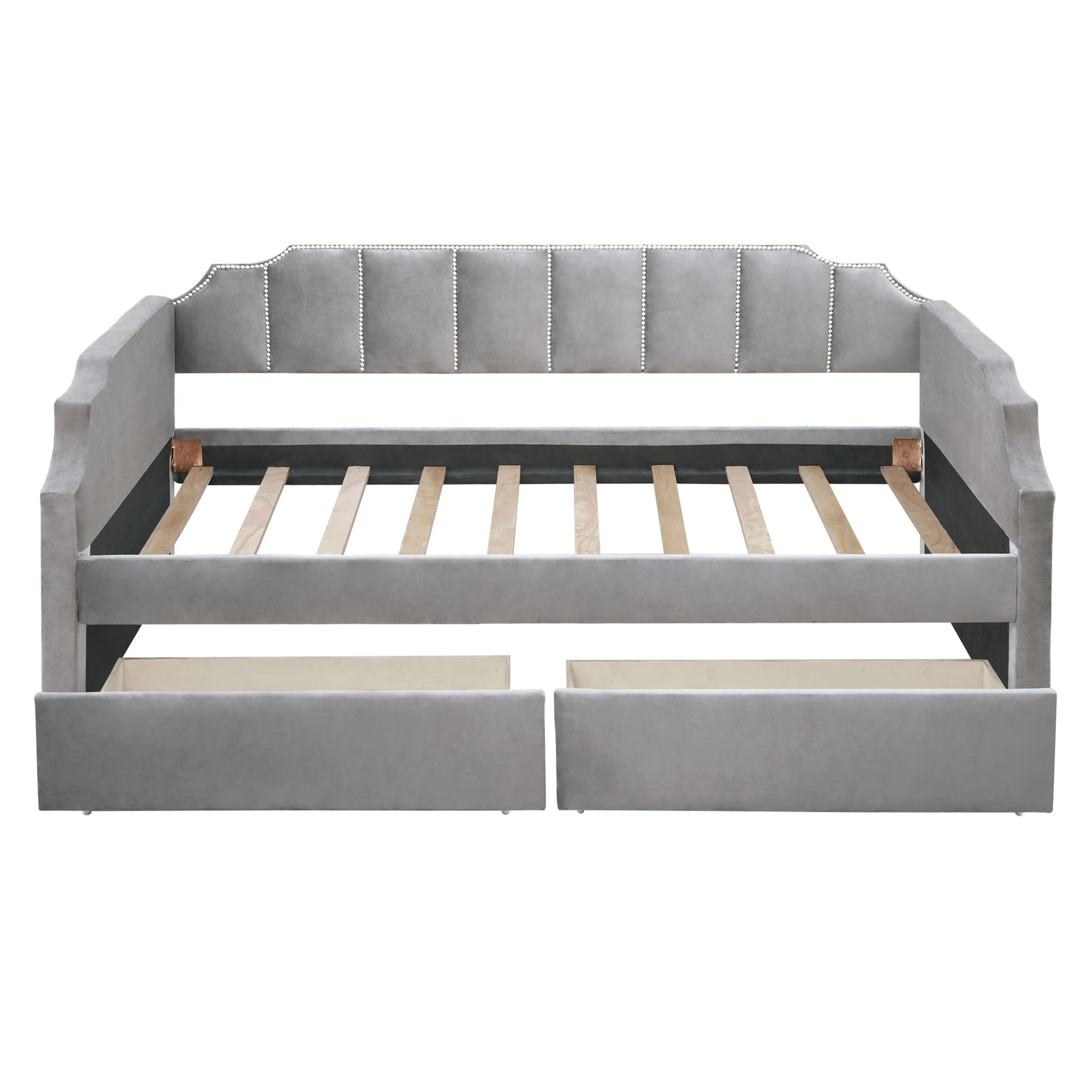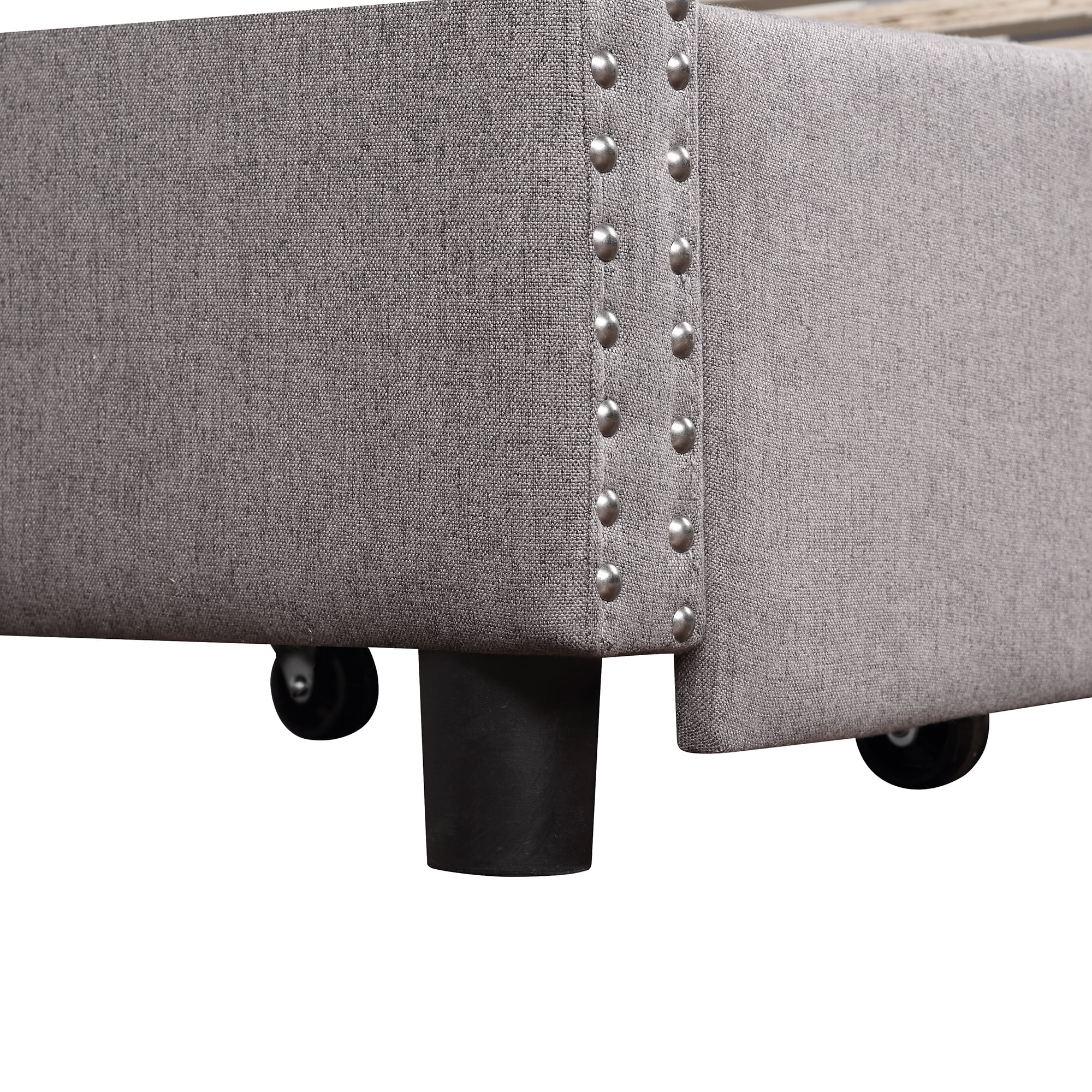Gray Twin Size Upholstered Daybed with Two Drawers, Wood Slat Support