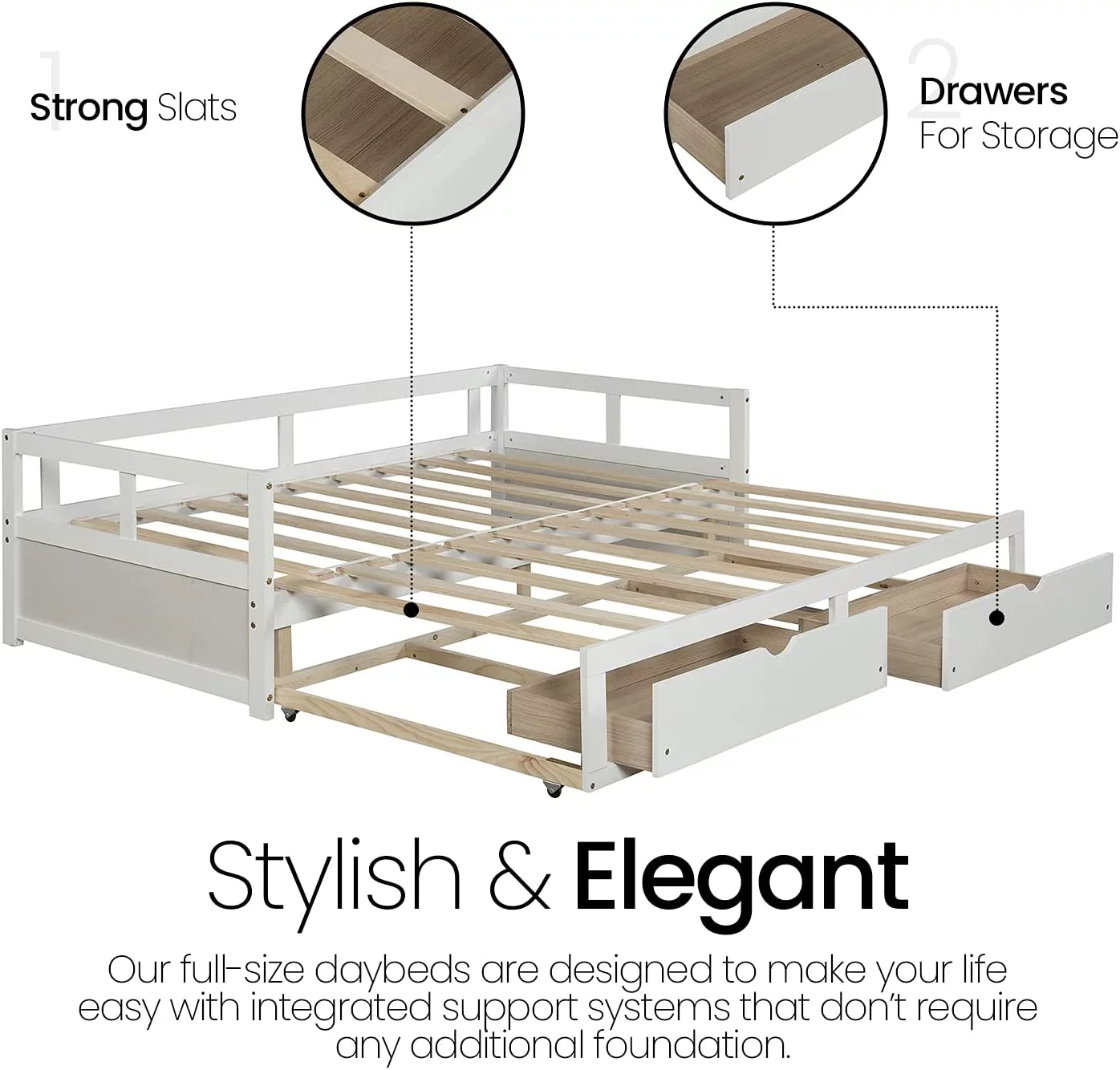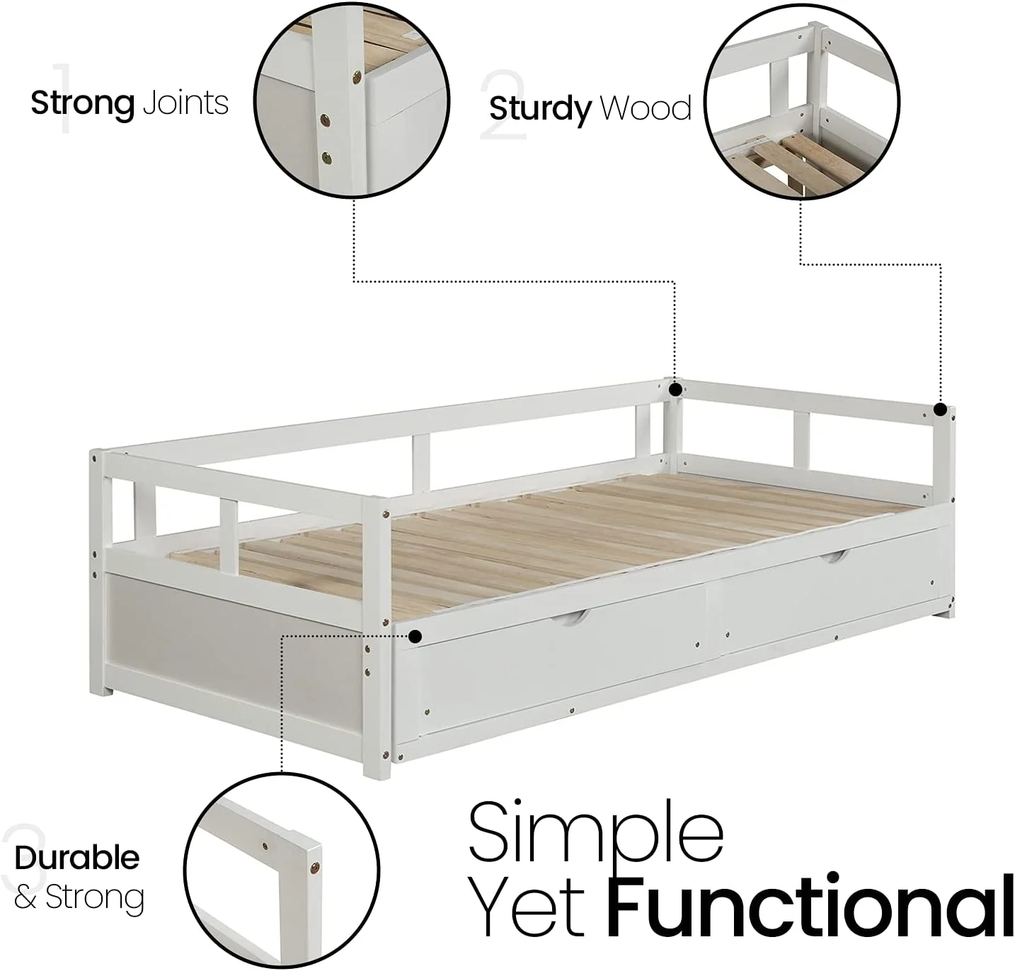 Abanopi Upholstered daybed Twin Size with Two Drawers and Wood Slat Suppot ,Beige