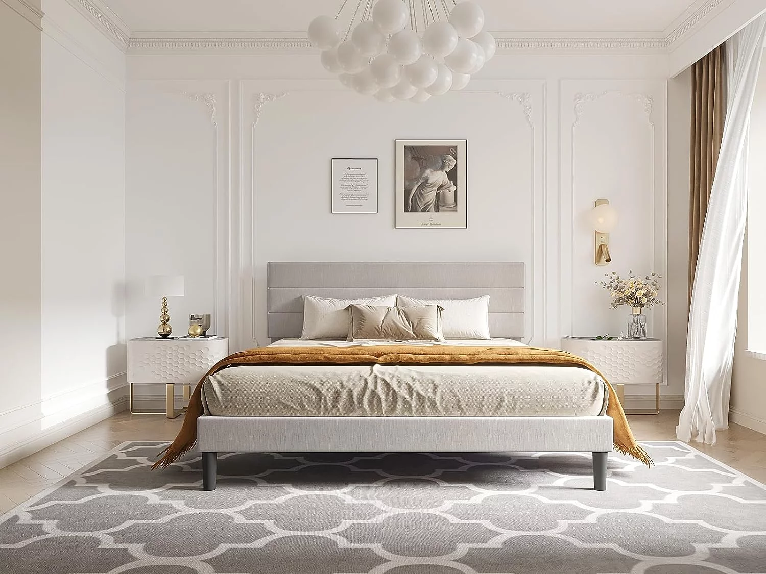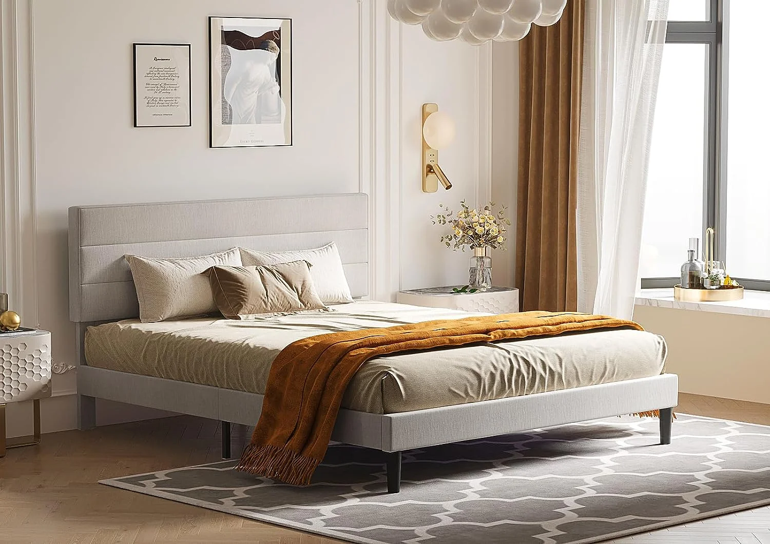 Isla Panel Bed with Low Profile Rubberwood Frame, Taupe Brown - King Size