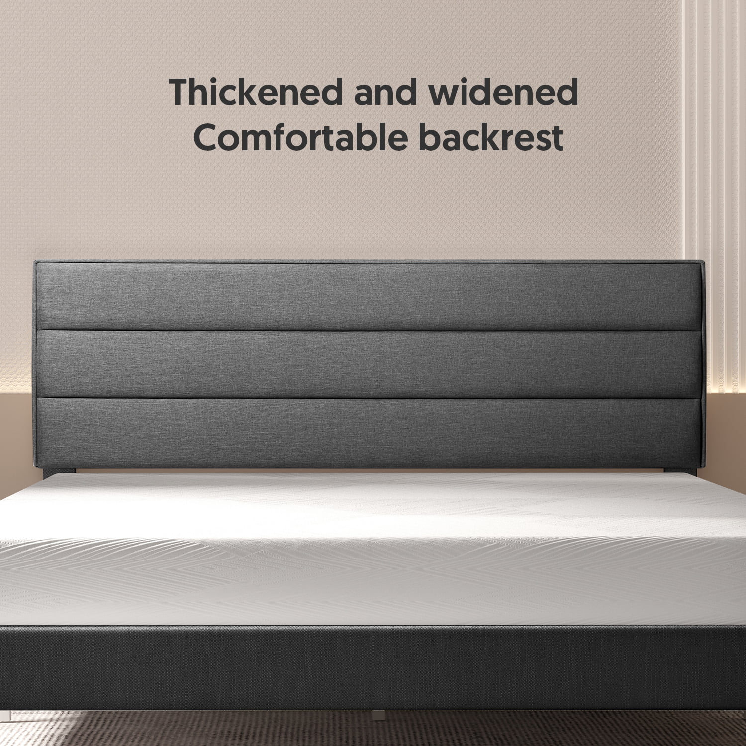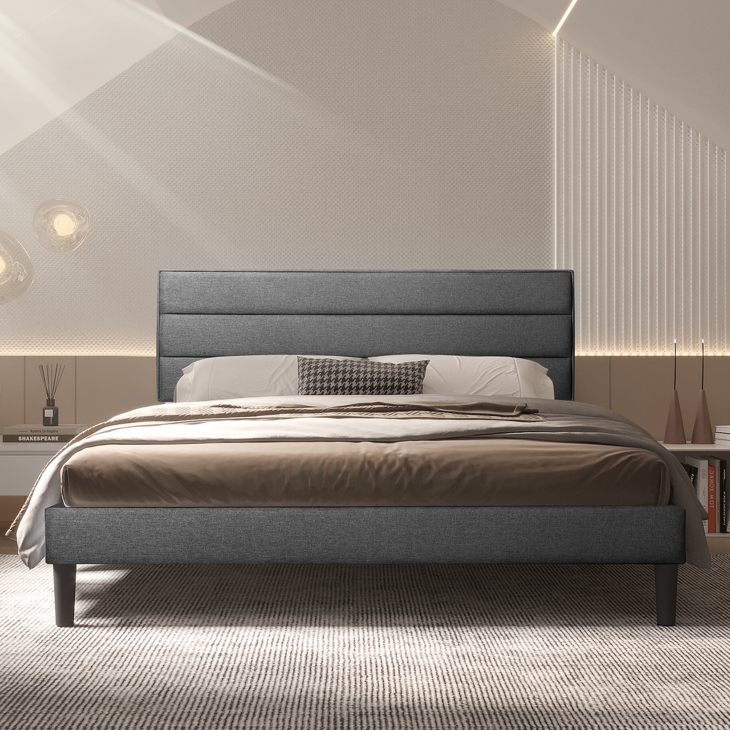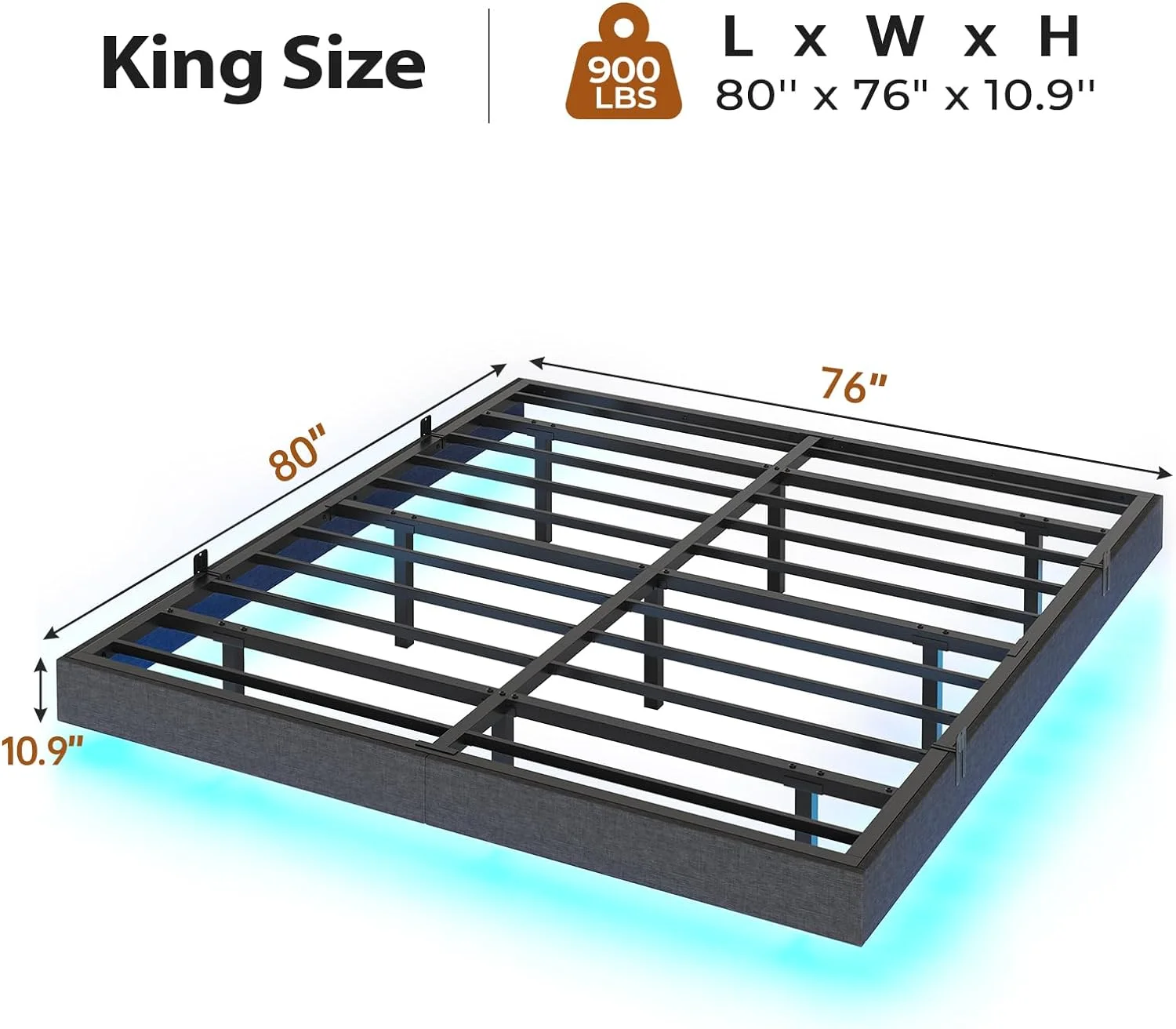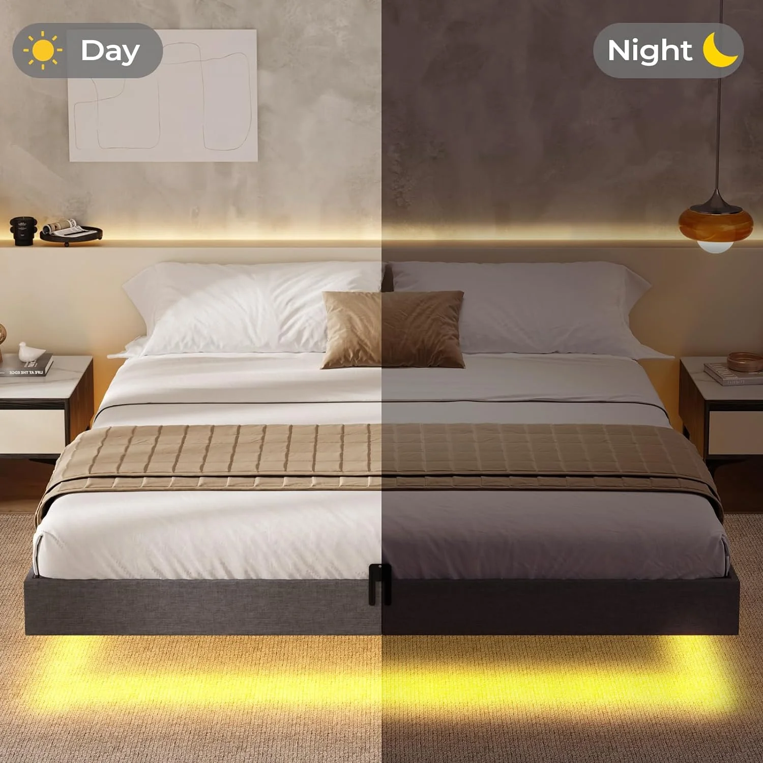 Floating Bed Frames King Size Meral Platform Bed with LED Lights&Linen Fabric, No Box Spring Needed, Dark Gray