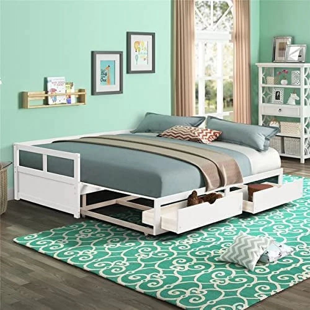 Dcenta Upholstered daybed Twin Size with Two Drawers and Wood Slat Suppot ,Beige