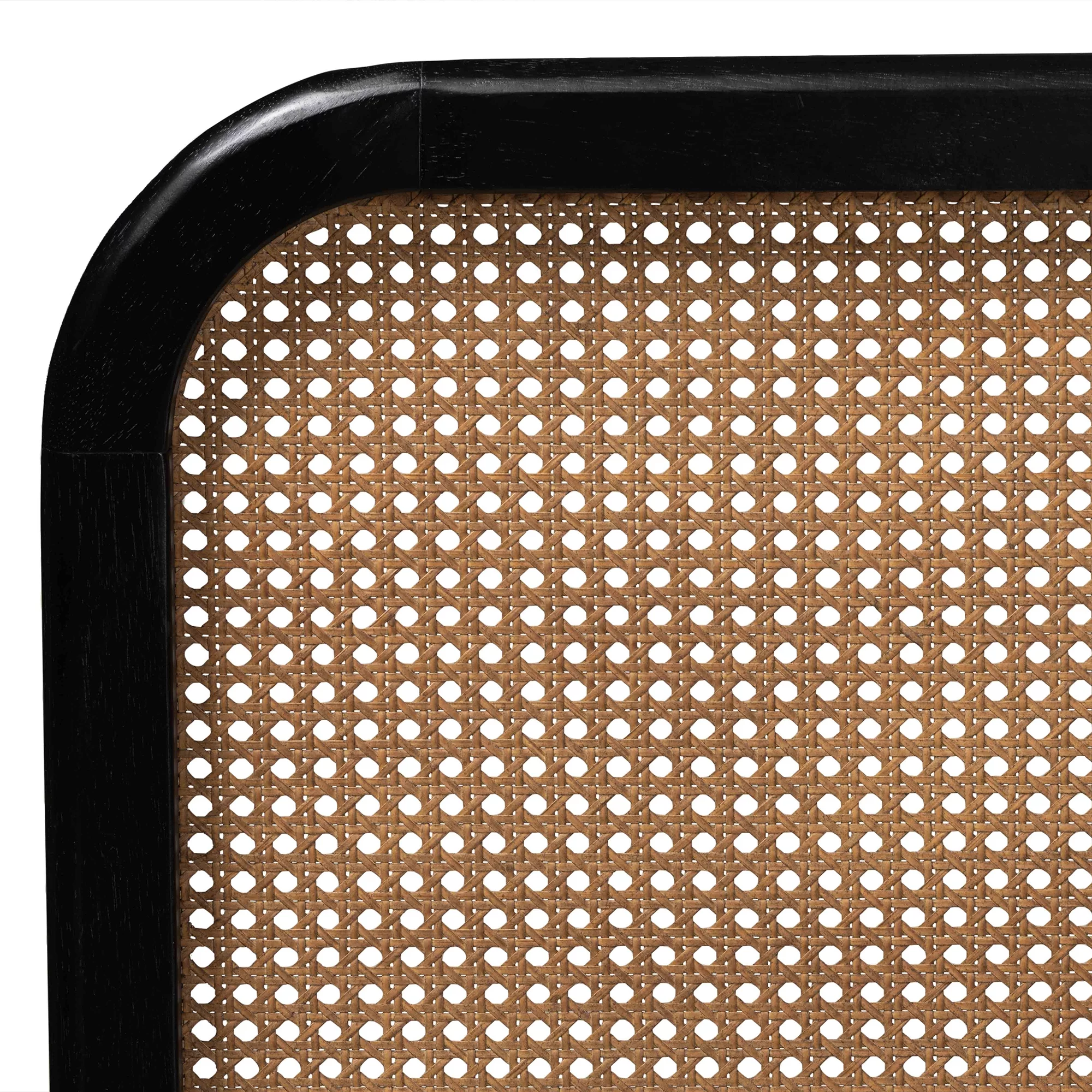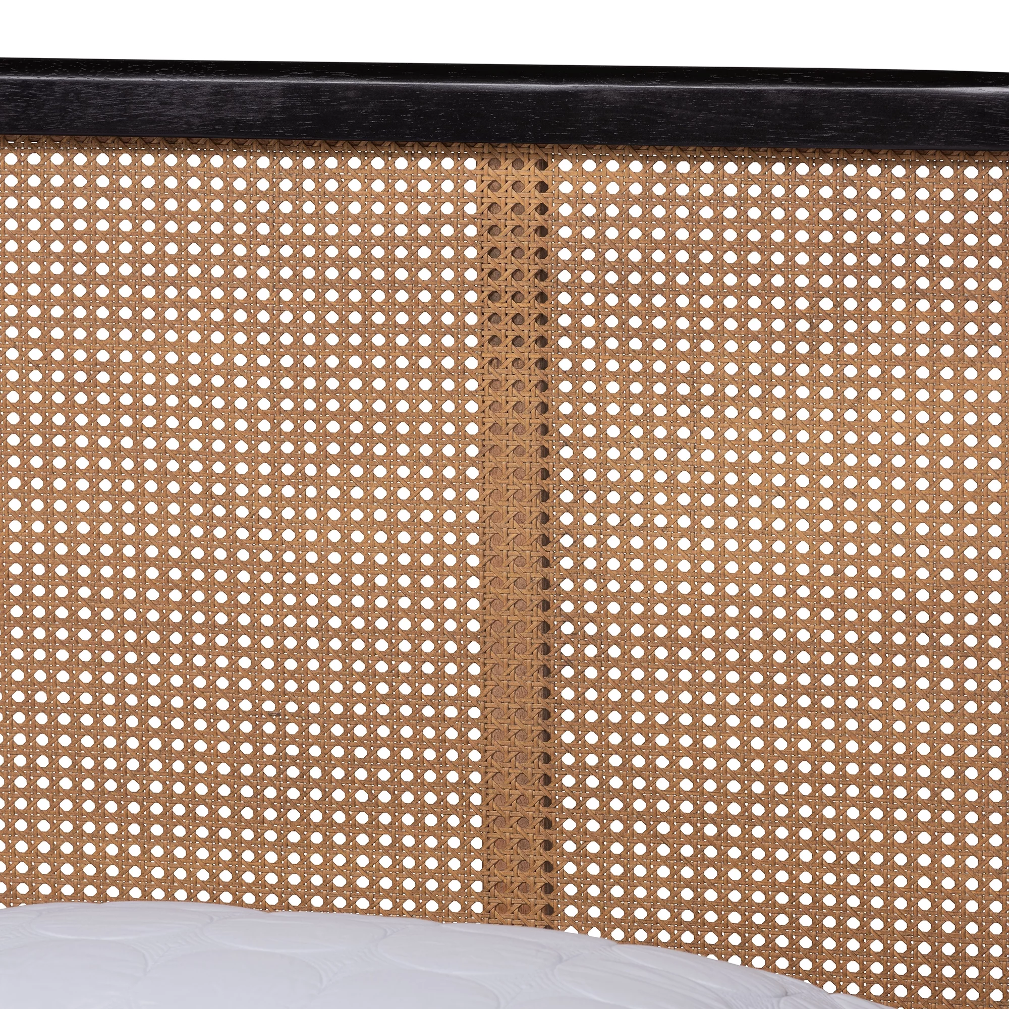 Baxton Studio Elston Mid-Century Modern Charcoal Finished Wood and Synthetic Rattan Queen Size Platform Bed