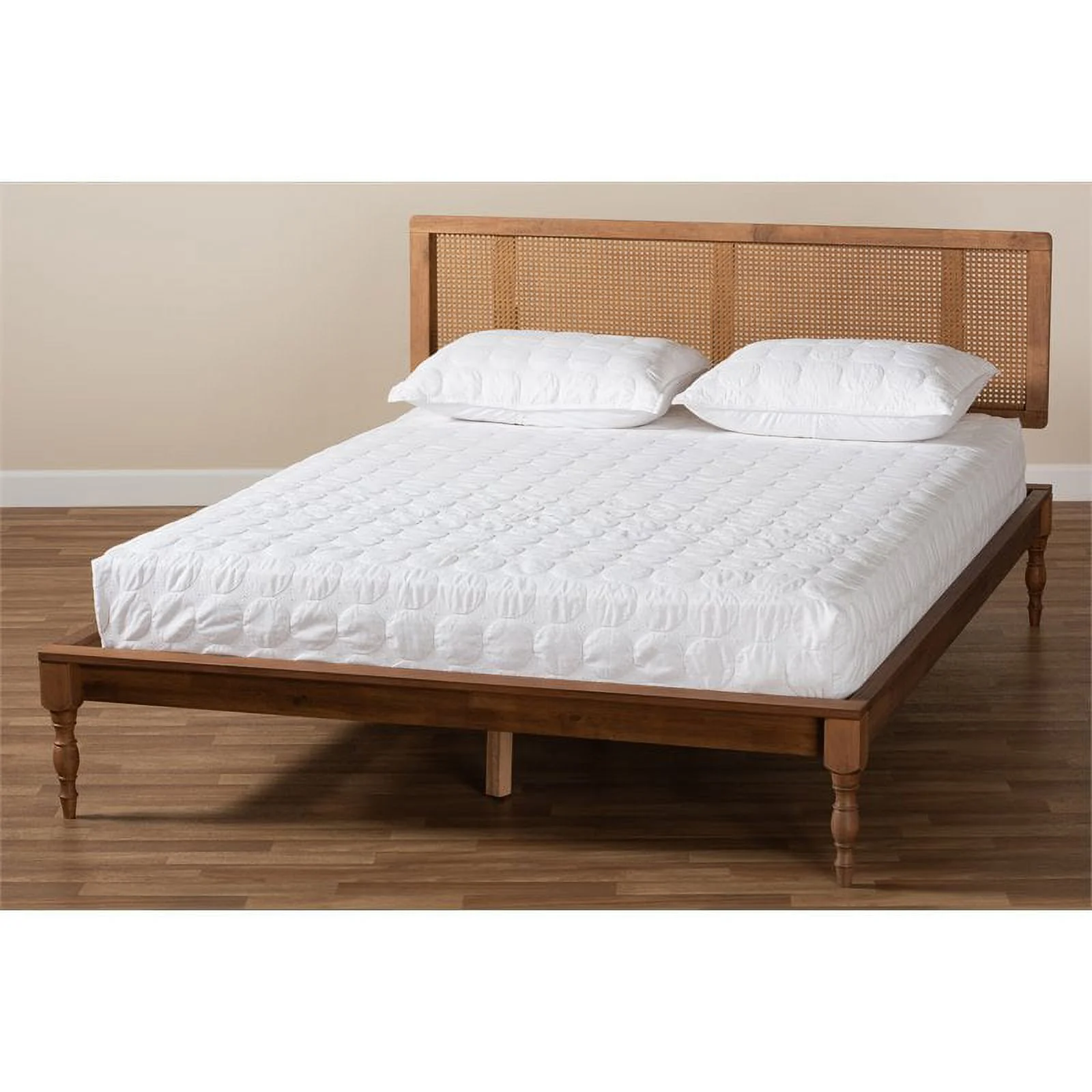 Baxton Studio Elston Mid-Century Modern Synthetic Rattan Wood Platform Bed -Walnut Queen