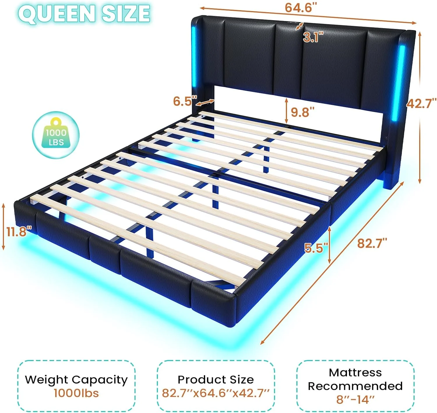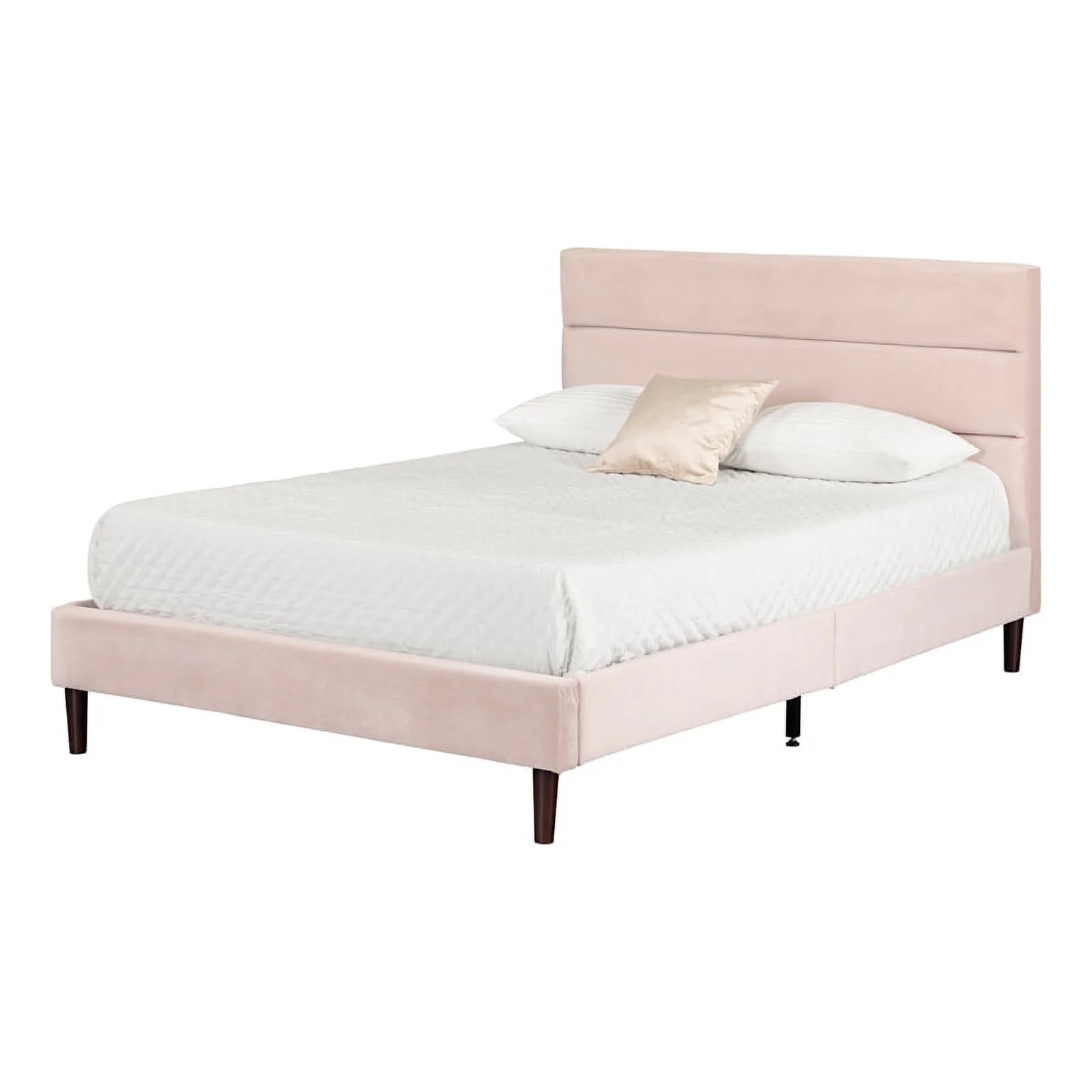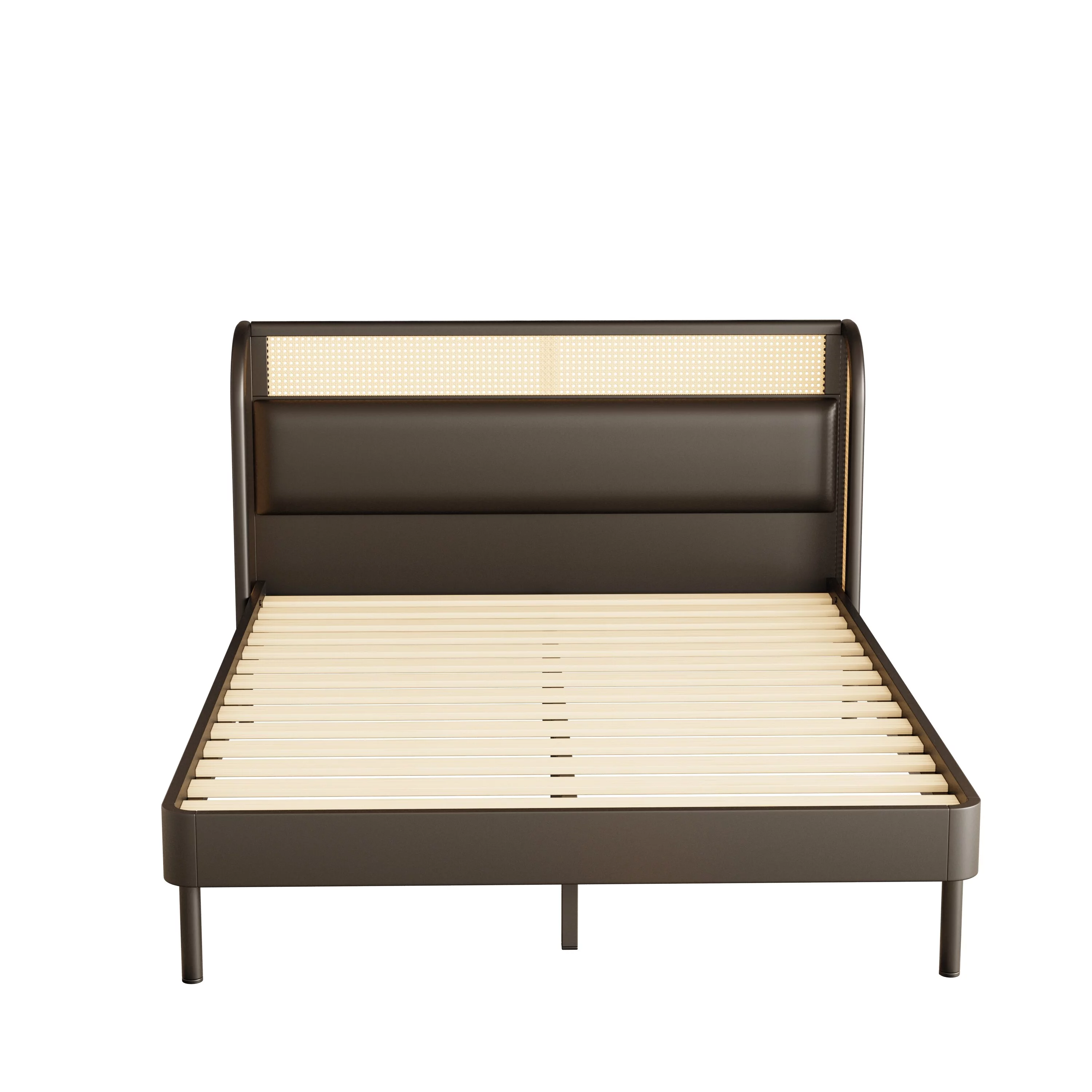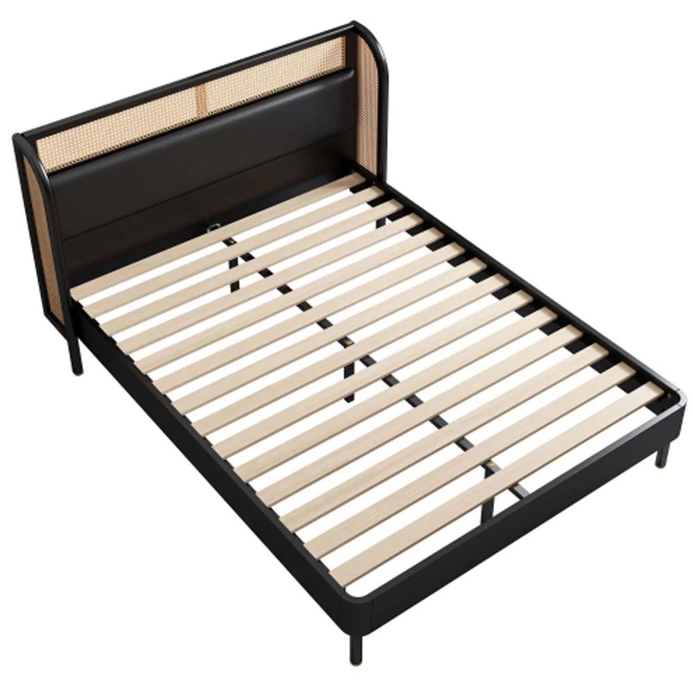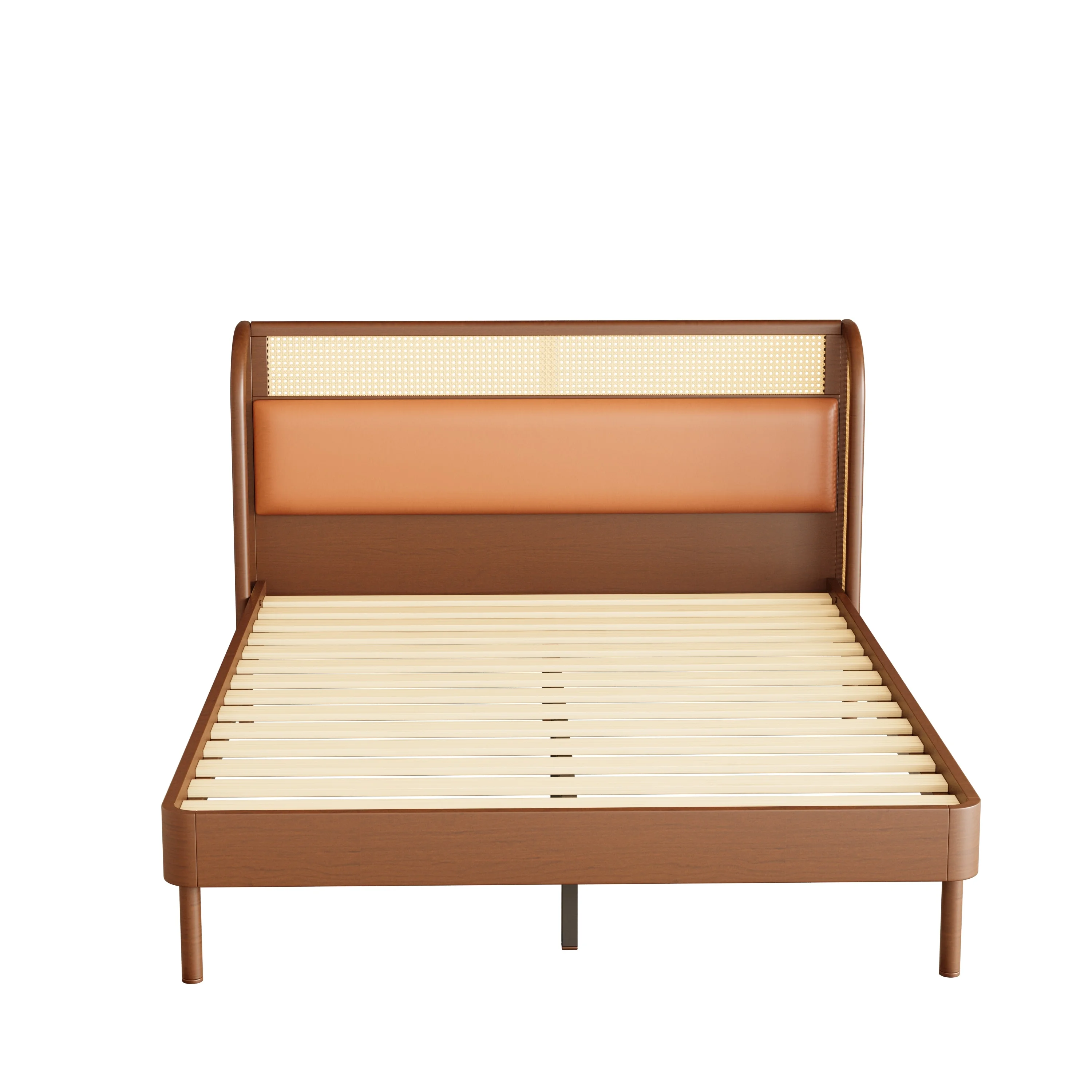 Queen Size Modern Cannage Rattan Wood Platform Bed with PU Leather Headboard Walnut - Queen