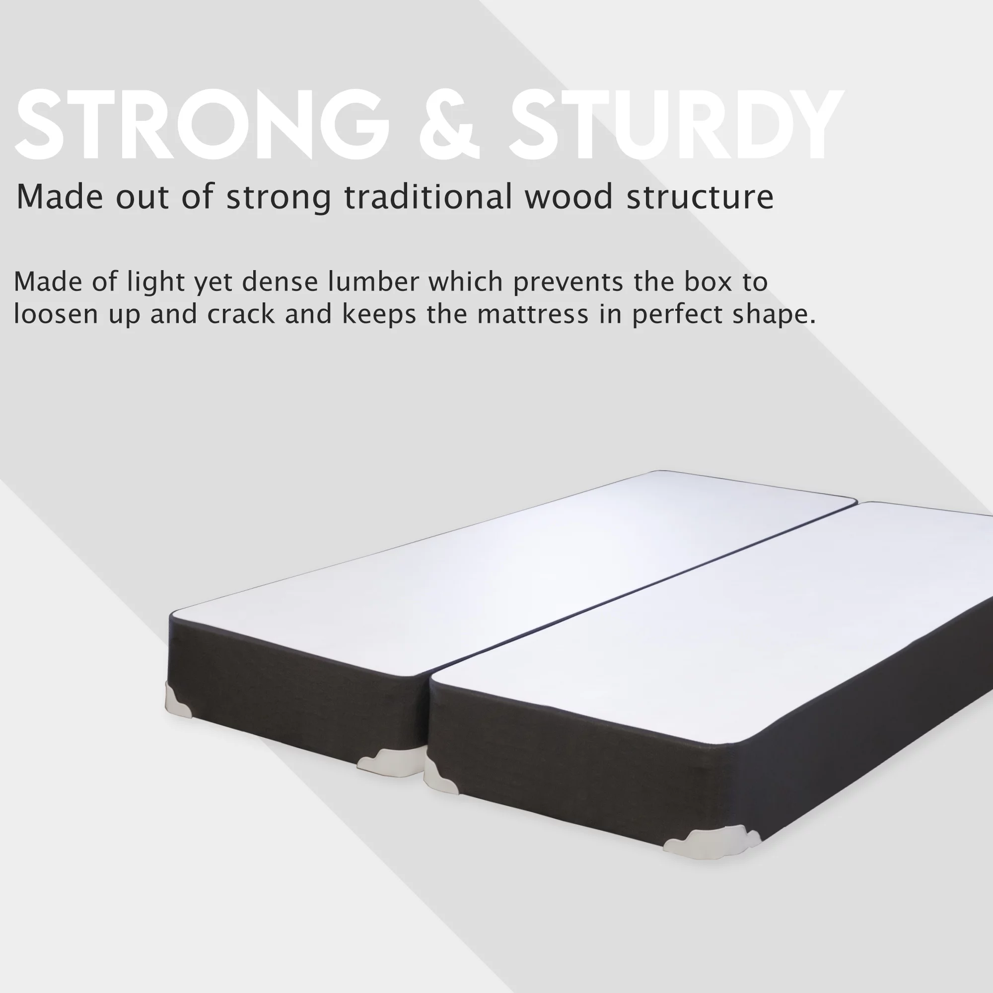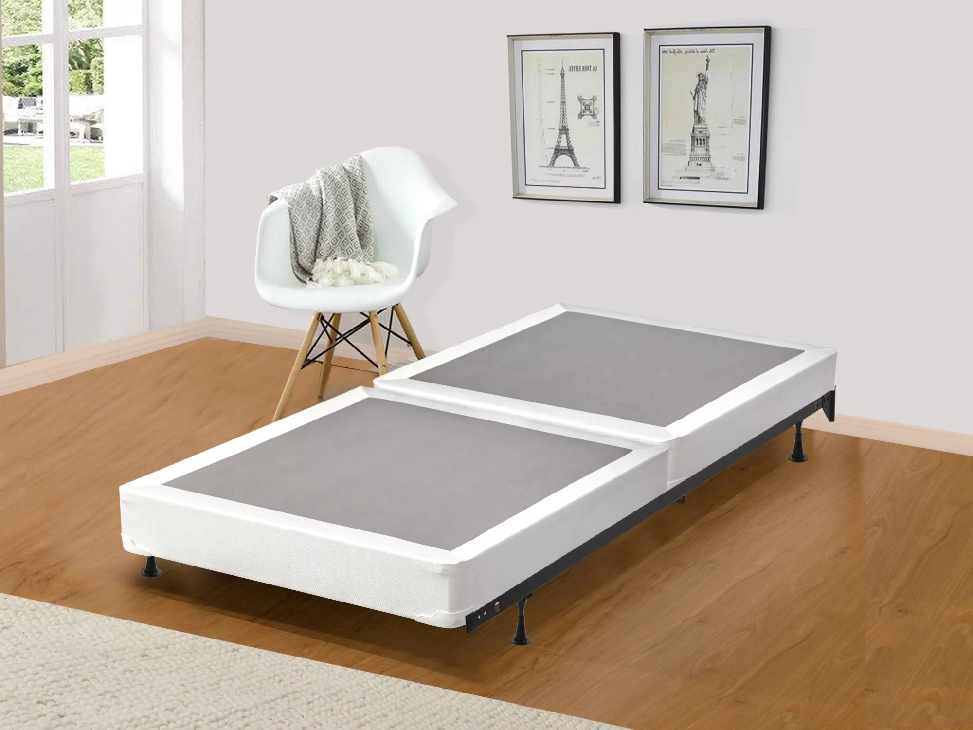 Wayton, 8" Split Sturdy Fully Assembled Wood Box Spring for Mattress, Twin, White