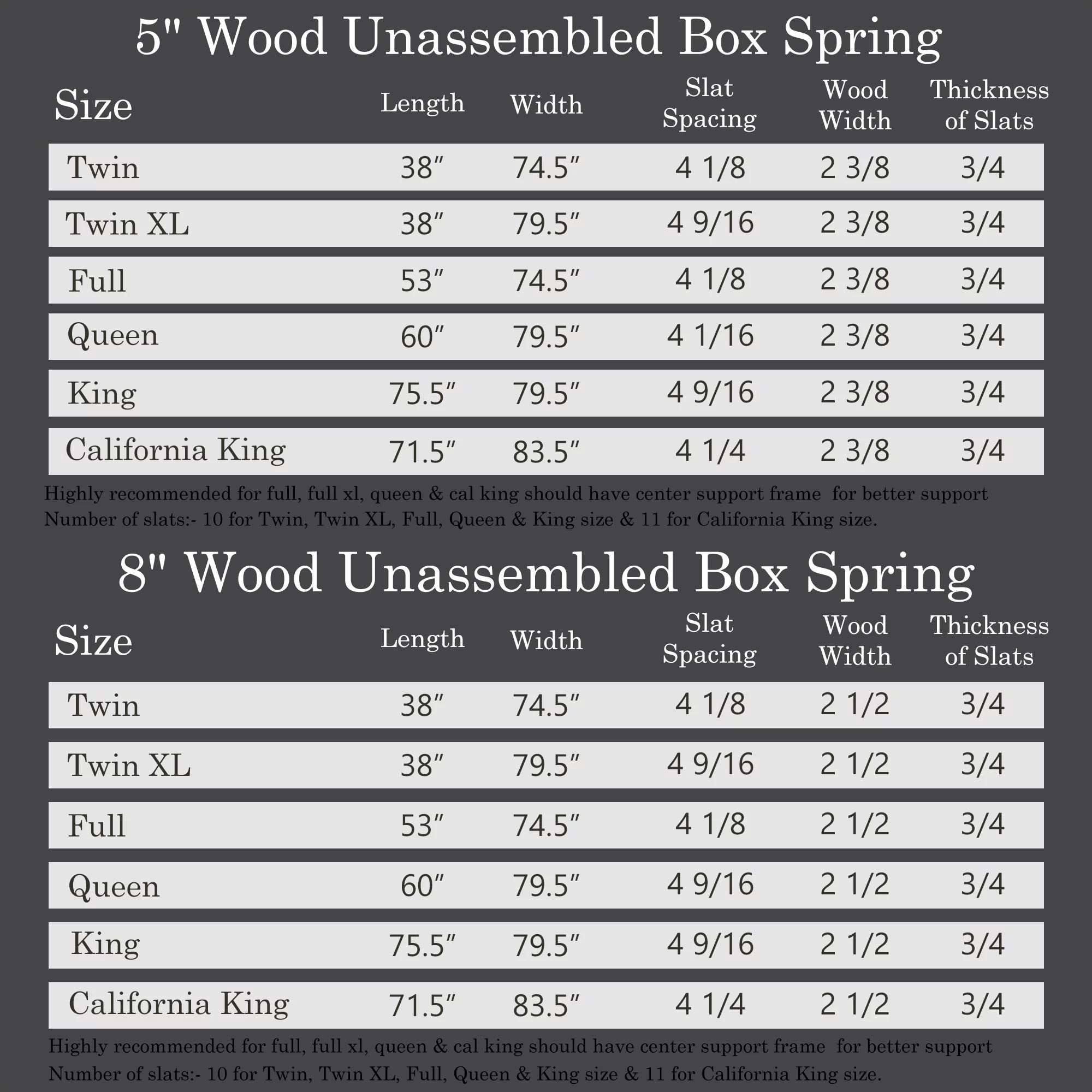 Continental Sleep, 5" Wood Box Spring for Mattress Support with Simple Assembly, Twin