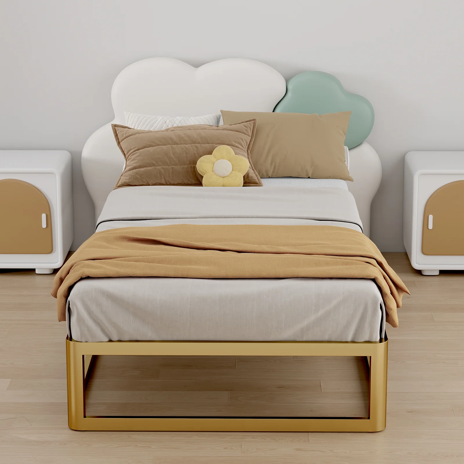 Dcenta Upholstered daybed Twin Size with Two Drawers and Wood Slat Suppot ,Beige